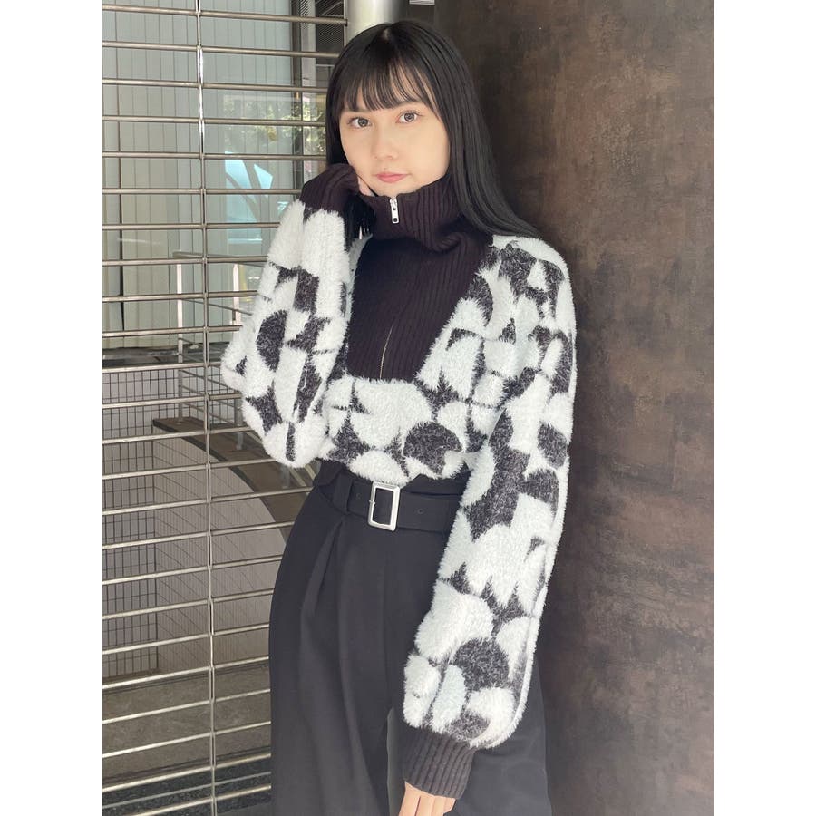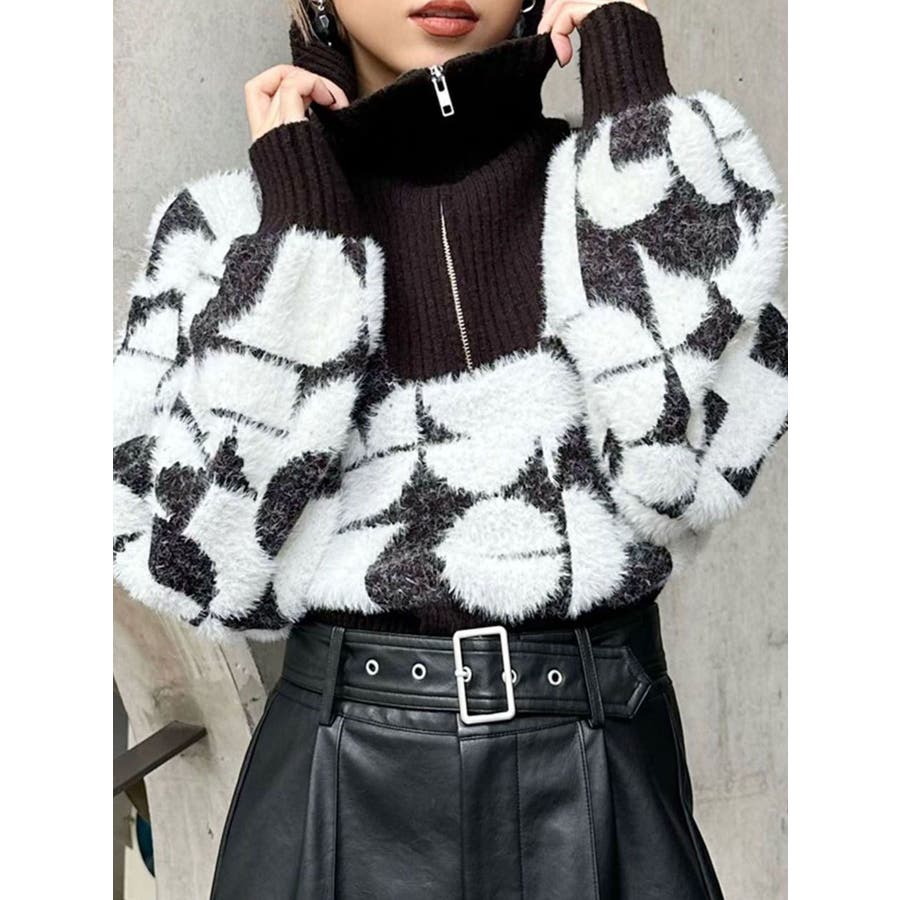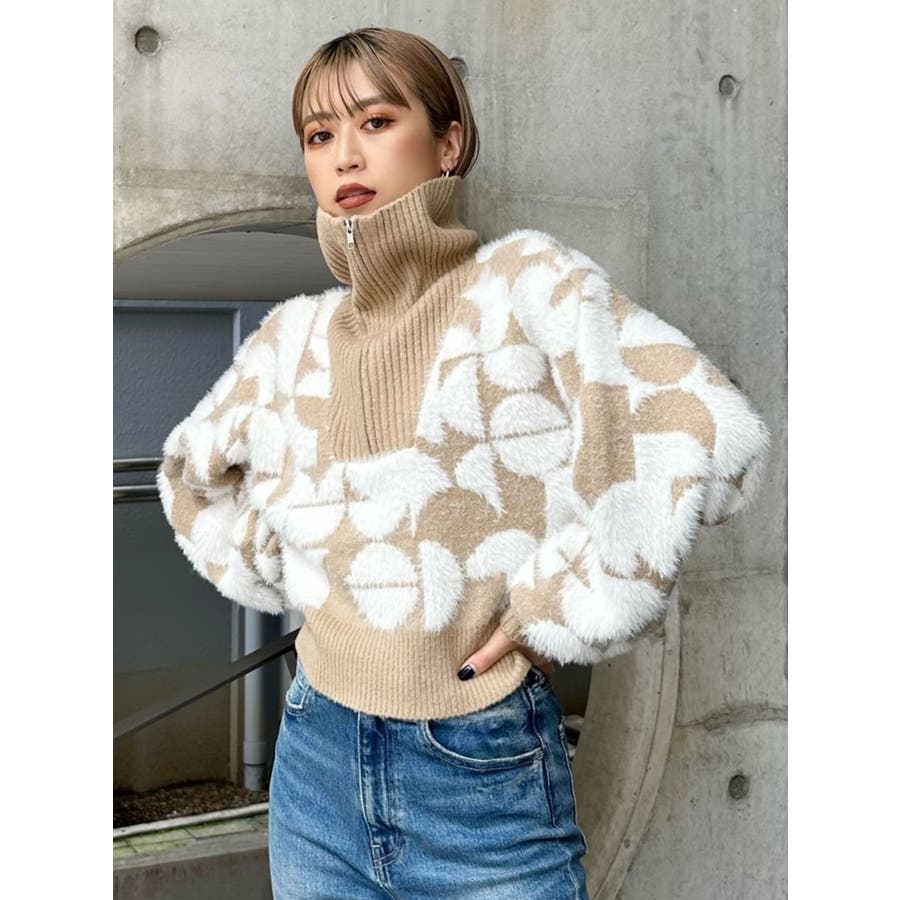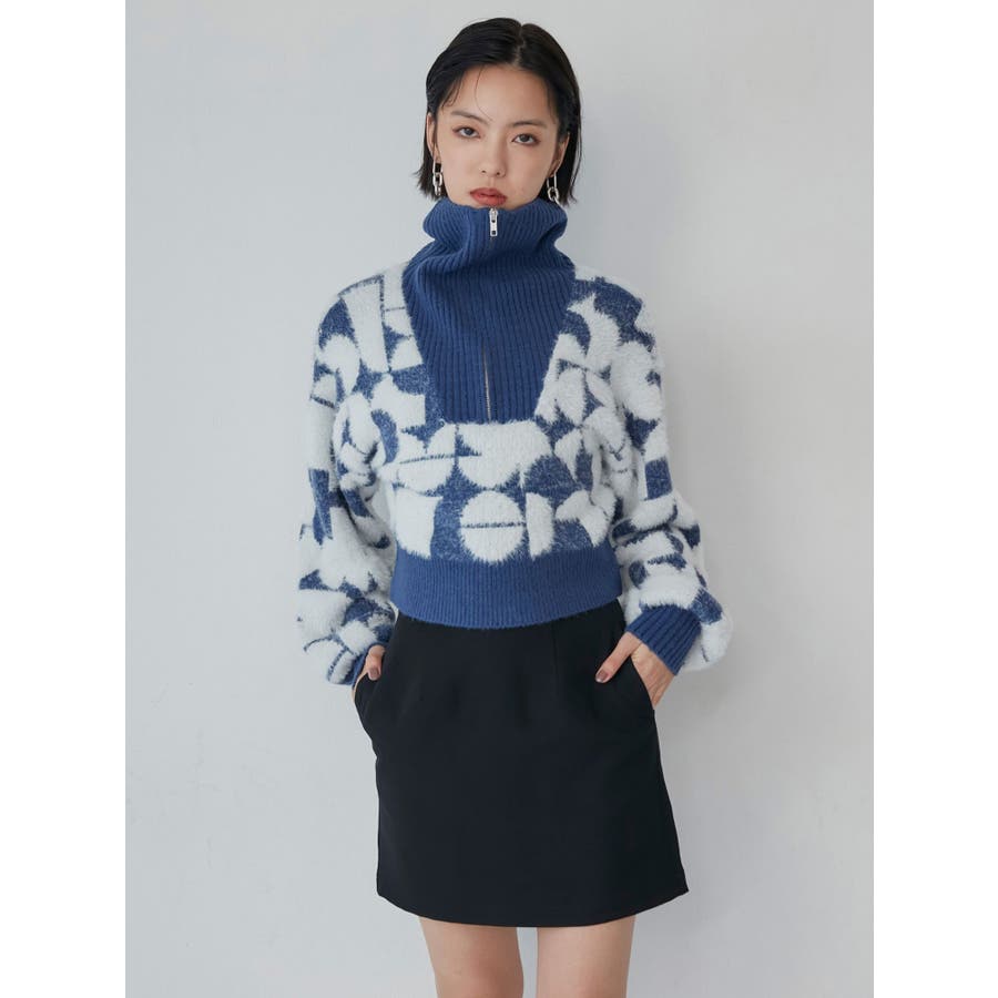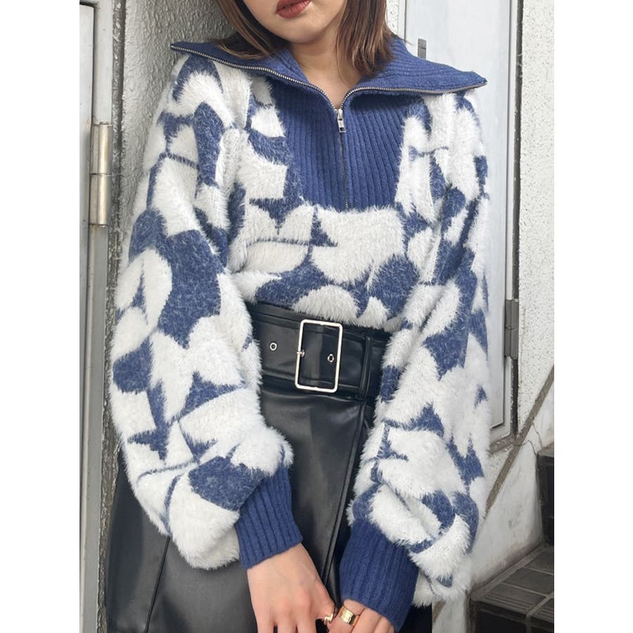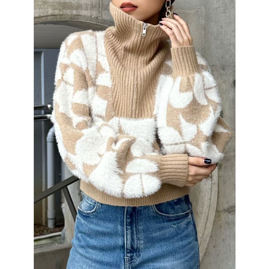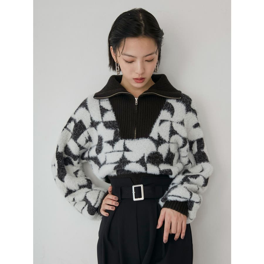 フロントZIPフェザーニット