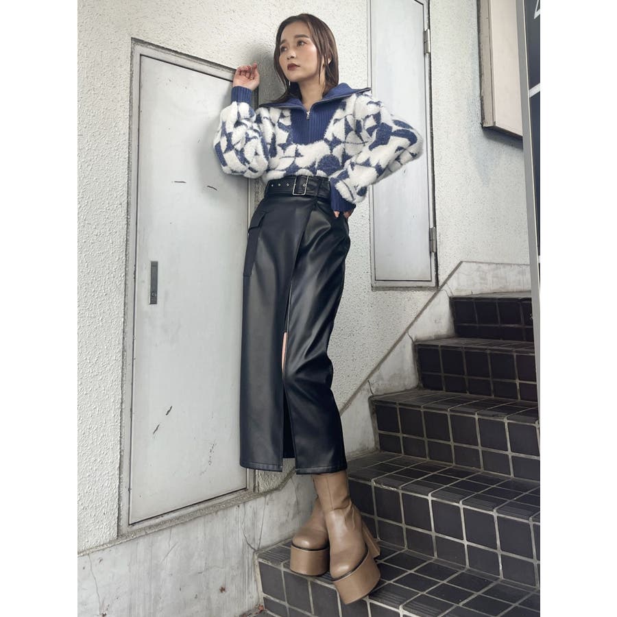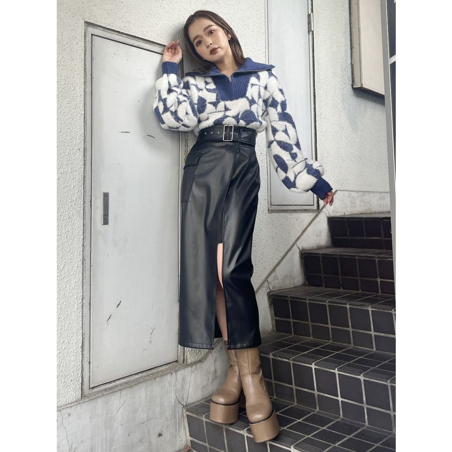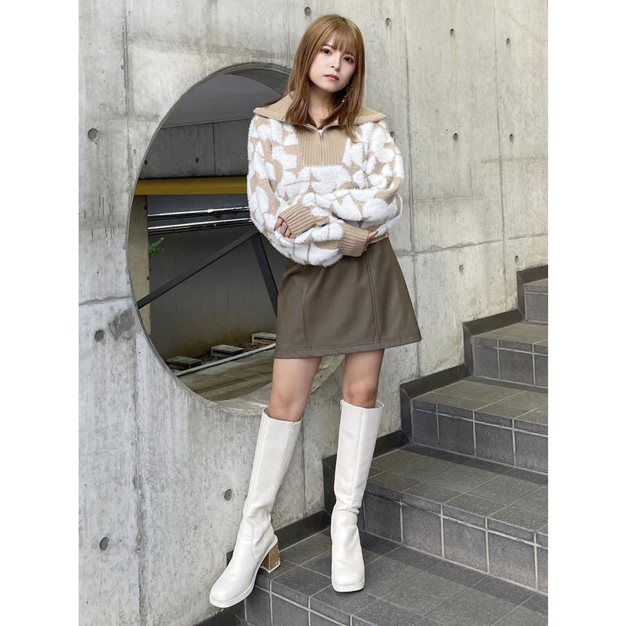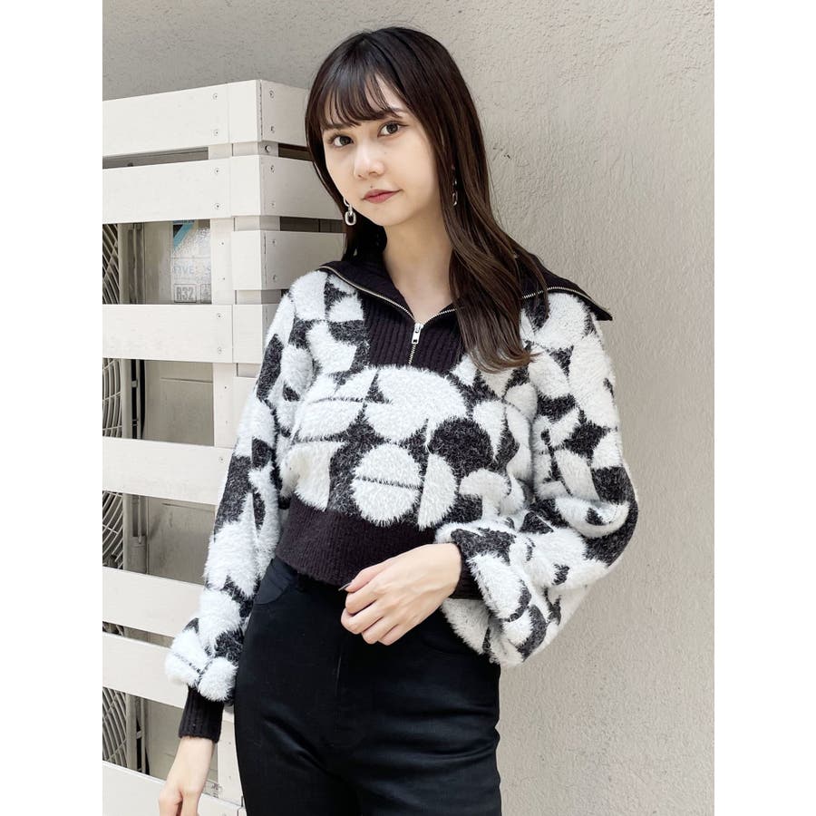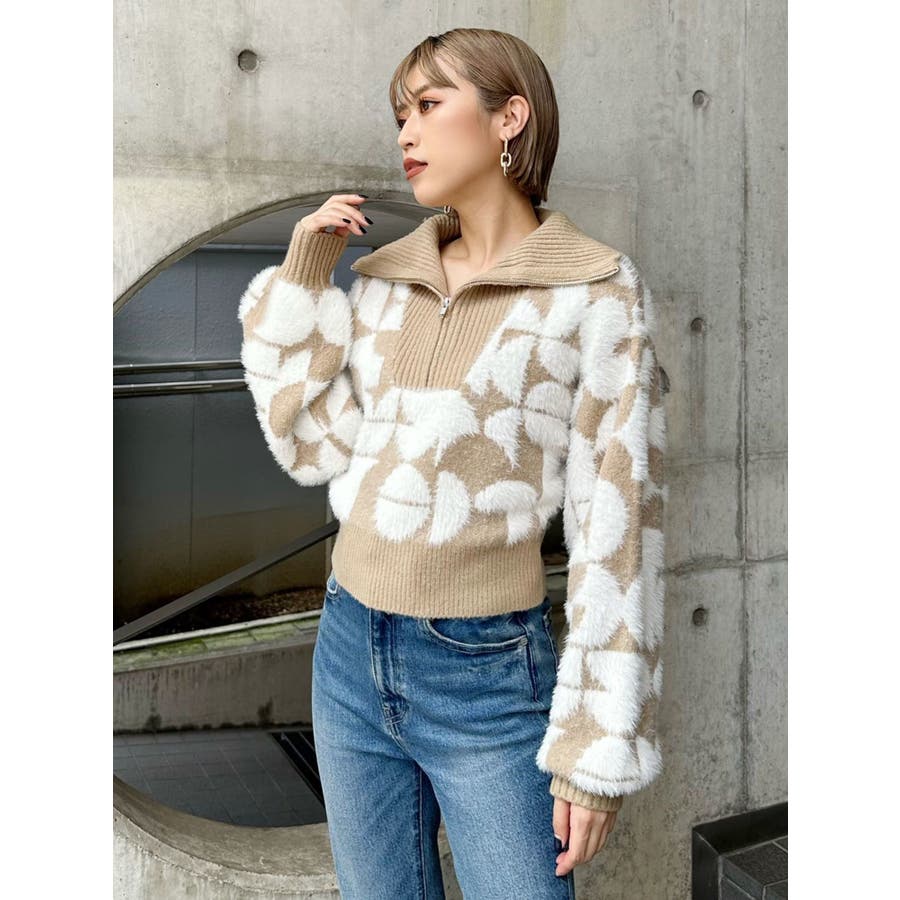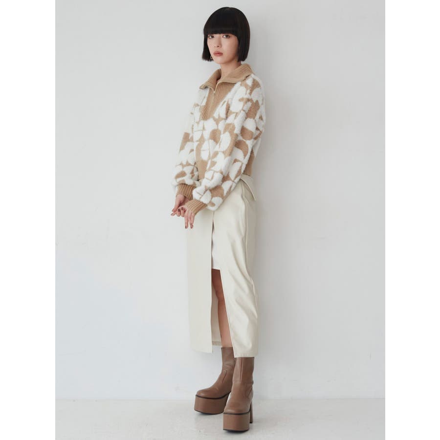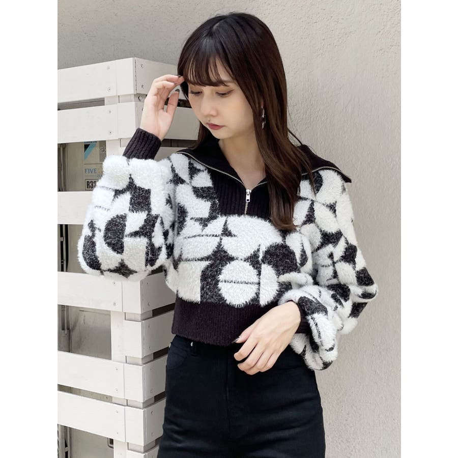 フロントZIPフェザーニット