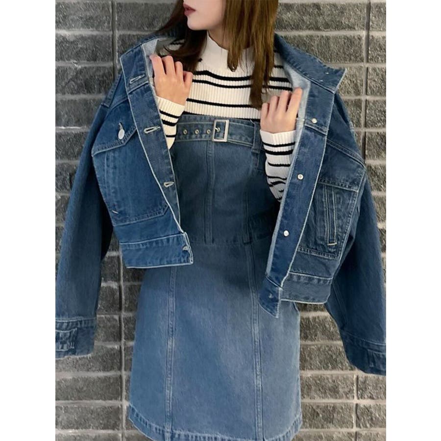 【2024 SPRING COLLECTION】春のマストバイデニムジャケットワンピースとセットアップで着用可■アイテムビッグシルエットでルーズに着れるデニムブルゾン。程よく厚みのある生地を使用しました。ダブルエントリーの大きいポケットにすることで他にはない個性的な印象に仕上げました。後ろにかけて丈が長くなるラウンドヘムが気になるヒップ周りをカバーしてくれます◎共地で作られたベルテッドベアワンピースと合わせたスタイリングが今年らしくおすすめです。■スタイリング共地で作られたベルテッドベアワンピースと合わせたスタイリングが今年らしくおすすめインディゴ&ブルーとカーゴパンツやワイドパンツと合わせてカジュアルなスタイリングもGOODブラックはデザインのあるスカートや柄ワンピ等と合わせてモード感のあるスタイリングも◎着回しの効くジャケットなので様々なスタイリングが楽しめます◎■生地感程よい厚みでシルエットが落ちすぎず綺麗に見えます。春先から夏にかけて、秋の立ち上がりも着用していただけます◎■スタッフ着用のコメント身長:159cm / サイズ F短すぎないショート丈で合わせやすいです◎そしてなんとスタンドカラーにもなるのがポイント!厚めの生地感でアームホールも広いので春先からすぐお使い頂けるアイテムです。身長:170cm サイズ Fビッグシルエットでルーズに着れるデニムブルゾンです!程よく厚みのある生地なのでロングシーズン使えます◎大きめのポケットとステッチデザインがポイントです!▼セットで着用可能なアイテムはこちらを検索↓▼012410300401 ベルテットベアミニワンピース--------------------------------------------透け感:なし 生地の厚さ:やや厚手伸縮性:無し サイズ感:大きめ--------------------------------------------【知って得する便利機能◎ 】■商品のお気に入り登録再入荷時、ラスト1点の時にお知らせします。■ブランドのお気に入り登録新商品やお得な情報など、いち早くお得な情報をゲット!ぜひご活用ください!※着用画像はフラッシュの加減で実際の製品と色味等が異なる場合がございますので、生地のズームアップ画像をご確認ください。※ご利用の端末画面の設定により実際の商品と色味が異なる場合がございます。