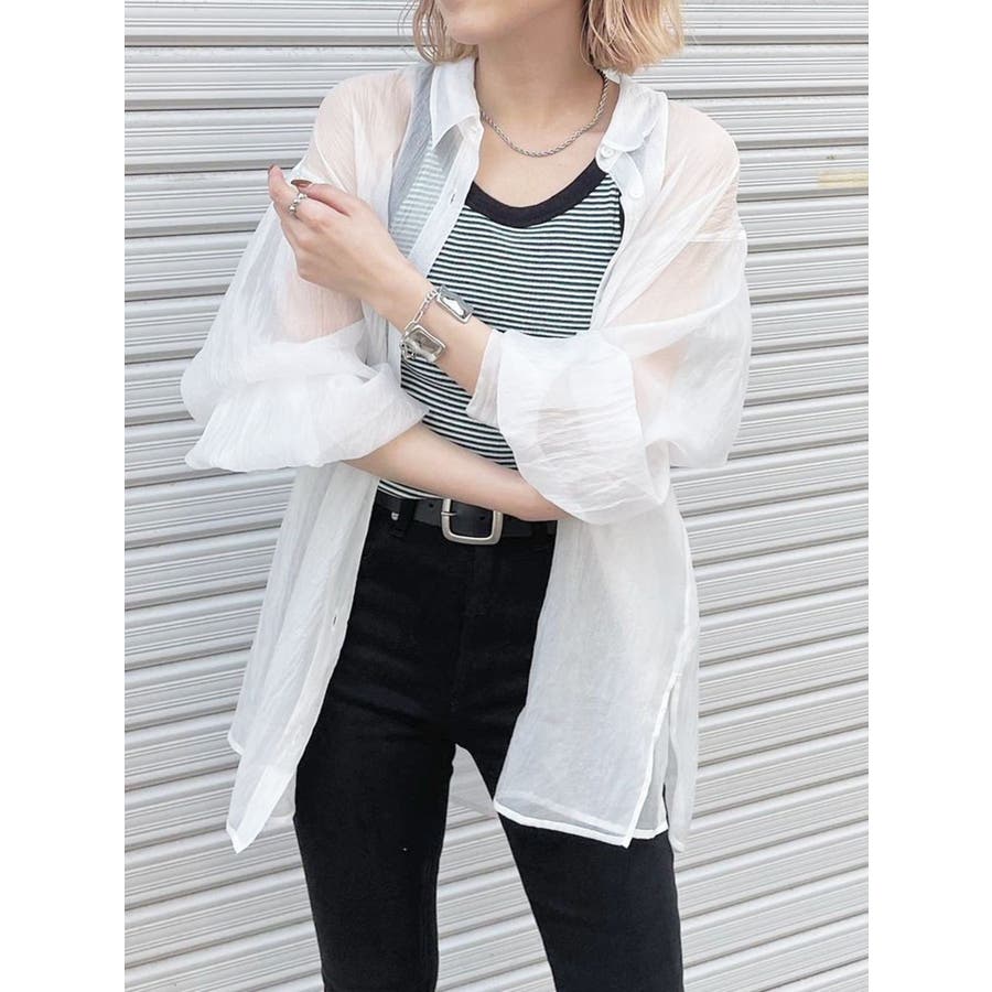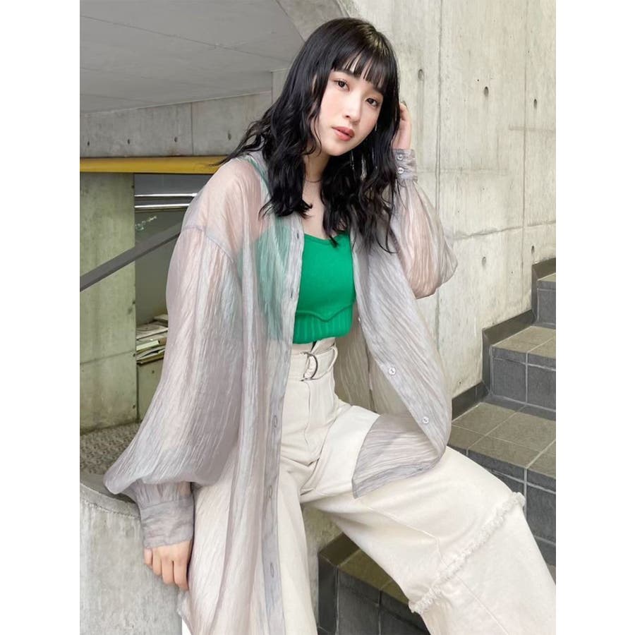 暑いけど日焼け対策でちょっと羽織りたいときとか、室内の冷房対策とかに役立つ!シャイニーのおかげで透け感もいやらしすぎないのでよき!