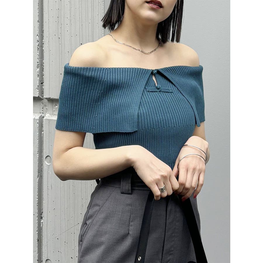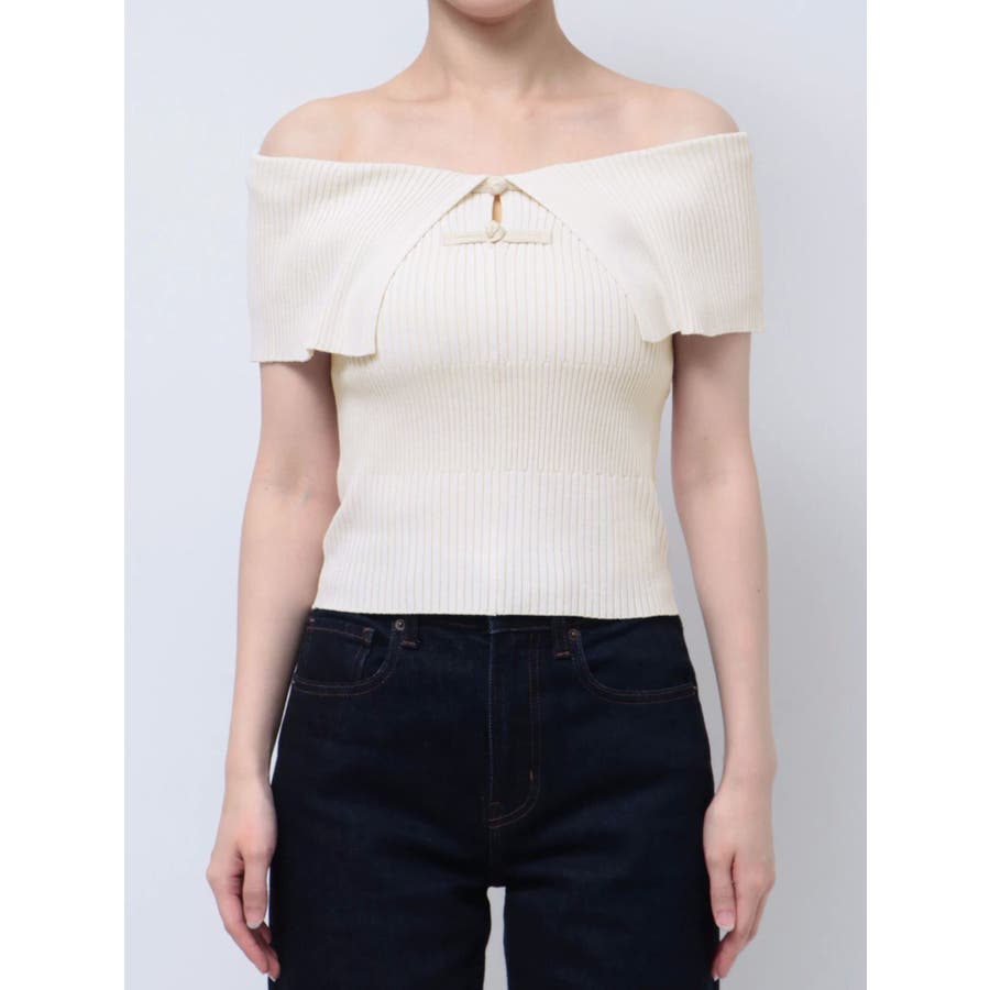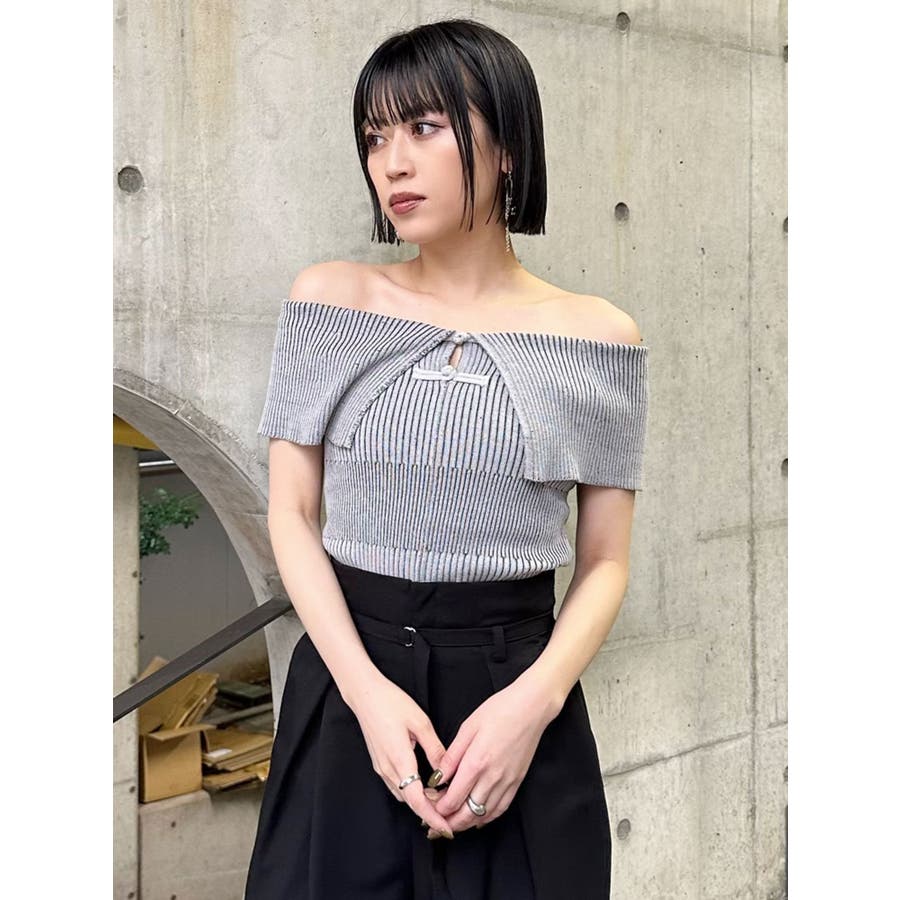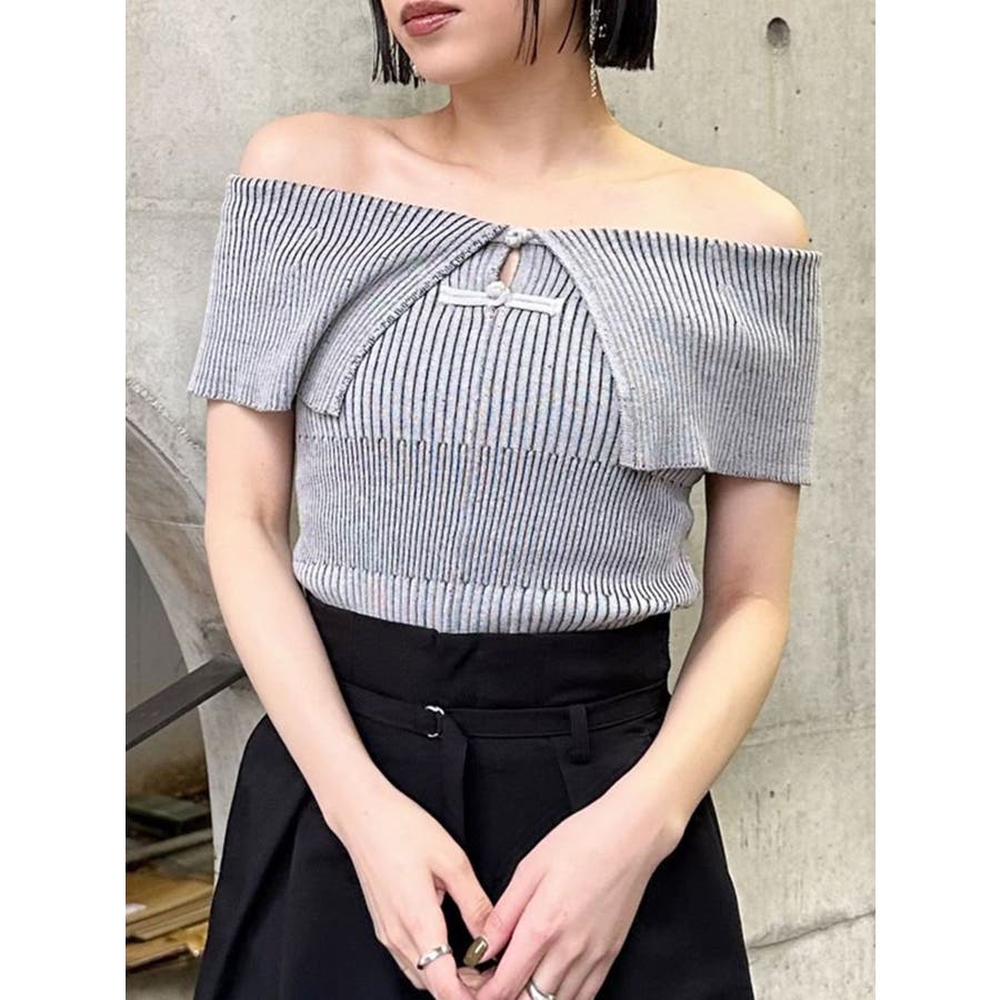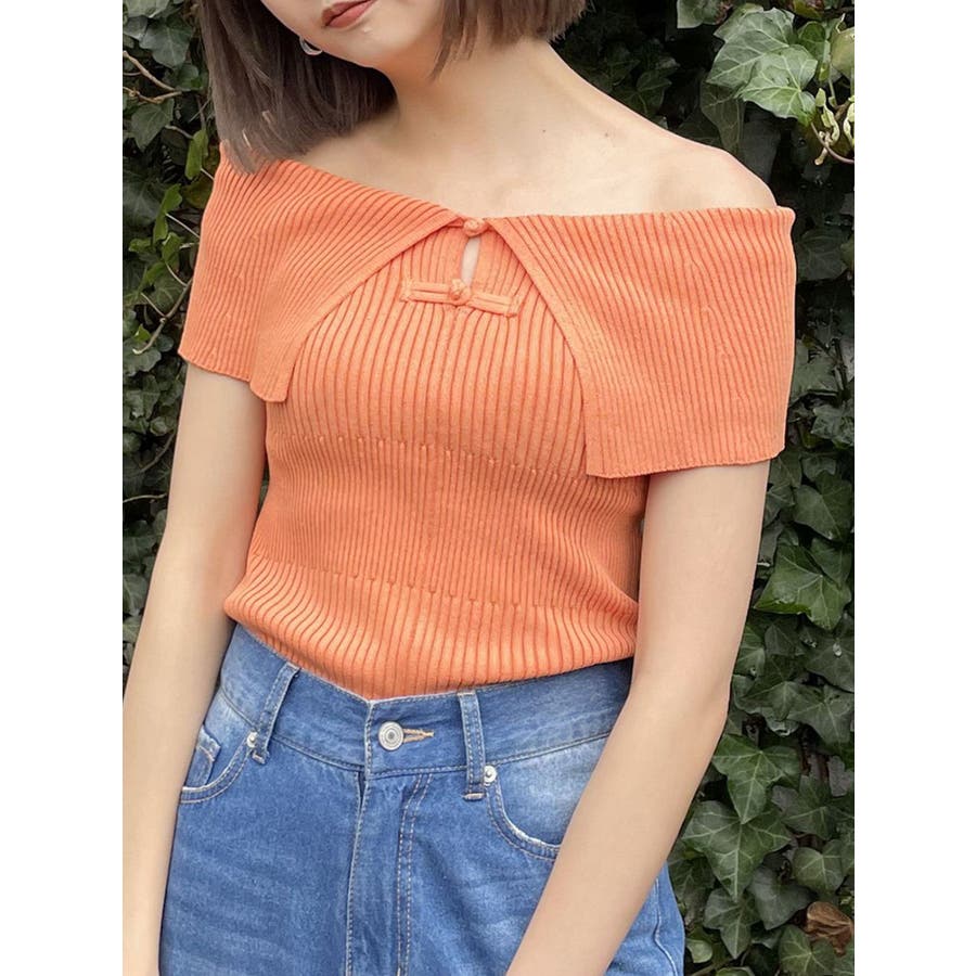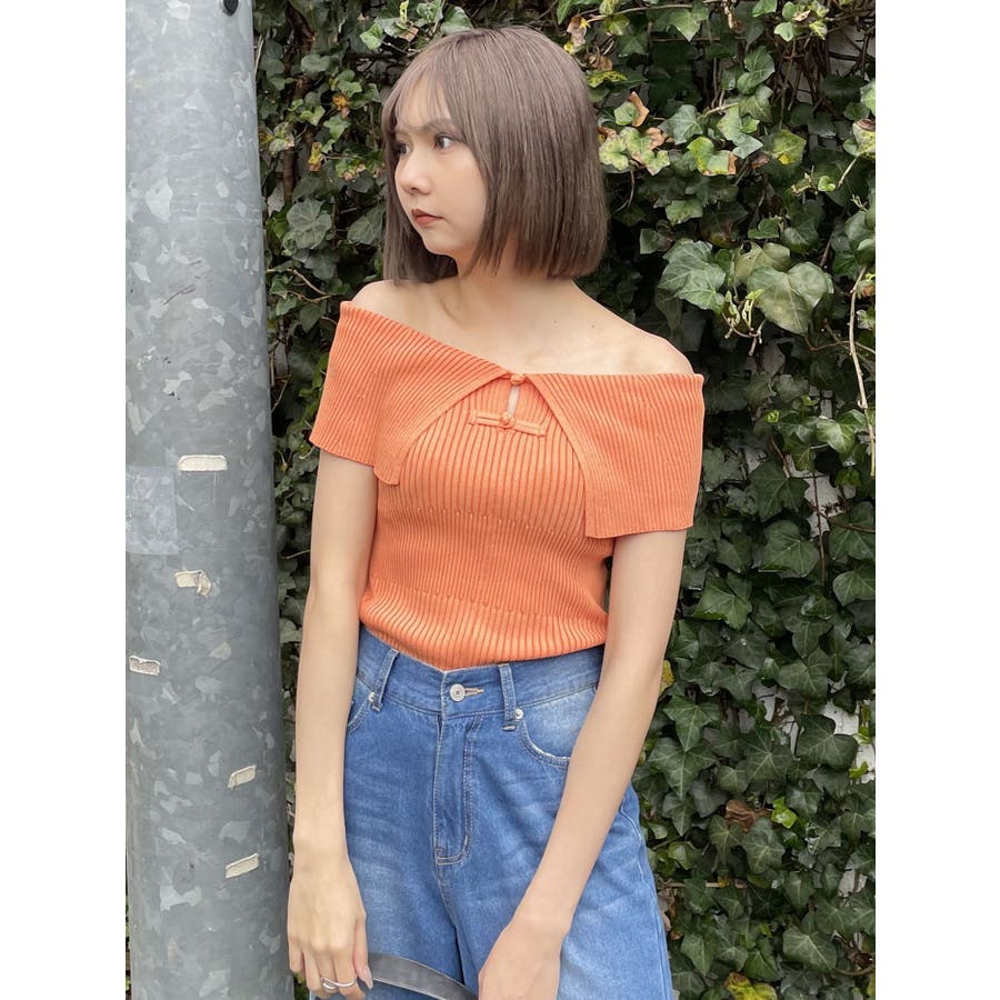 オフショルチャイナボタンニット