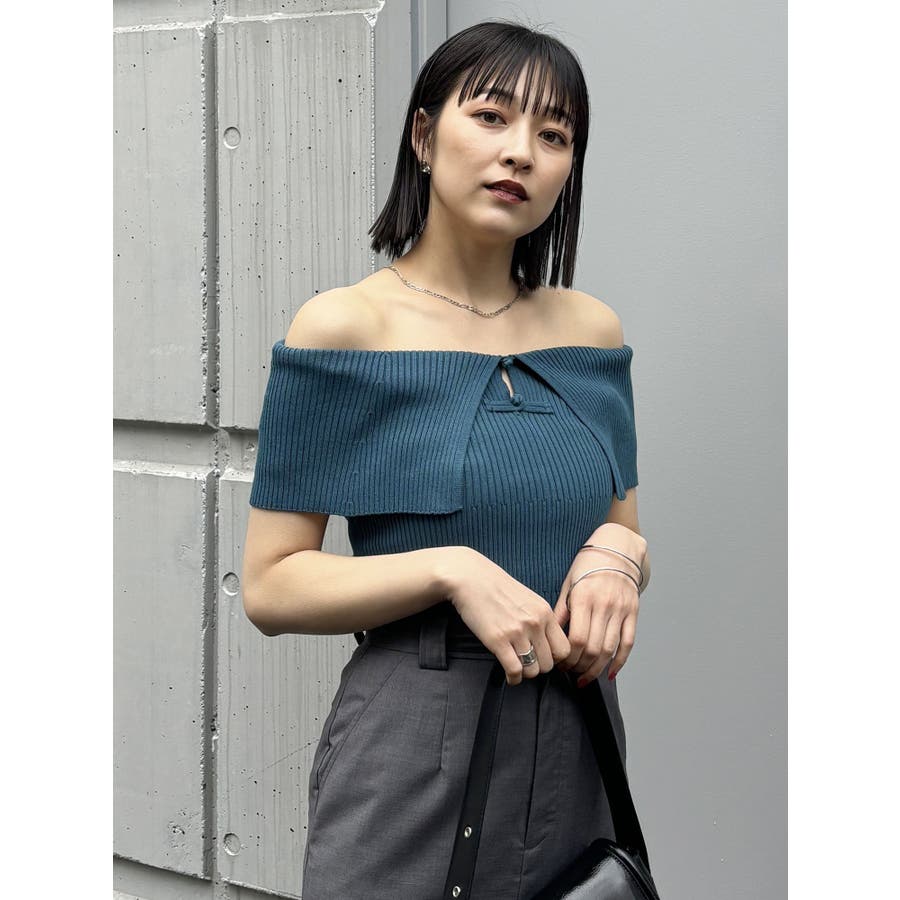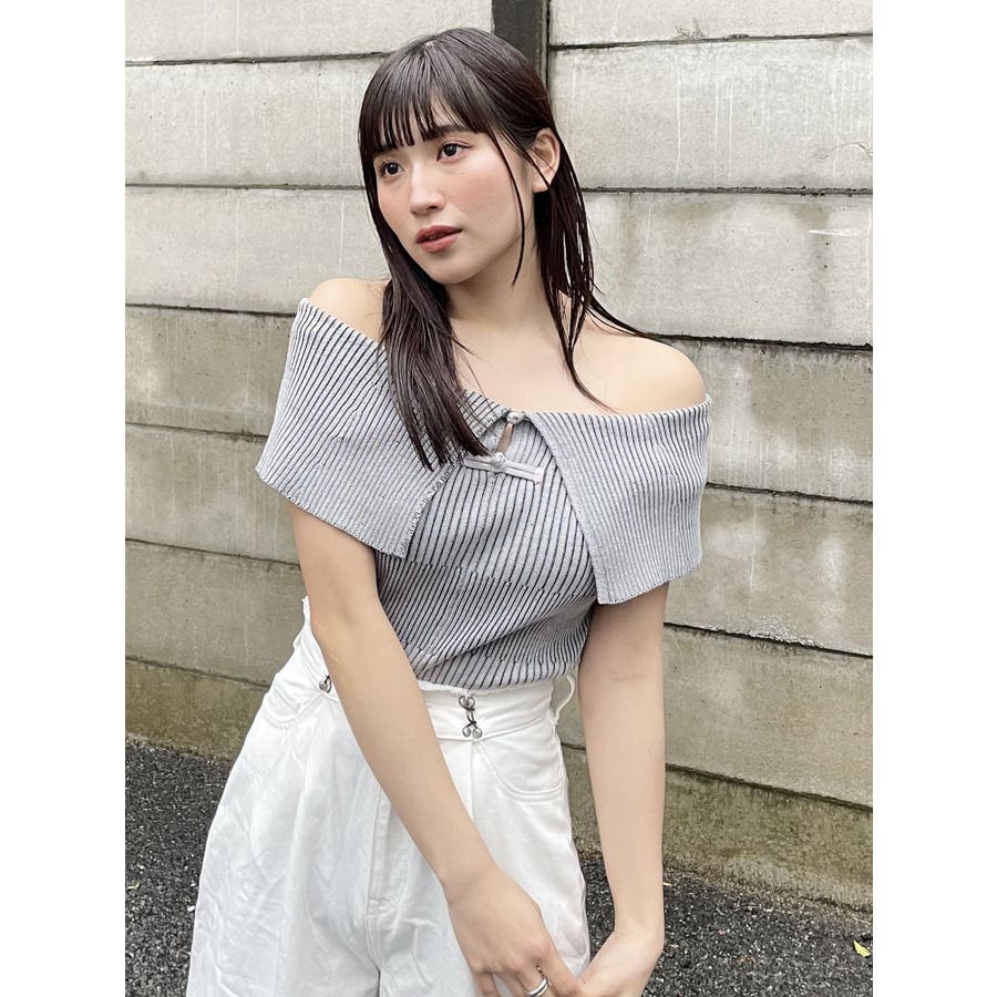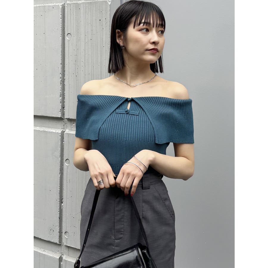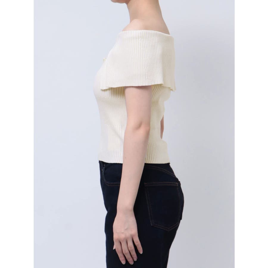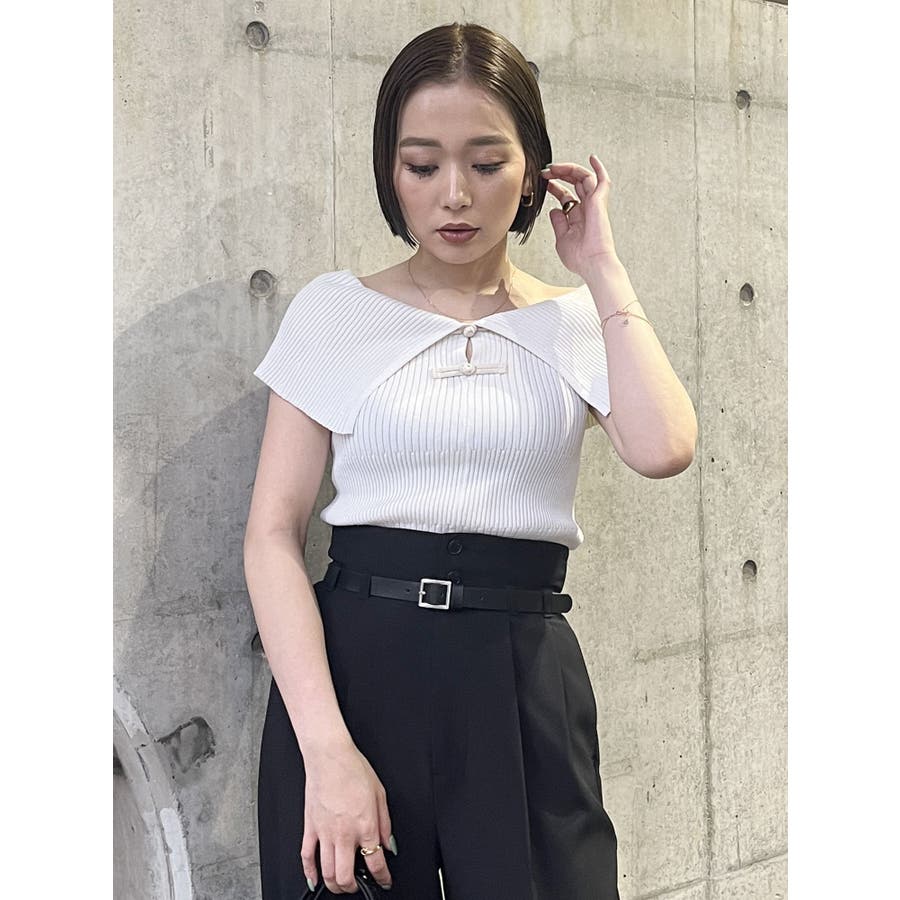 オフショルチャイナボタンニット