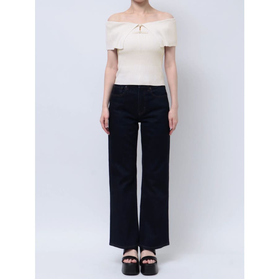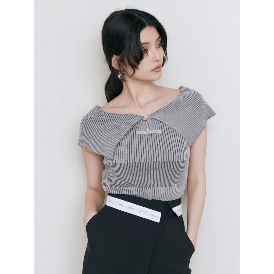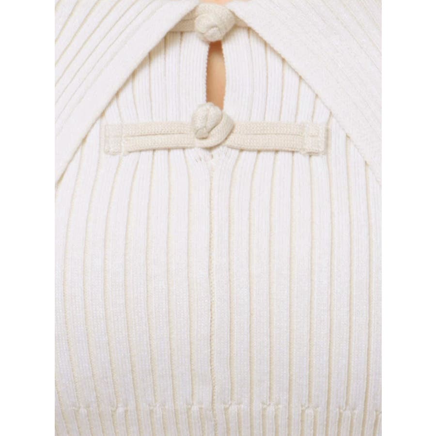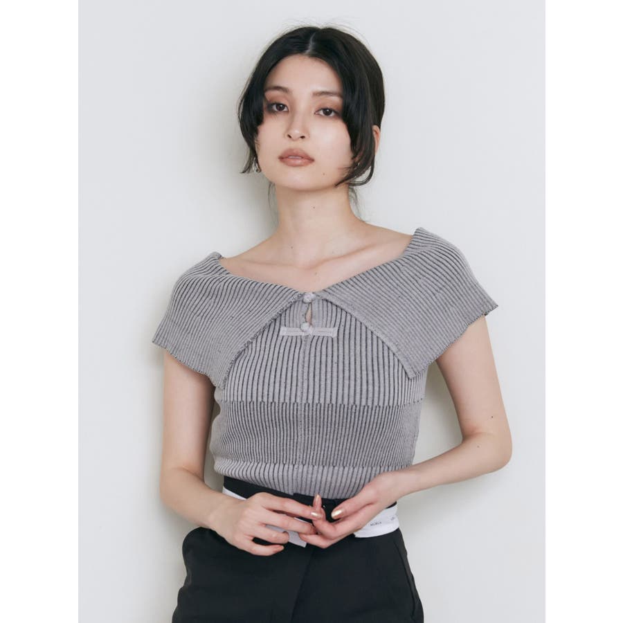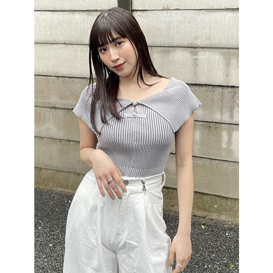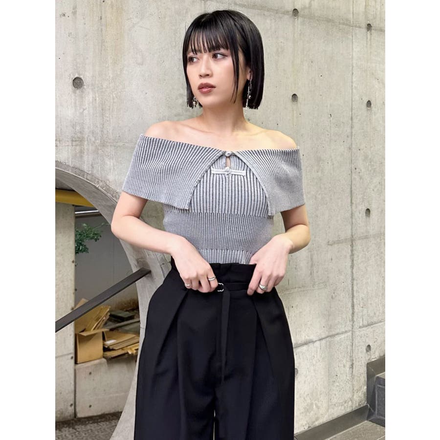 オフショルチャイナボタンニット