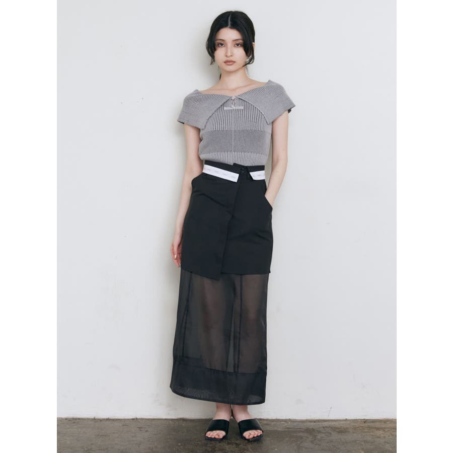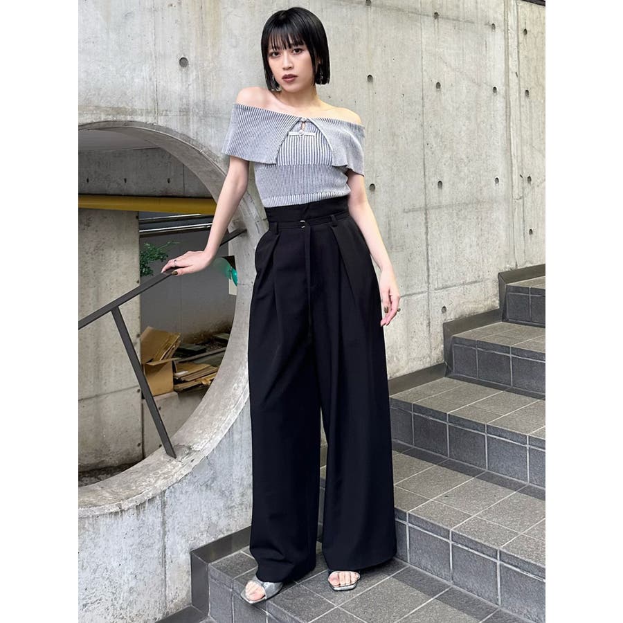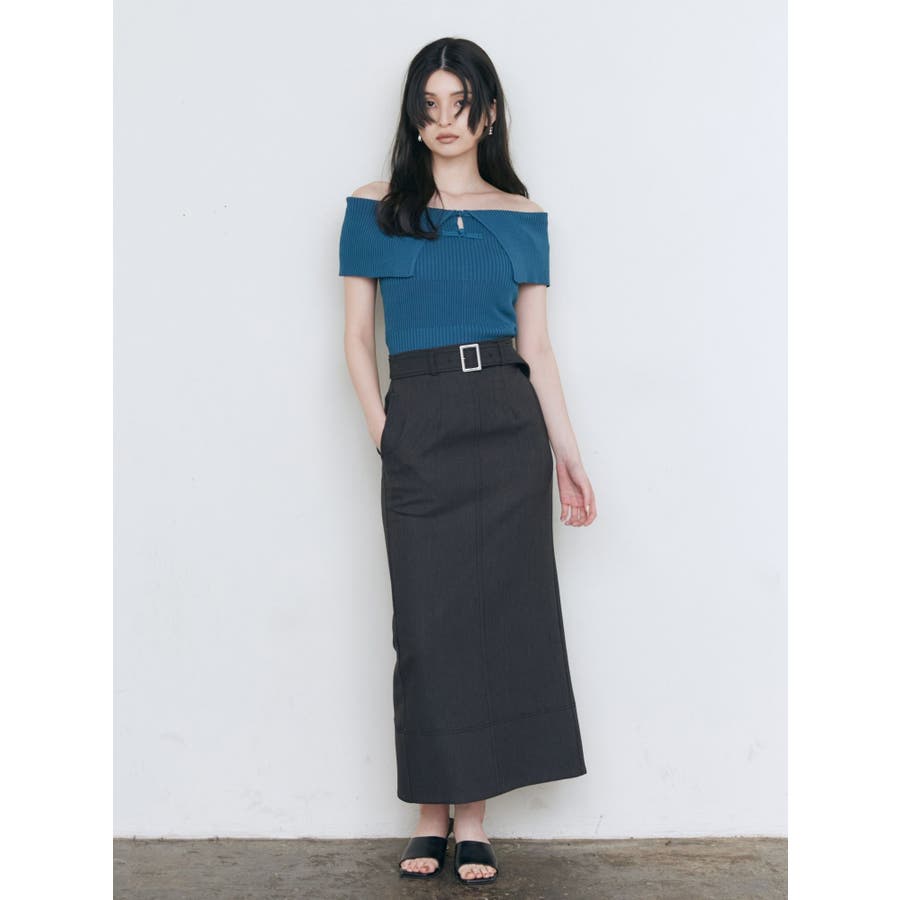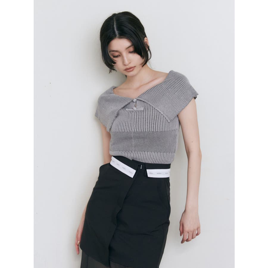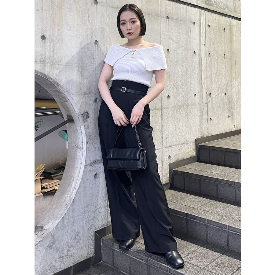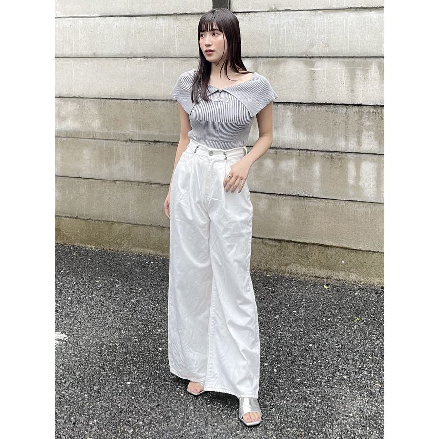 オフショルチャイナボタンニット
