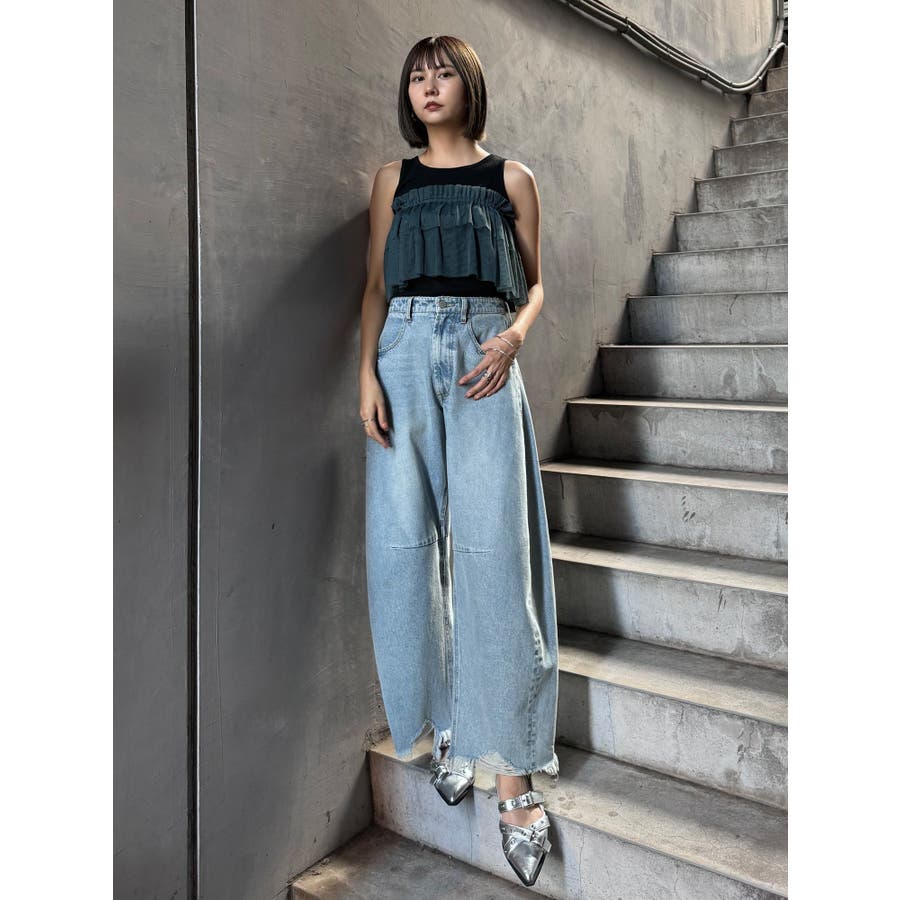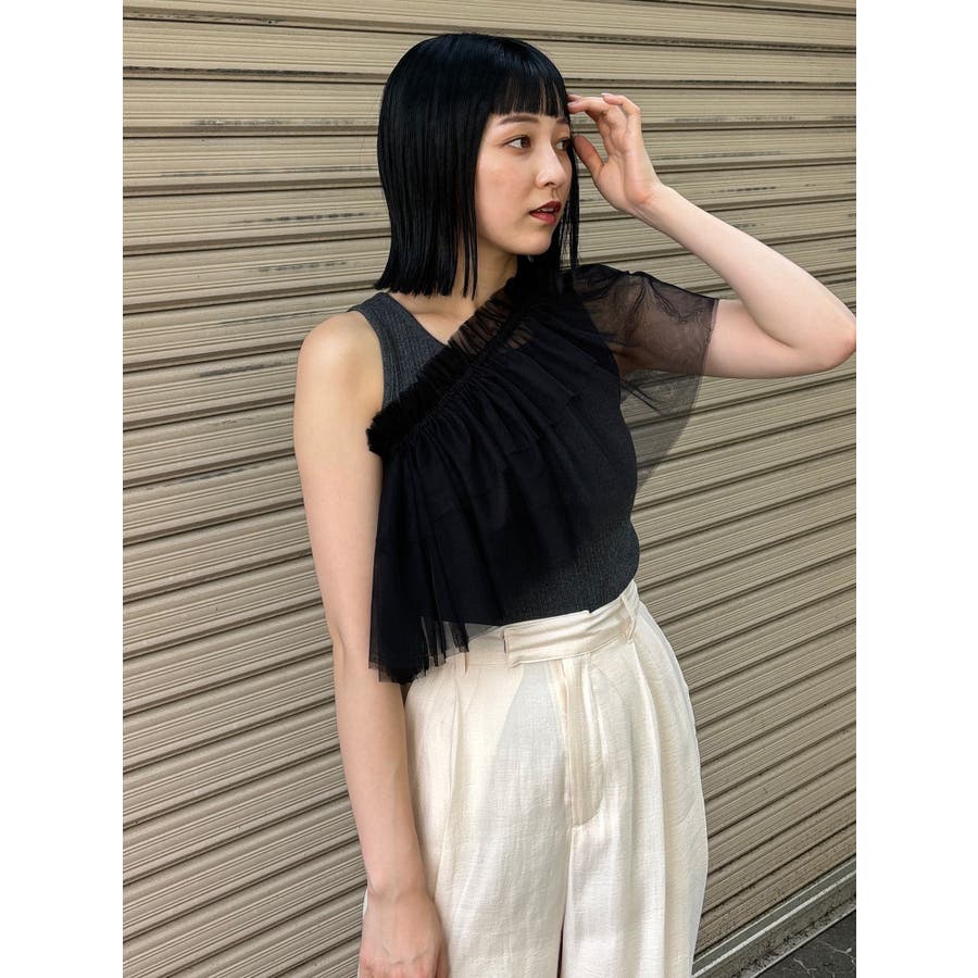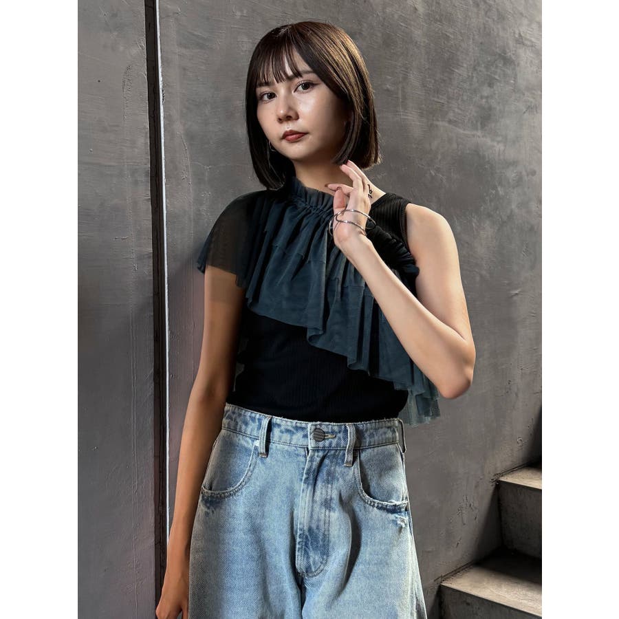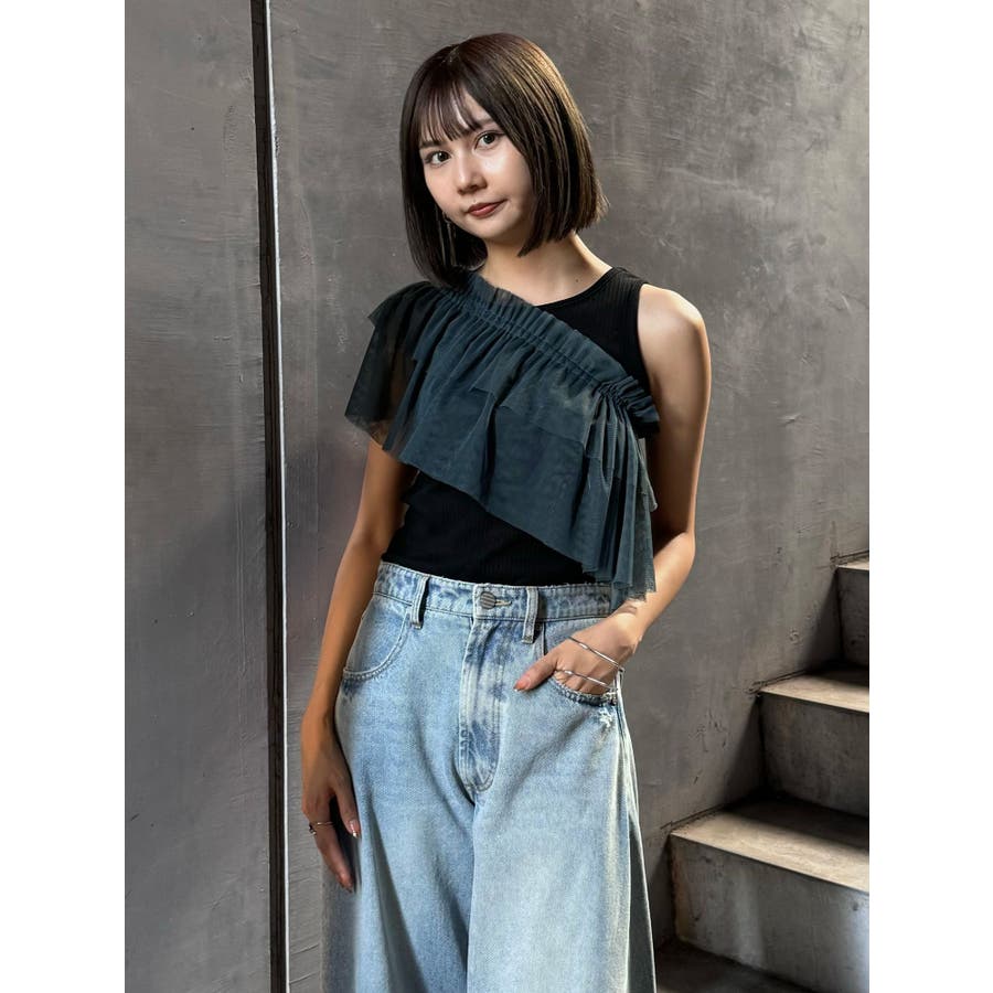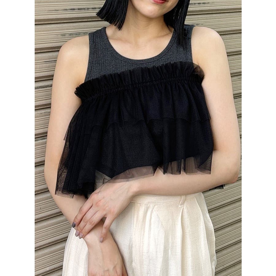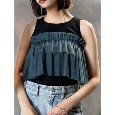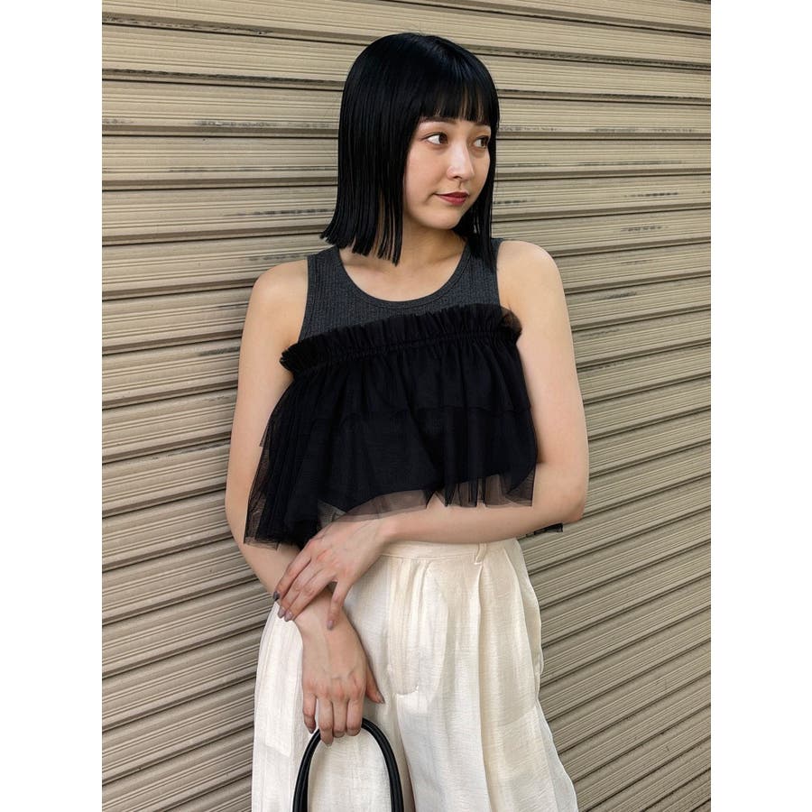 チュールフリルレイヤードタンクトップ