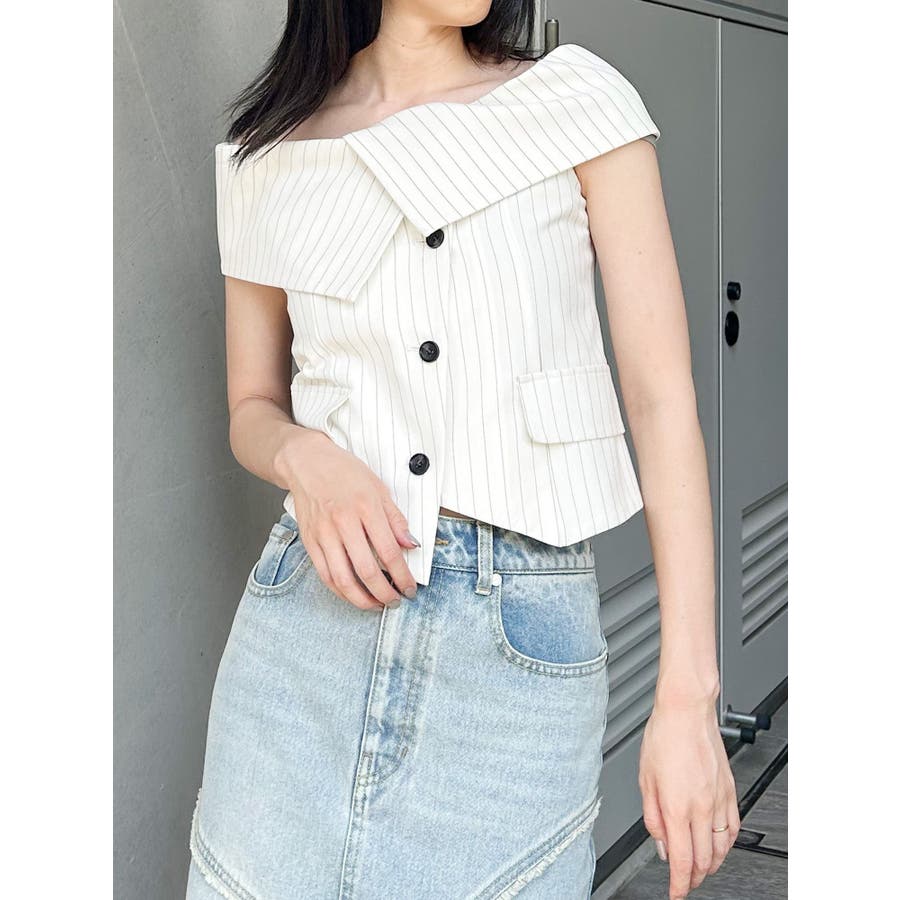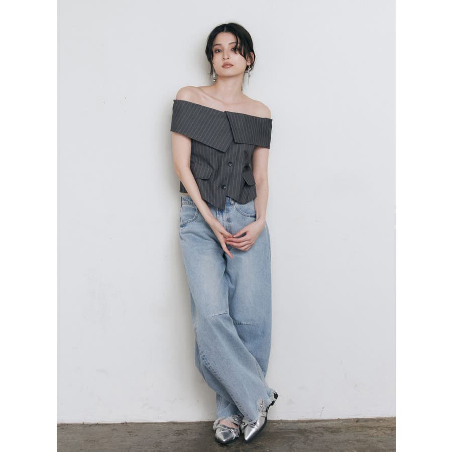 オフショルマニッシュブラウス
