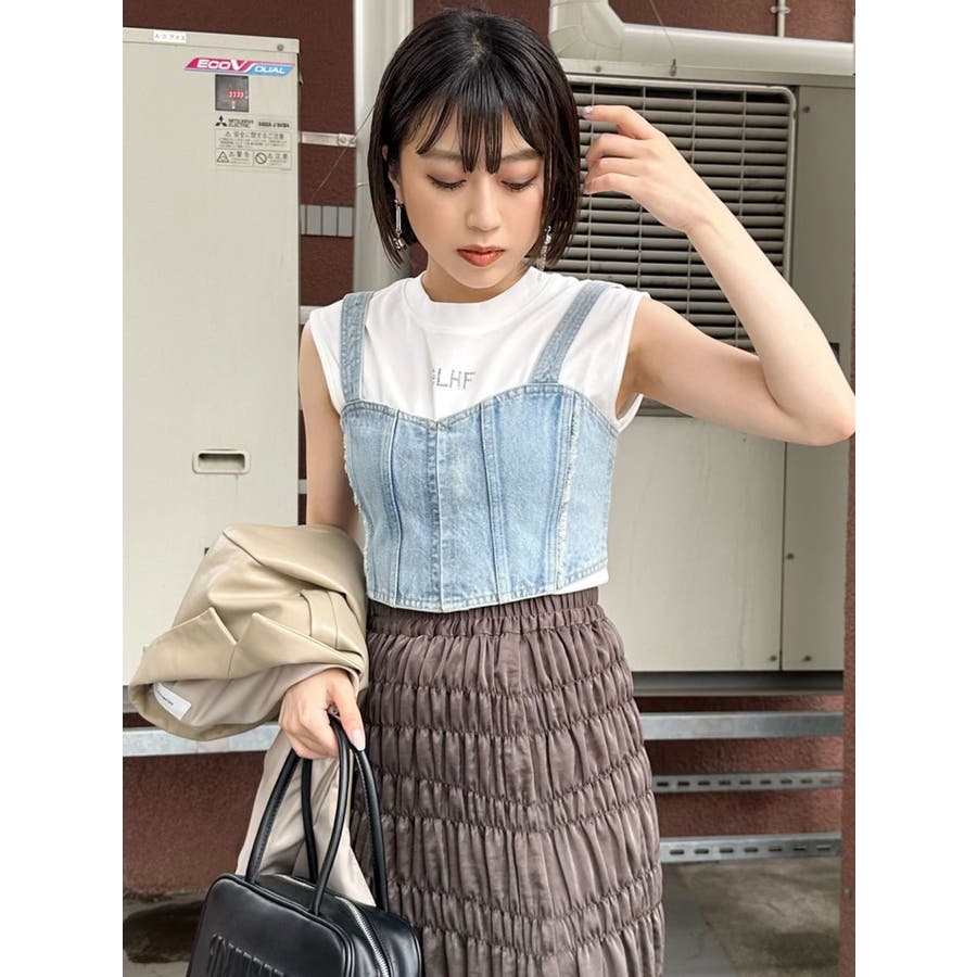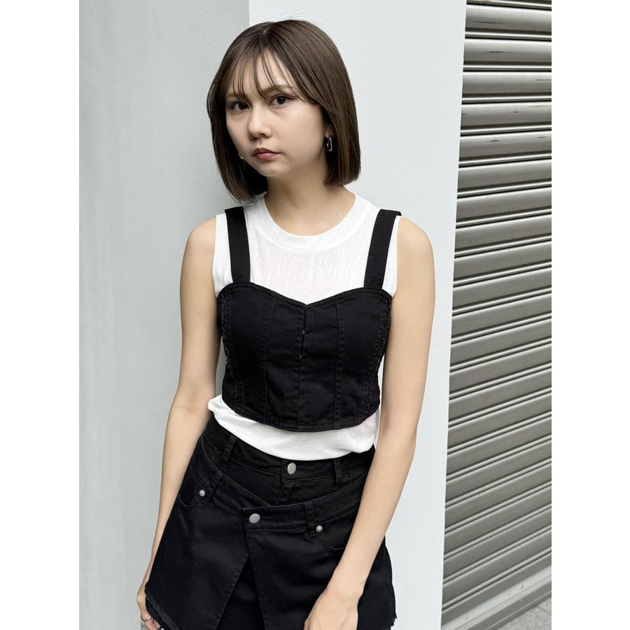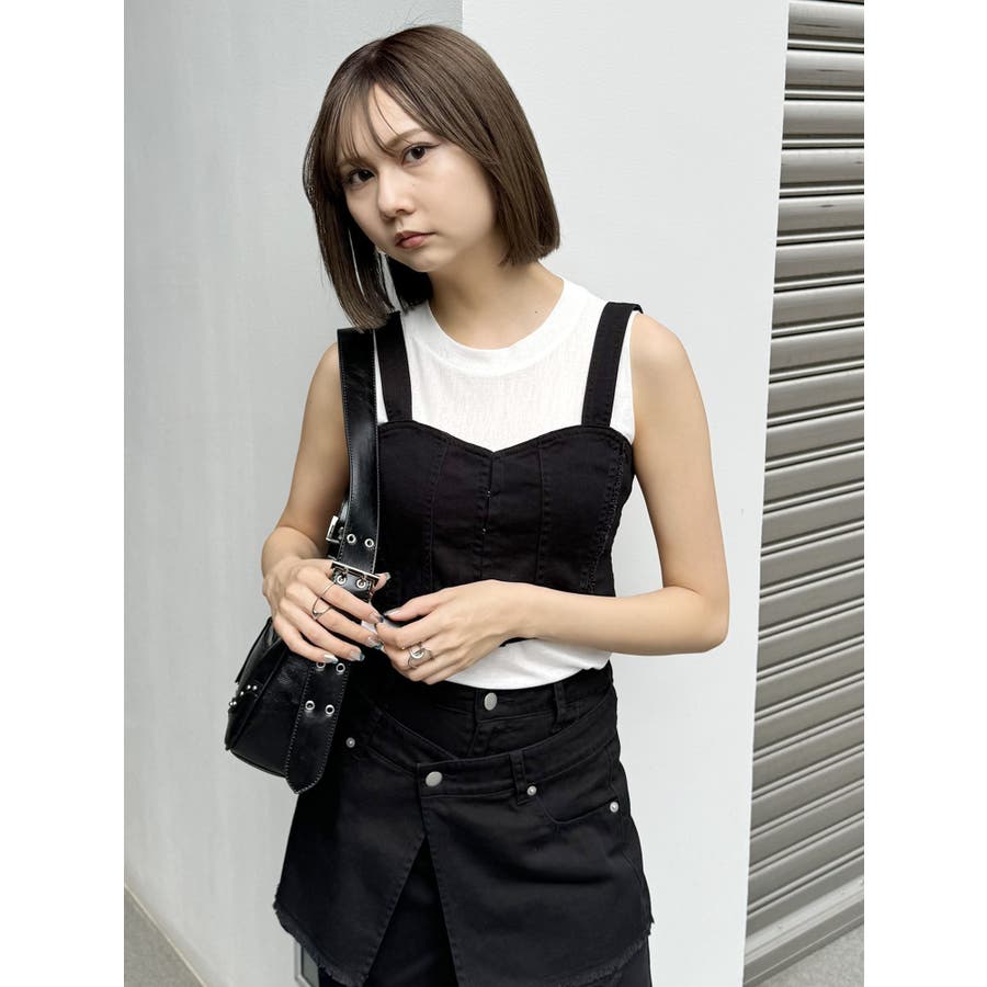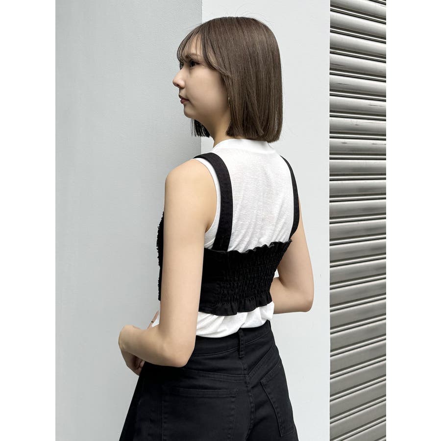 F: バスト一部ゴム仕様:77~88cm/前下がり調節可能cm/総丈22cm/計量約174g