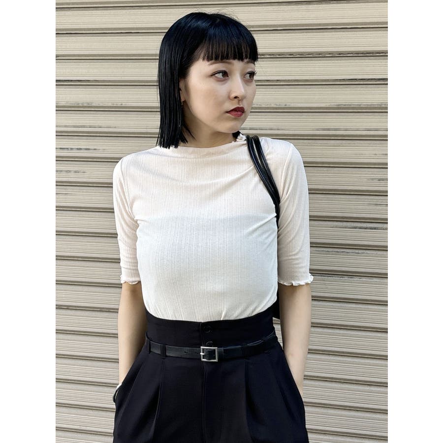 ボトルネックシアーカットトップス