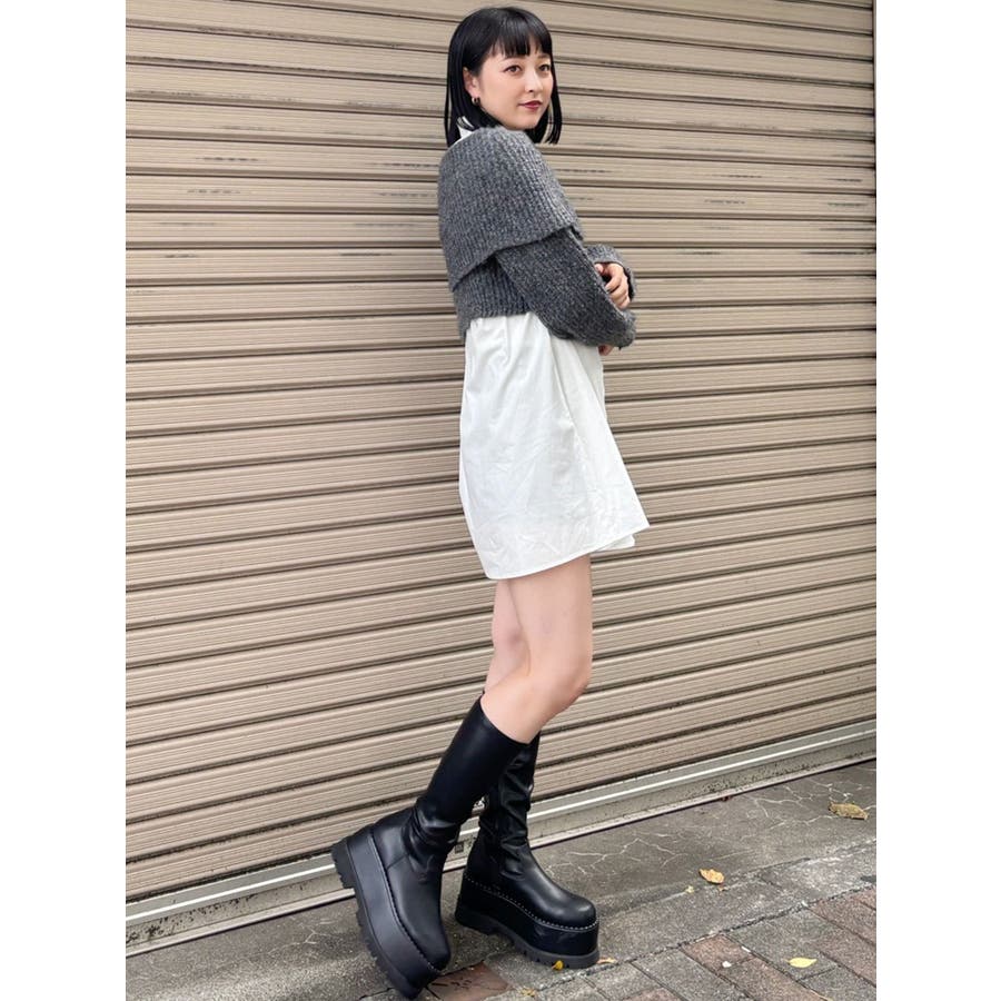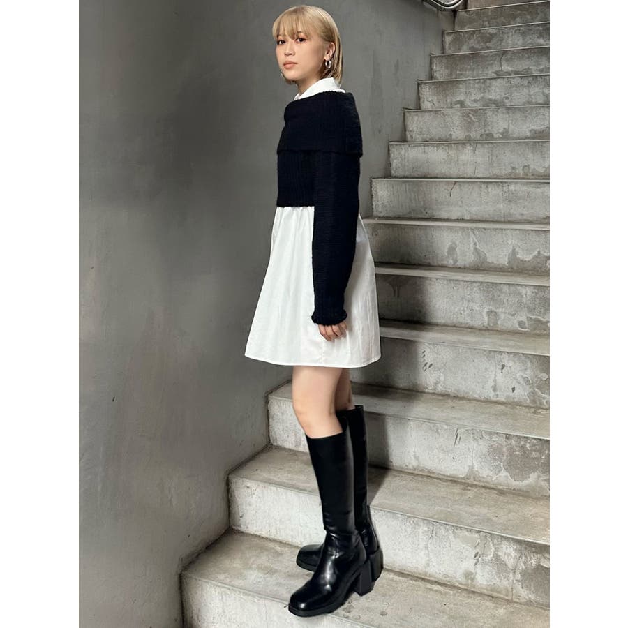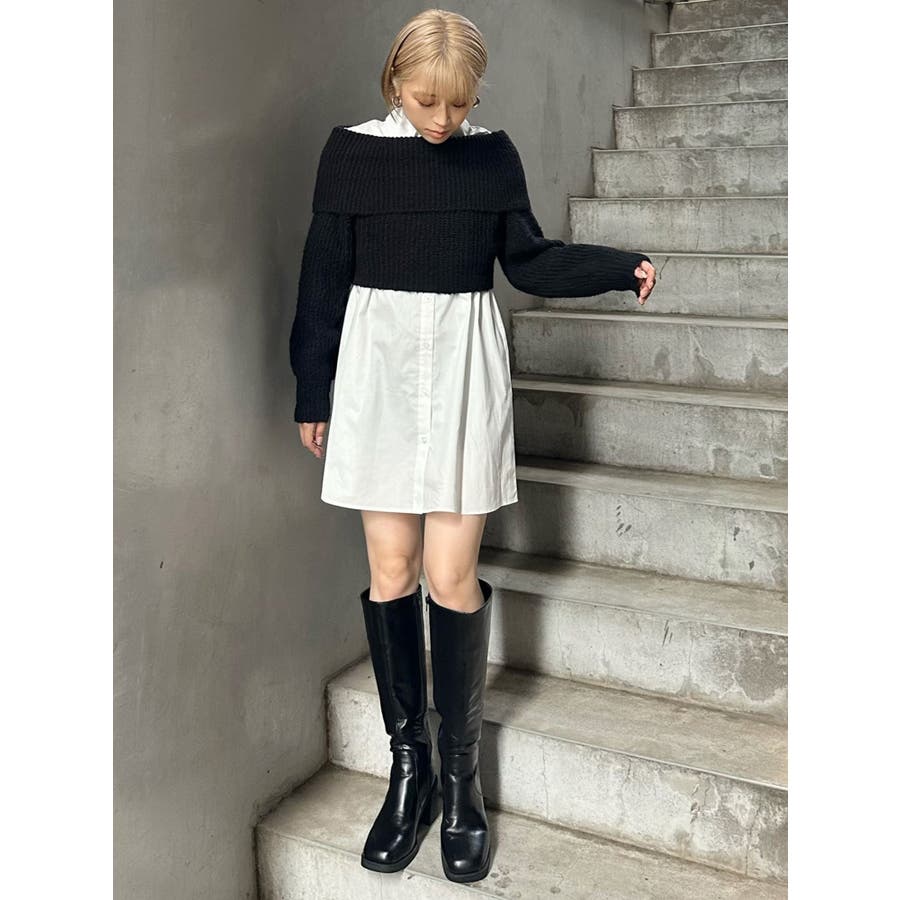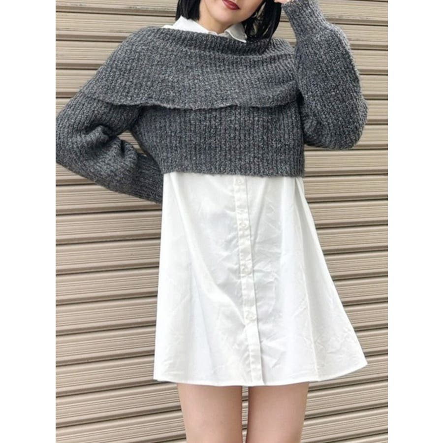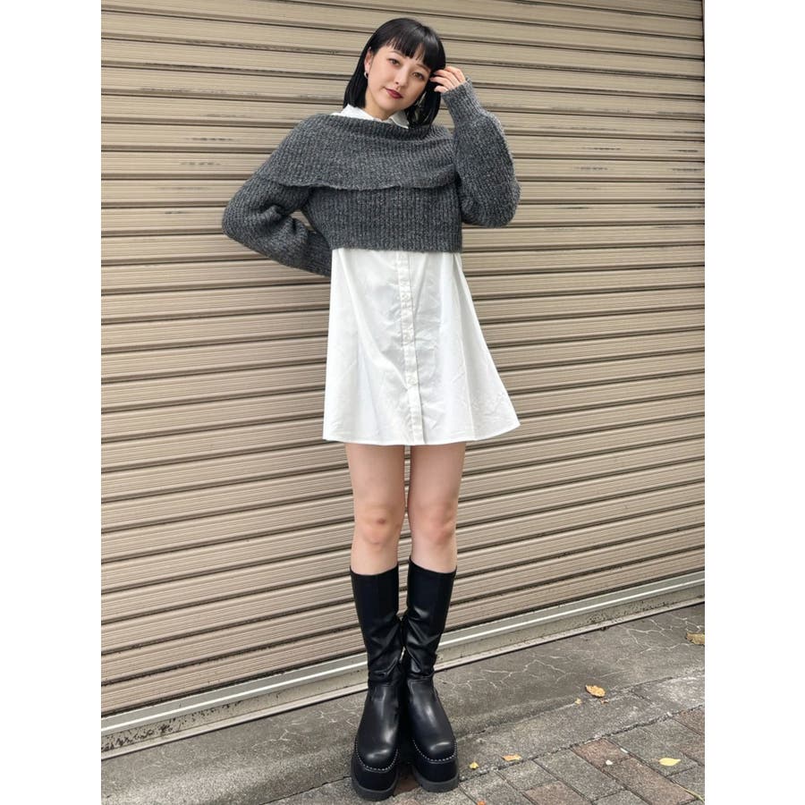 | 素材 | ニット部分:アクリル60% ポリエステル20% ナイロン15% 毛3% ポリウレタン2% ワンピース:綿100% |
