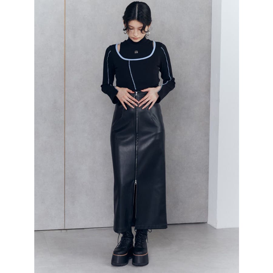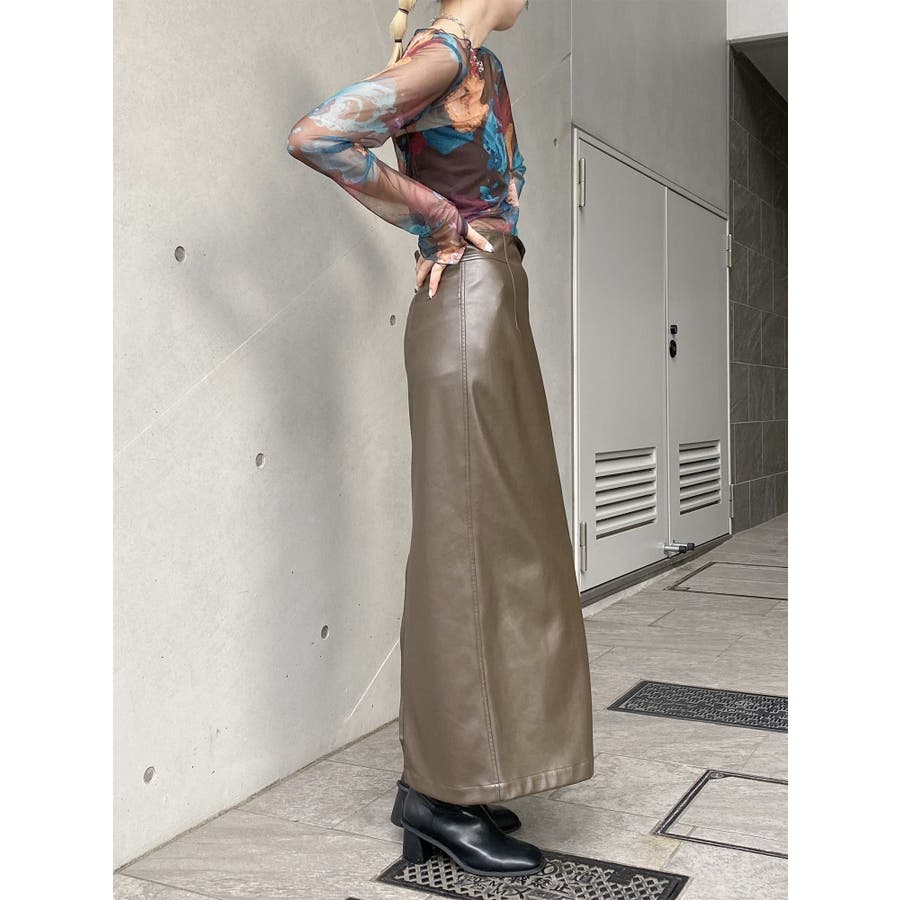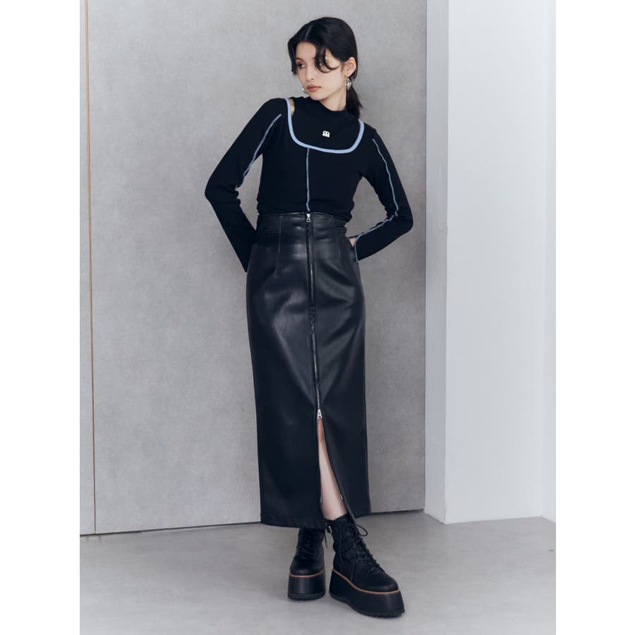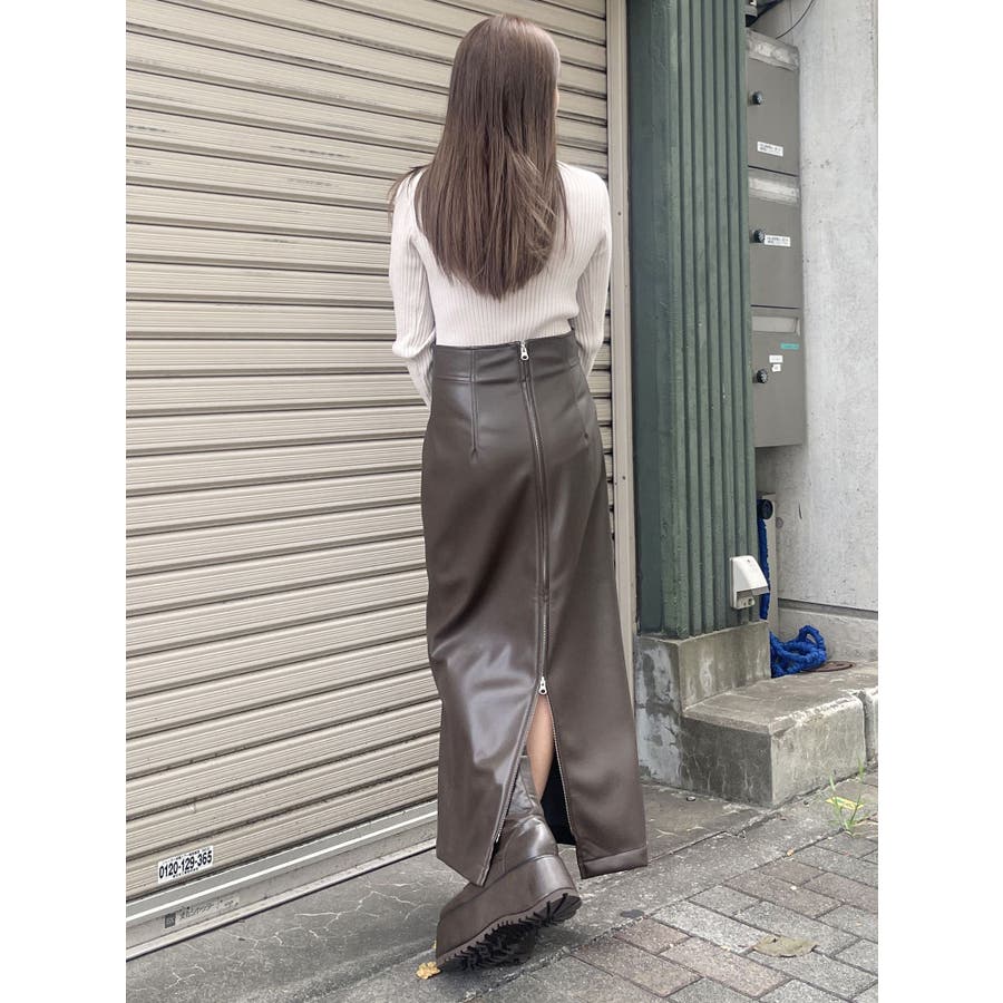 マルチウェイナローフェイクレザースカート