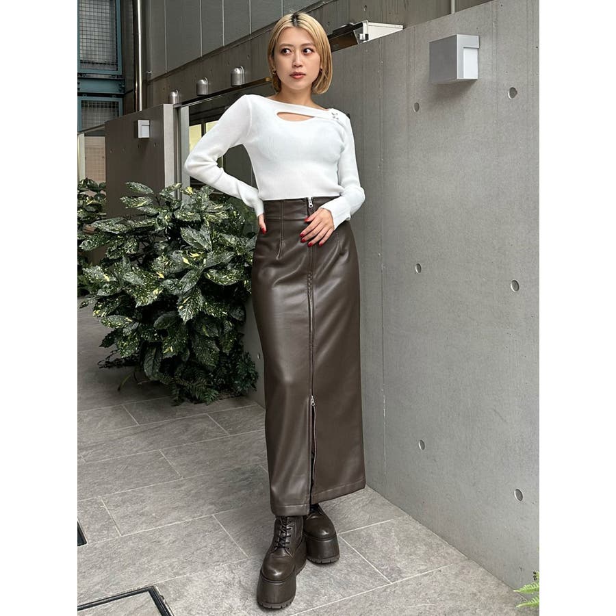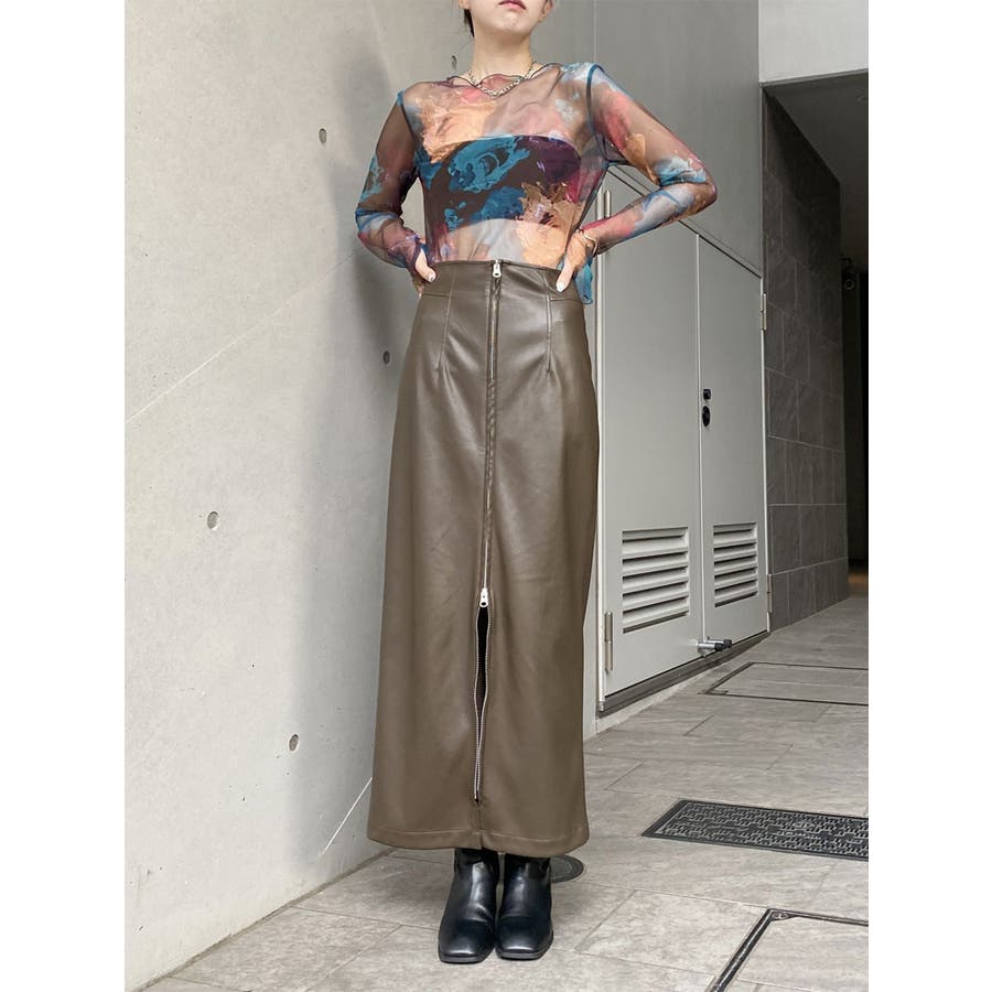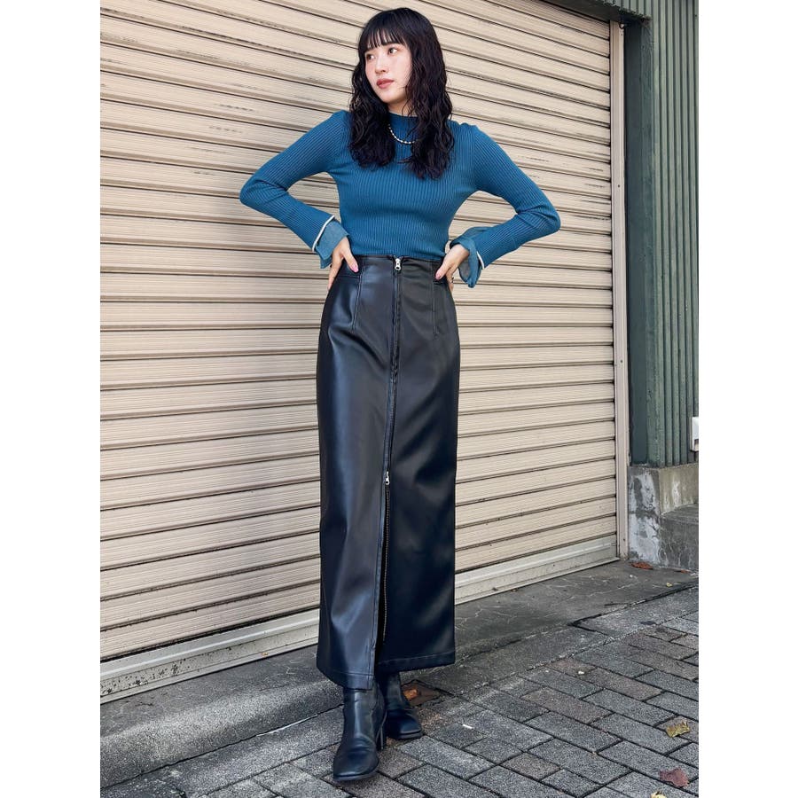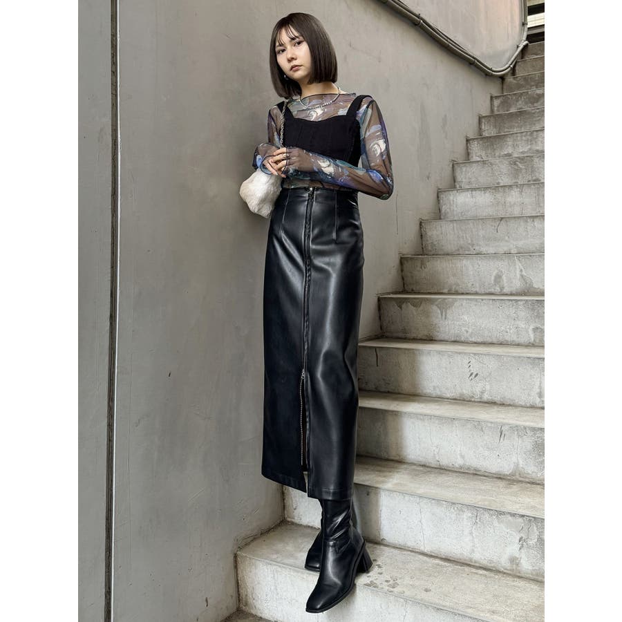 マルチウェイナローフェイクレザースカート