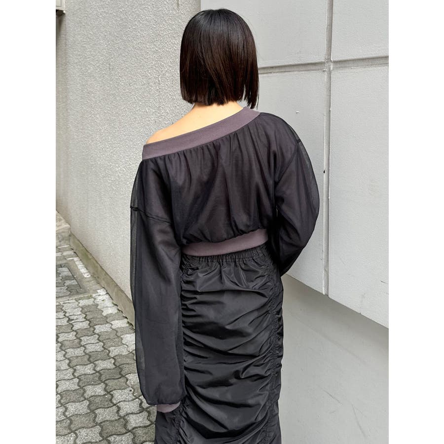 | 素材 | 本体:ポリエステル52% 綿48% チュール:ナイロン100% リブ:ポリエステル70% 綿25% レーヨン3% ポリウレタン2% |