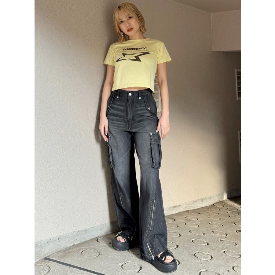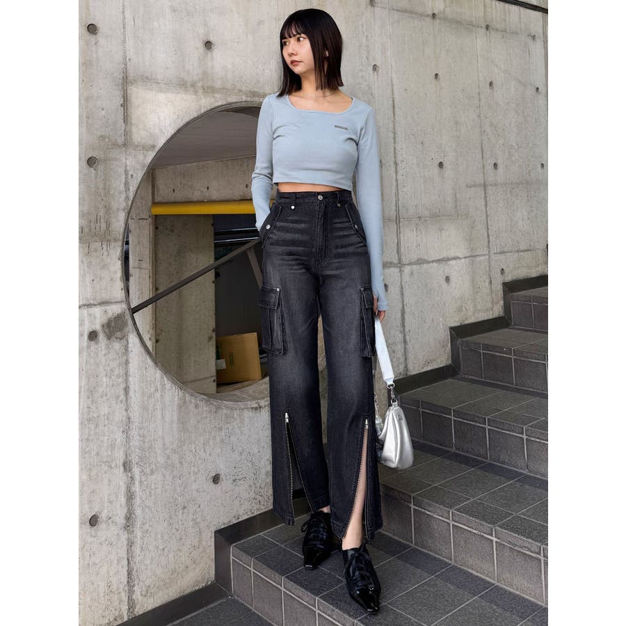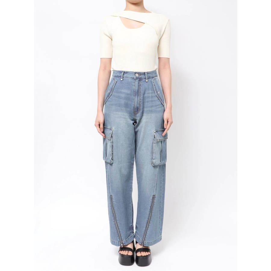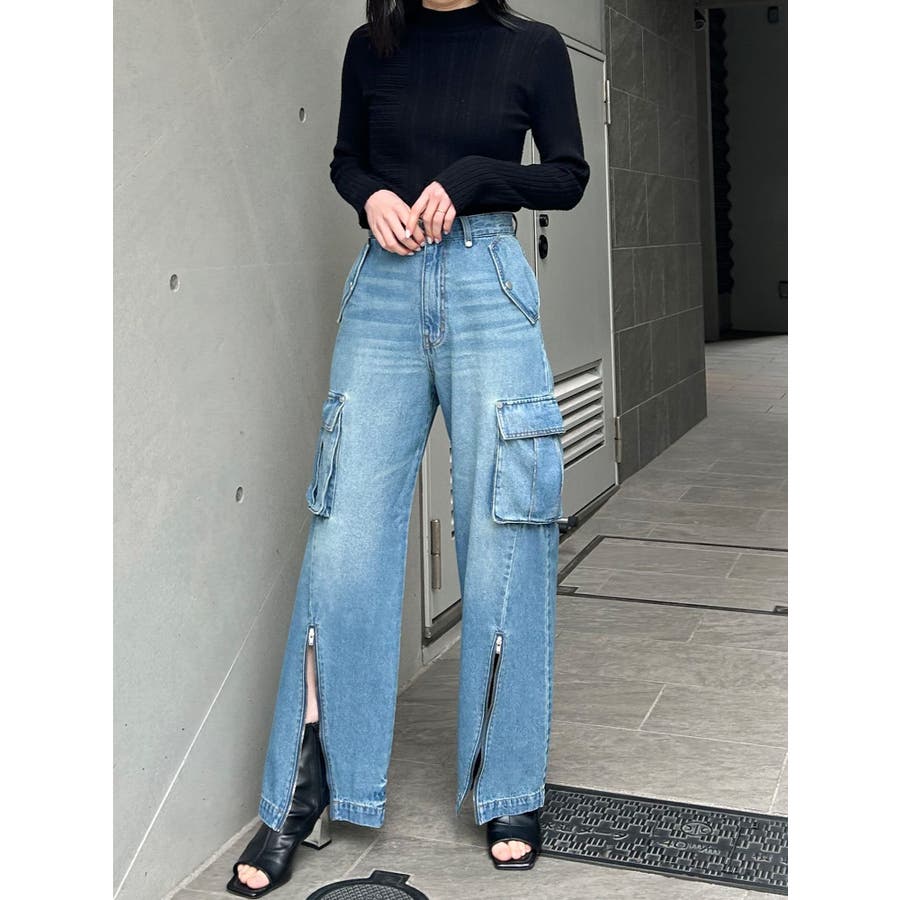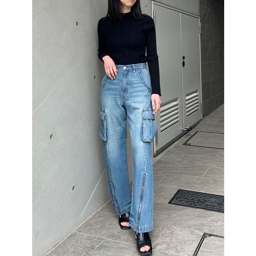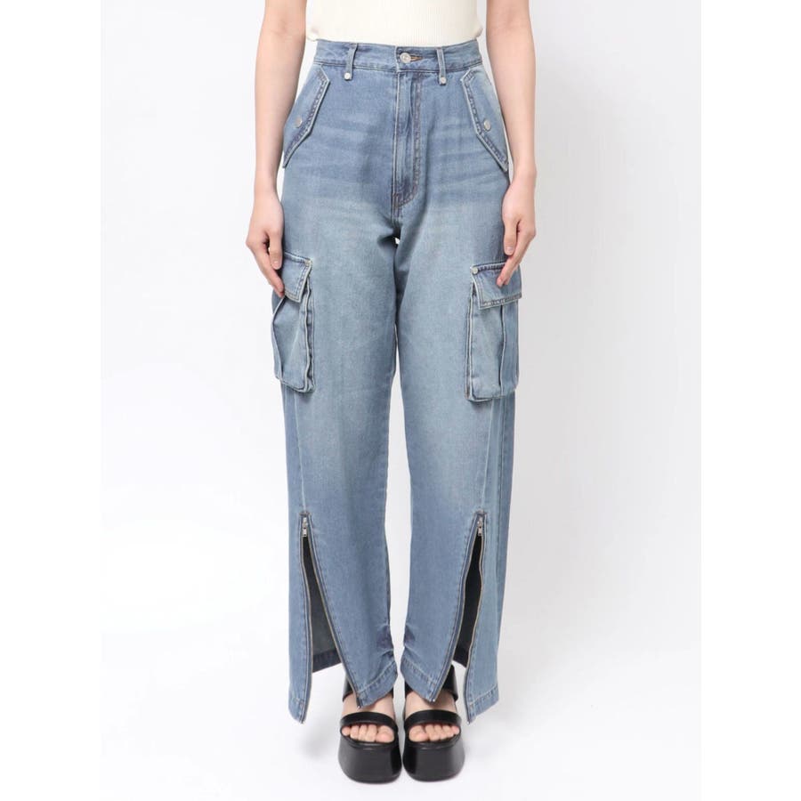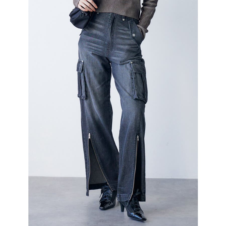 ジップヘムカーゴデニムパンツ