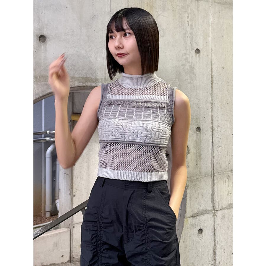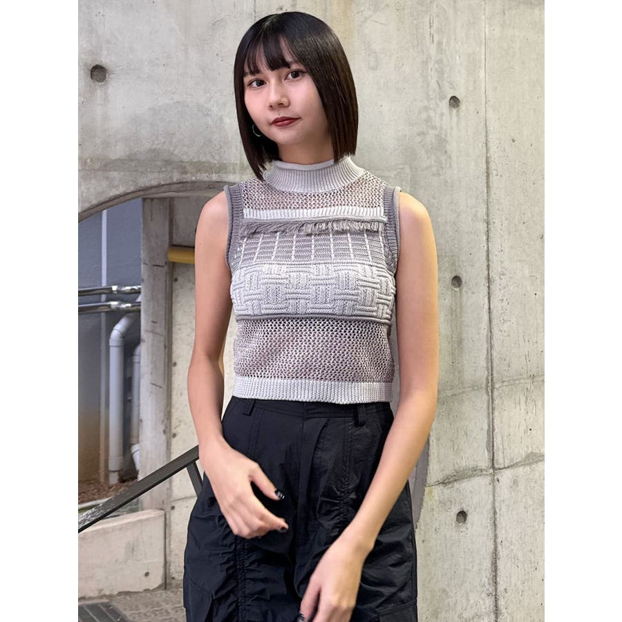 クロシェフリンジニット