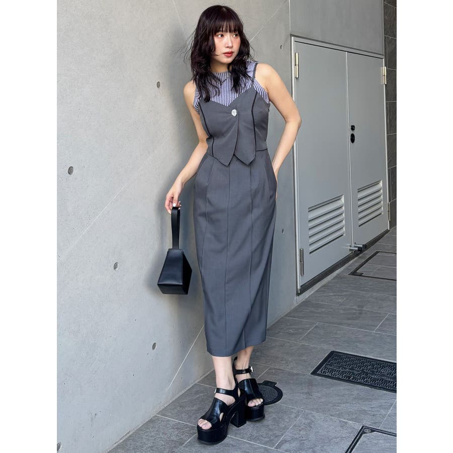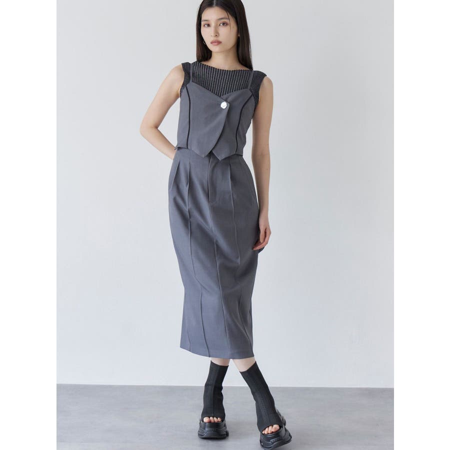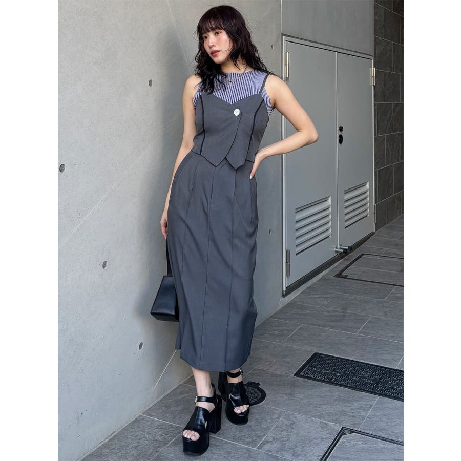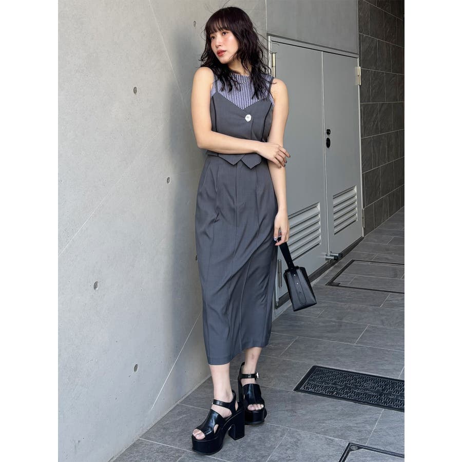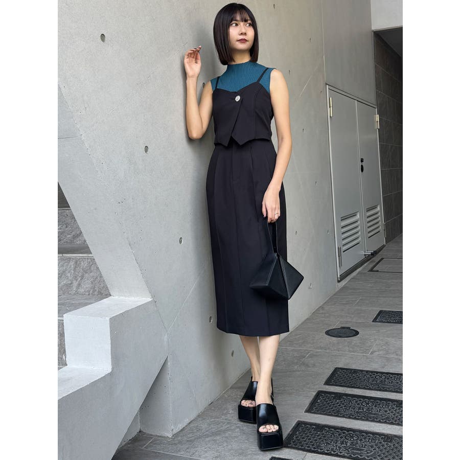 タイトなシルエットで細見えしますし、ジャンスカでトップスが前開きというあまりないデザインなので購入して良かったです。