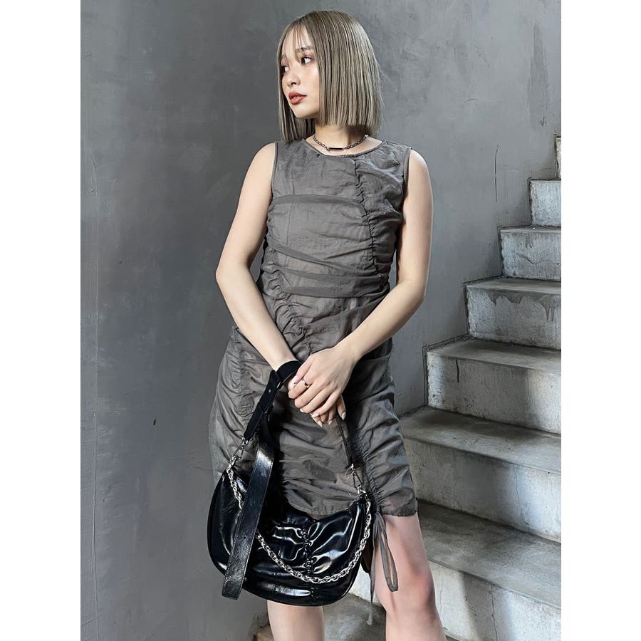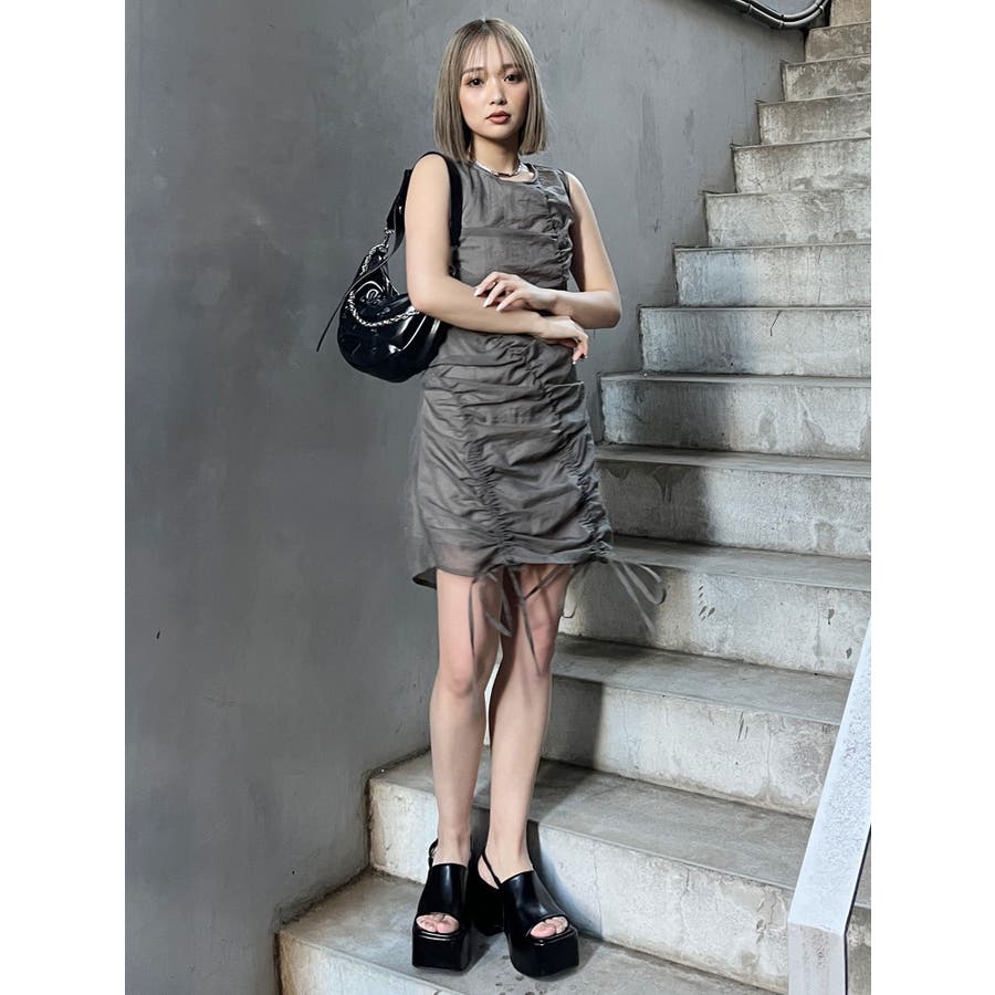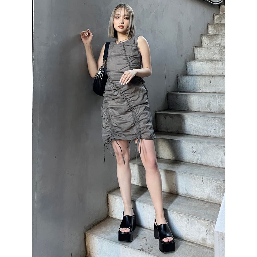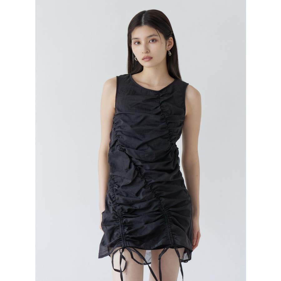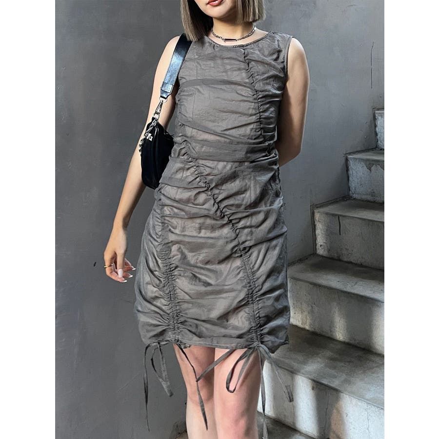 シャーリングミニワンピース