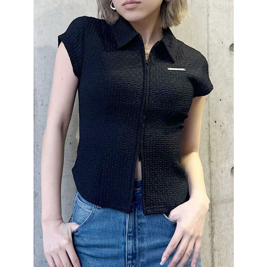 F: バスト80cm/着丈48cm/袖丈8cm/肩幅34cm/計量約124g