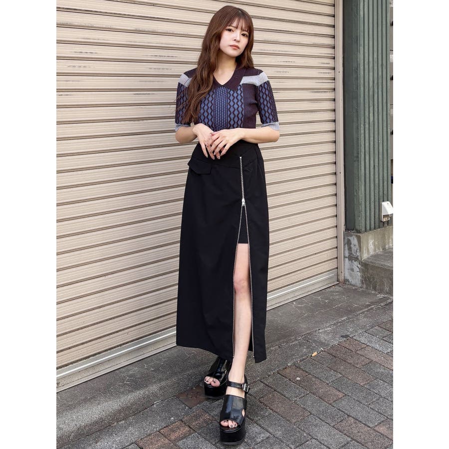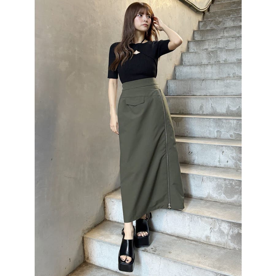 ダブルウエストZIPスカート