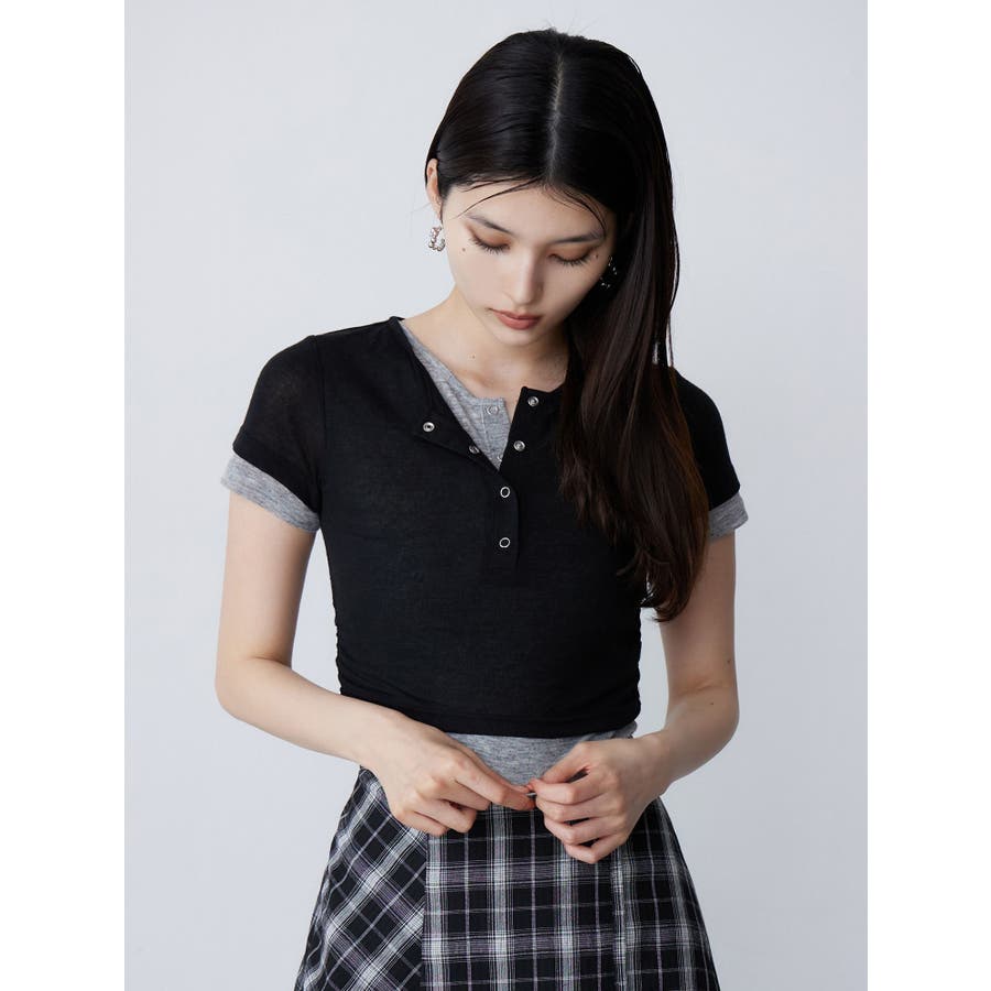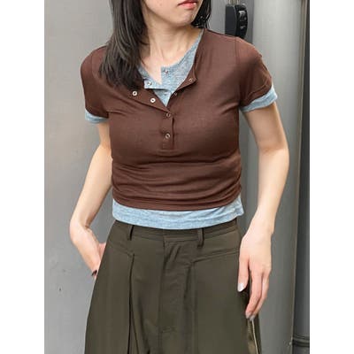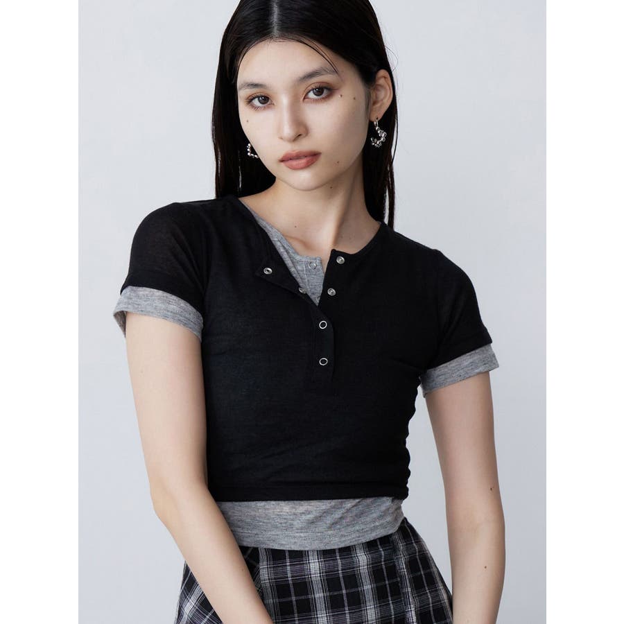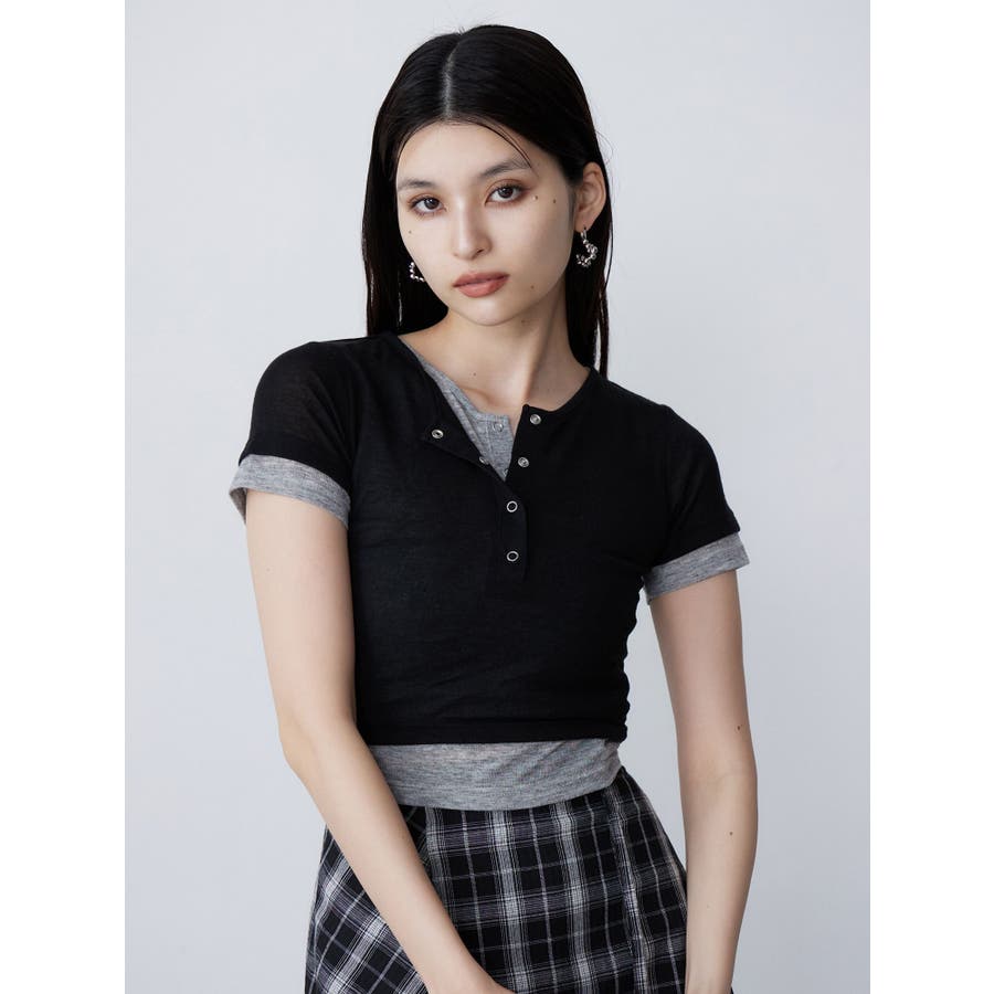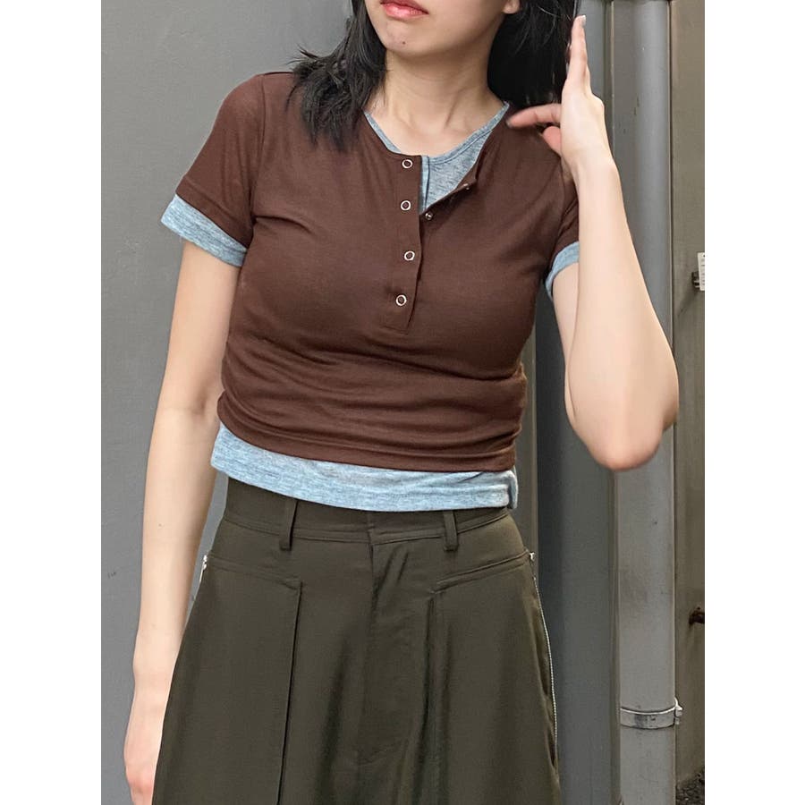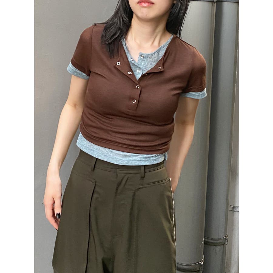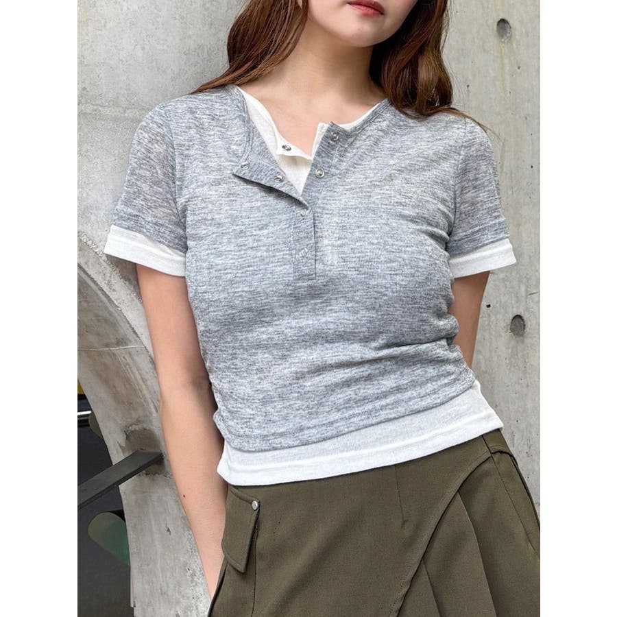 ヘンリーネックレイヤードトップス