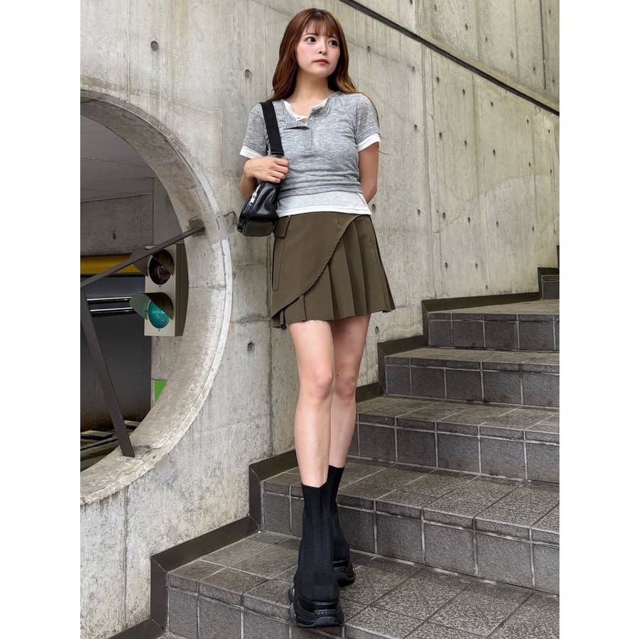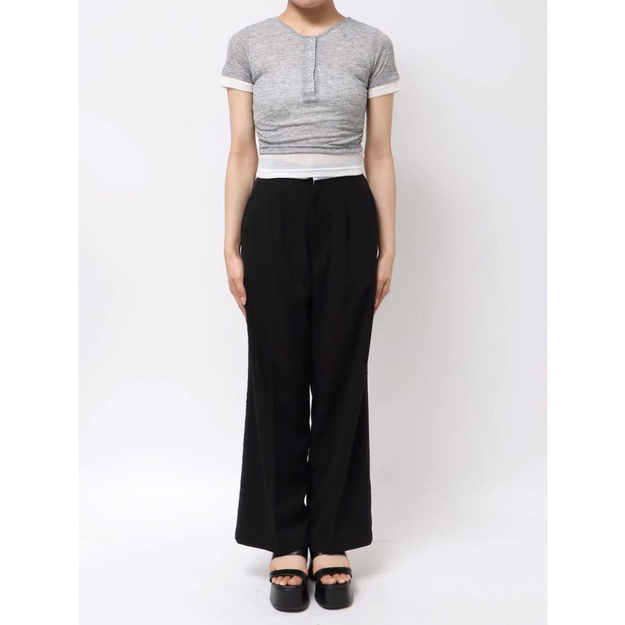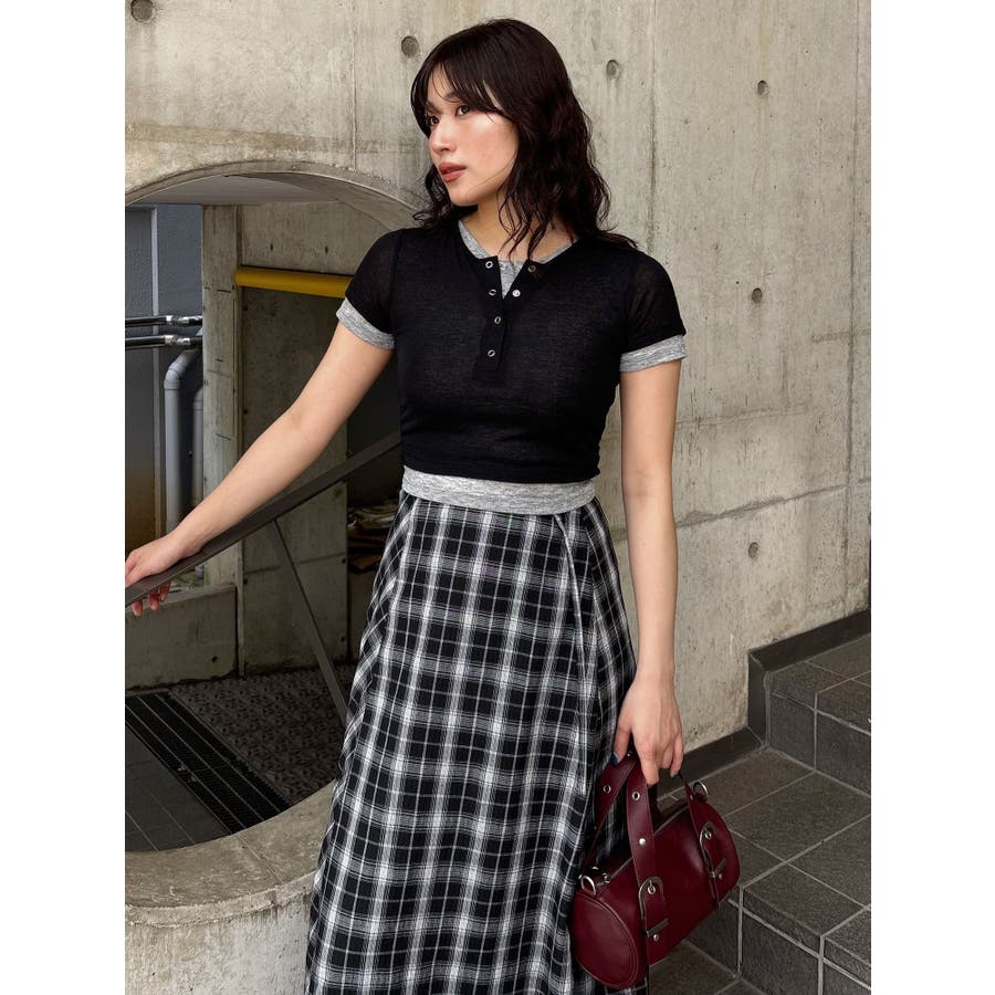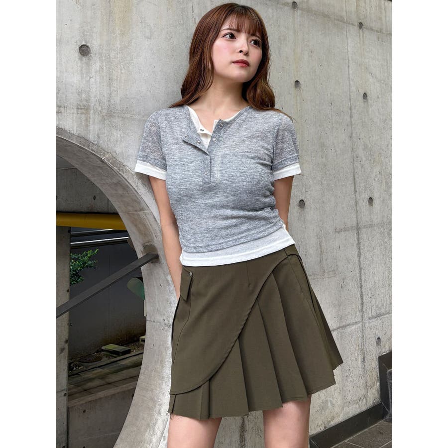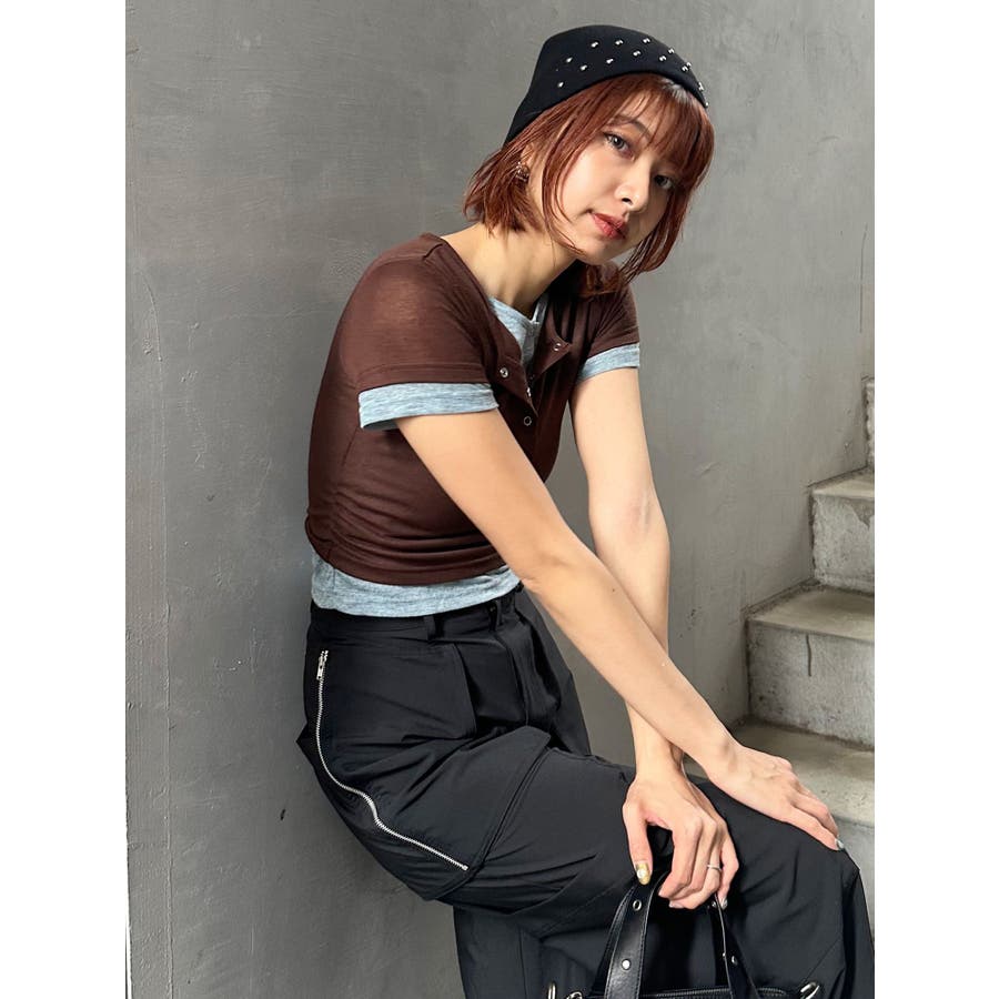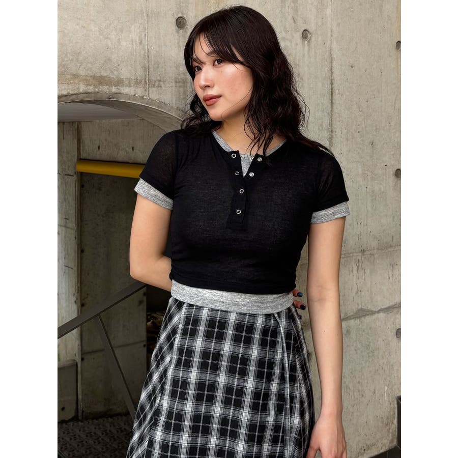 ヘンリーネックレイヤードトップス