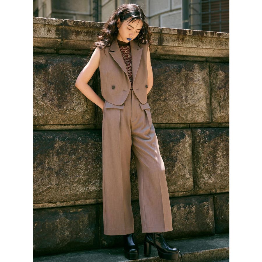 素材 | [グレー/ネイビー]表地:ポリエステル70% レーヨン27% ポリウレタン3% 裏地:ポリエステル100%[ブラック/モカ]表地:ポリエステル97% ポリウレタン3% 裏地:ポリエステル100% |