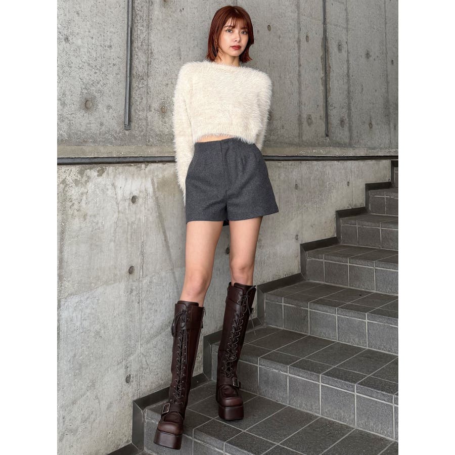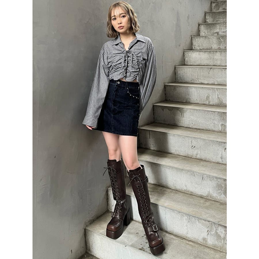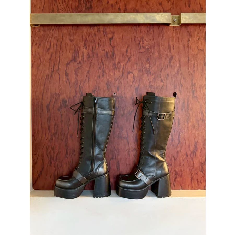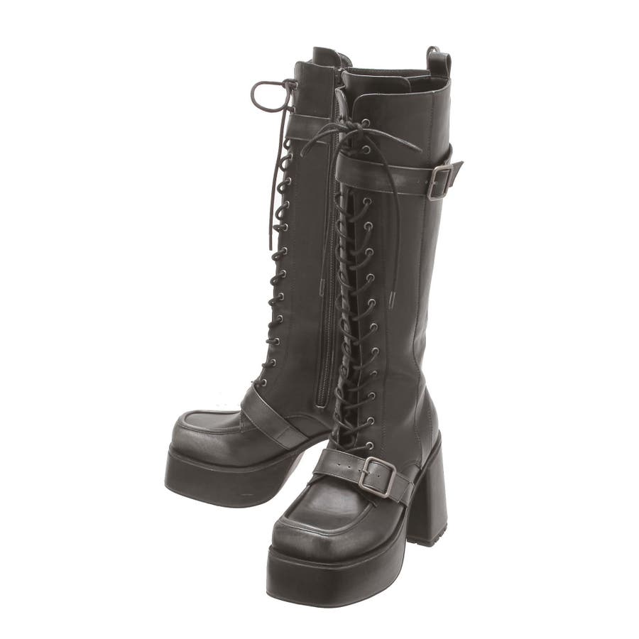 レースアップベルトロングブーツ