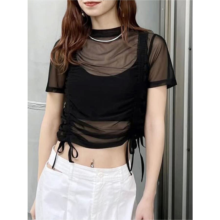 F: バスト82~cm/着丈51cm/袖丈19cm/肩幅34.5~cm/計量約48g