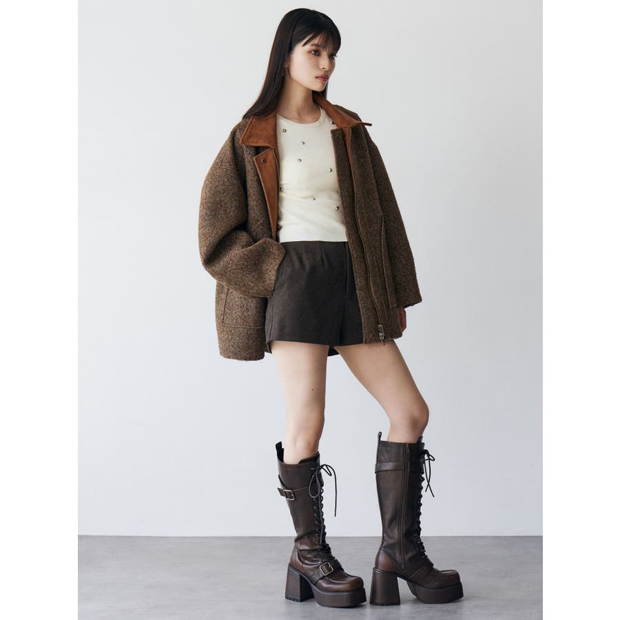 | 素材 | 表側:ポリエステル94% ポリウレタン6% 裏側:ポリエステル69% 毛27% アクリル3% ナイロン1% |