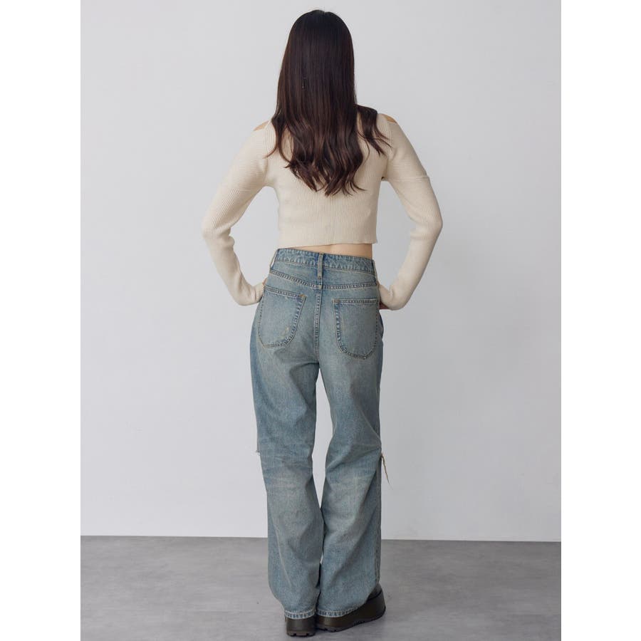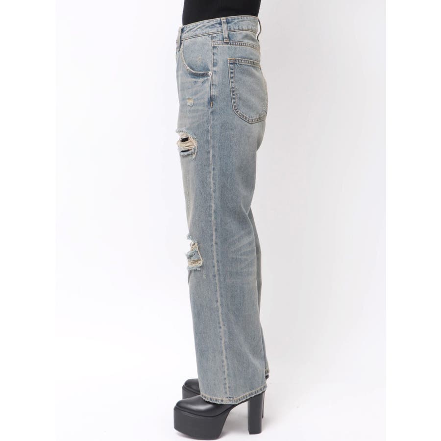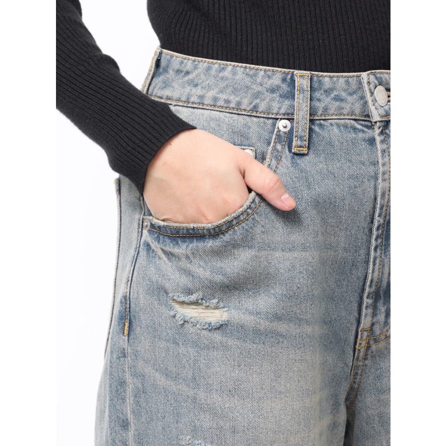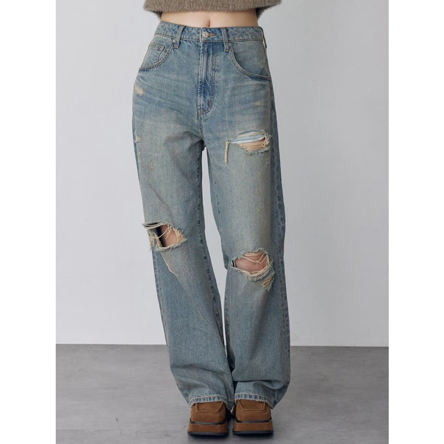 ダメージ具合にこだわったデニムパンツトップスを選ばない万能ボトムス■アイテム左腿のダメージ部分からポケット袋布がチラ見えしますが、全体的には肌露出は控えめにしたダメージデニム。ジャストウエストでストンとしたストレートシルエット。カラーはくすみのある淡色に仕上げました。ダメージデザインで秋冬のコーデに抜け感を出してくれる1着◎トップスはタイトなものをインしたり、オーバーサイズのものをアウトでルーズに着用いただくなどアイテムを選ばず着用いただけます。--------------------------------------------生地の厚さ:普通 伸縮性:なし裏地:なし サイズ感:普通--------------------------------------------【知って得する便利機能◎ 】■商品のお気に入り登録再入荷時、ラスト1点の時にお知らせします。■ブランドのお気に入り登録新商品やお得な情報など、いち早くお得な情報をゲット!ぜひご活用ください!※着用画像はフラッシュの加減で実際の製品と色味等が異なる場合がございますので、生地のズームアップ画像をご確認ください。※ご利用の端末画面の設定により実際の商品と色味が異なる場合がございます。