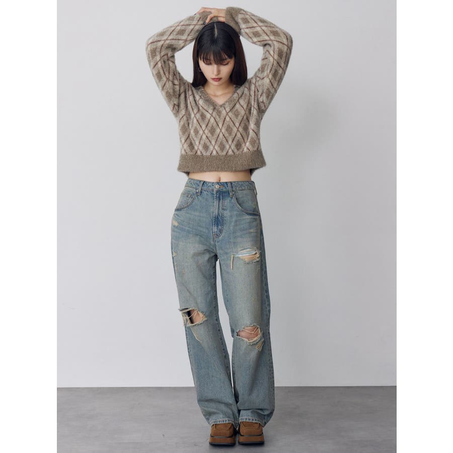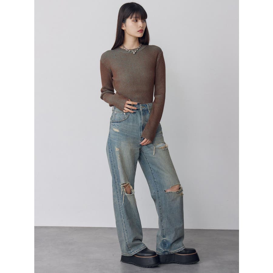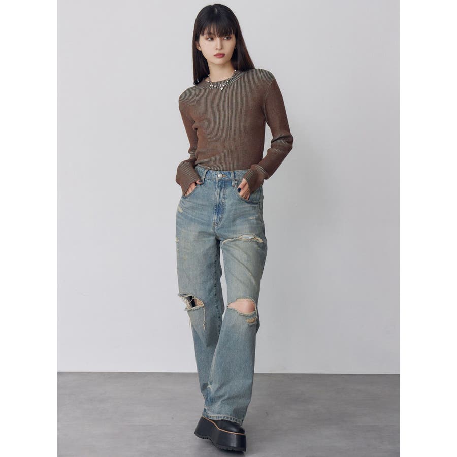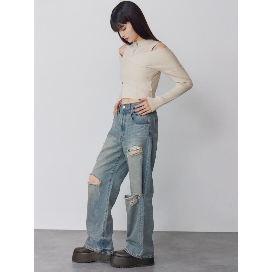 ダメージ具合にこだわったデニムパンツトップスを選ばない万能ボトムス■アイテム左腿のダメージ部分からポケット袋布がチラ見えしますが、全体的には肌露出は控えめにしたダメージデニム。ジャストウエストでストンとしたストレートシルエット。カラーはくすみのある淡色に仕上げました。ダメージデザインで秋冬のコーデに抜け感を出してくれる1着◎トップスはタイトなものをインしたり、オーバーサイズのものをアウトでルーズに着用いただくなどアイテムを選ばず着用いただけます。--------------------------------------------生地の厚さ:普通 伸縮性:なし裏地:なし サイズ感:普通--------------------------------------------【知って得する便利機能◎ 】■商品のお気に入り登録再入荷時、ラスト1点の時にお知らせします。■ブランドのお気に入り登録新商品やお得な情報など、いち早くお得な情報をゲット!ぜひご活用ください!※着用画像はフラッシュの加減で実際の製品と色味等が異なる場合がございますので、生地のズームアップ画像をご確認ください。※ご利用の端末画面の設定により実際の商品と色味が異なる場合がございます。