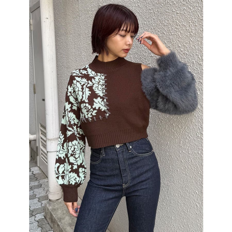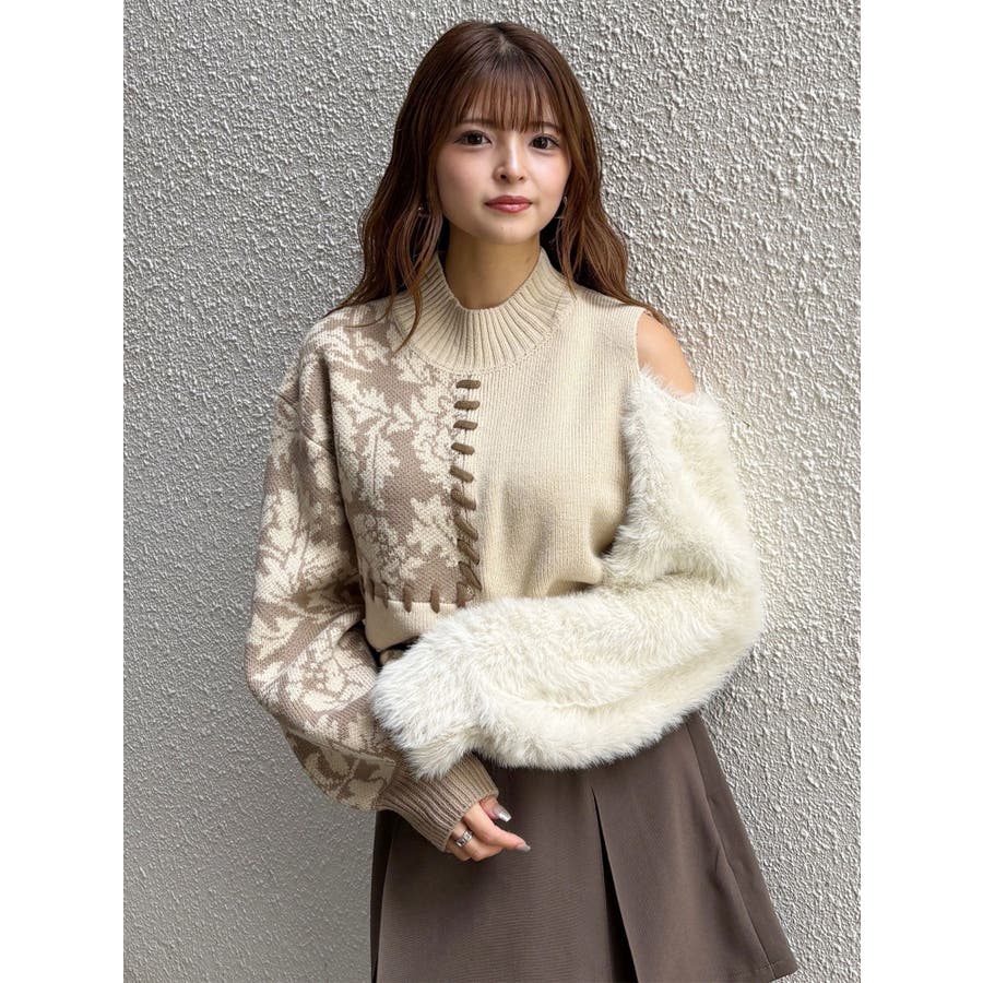 | 素材 | 身頃:アクリル93% ポリエステル7% 柄部分:アクリル100% 左袖:ナイロン82% アクリル18% |