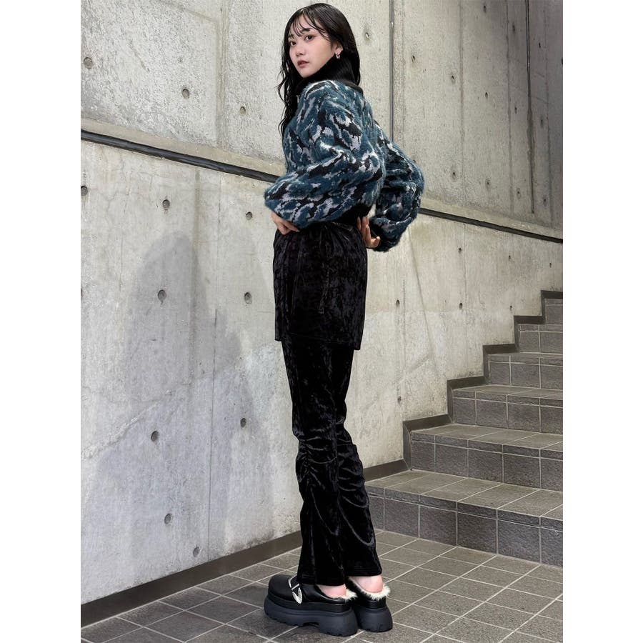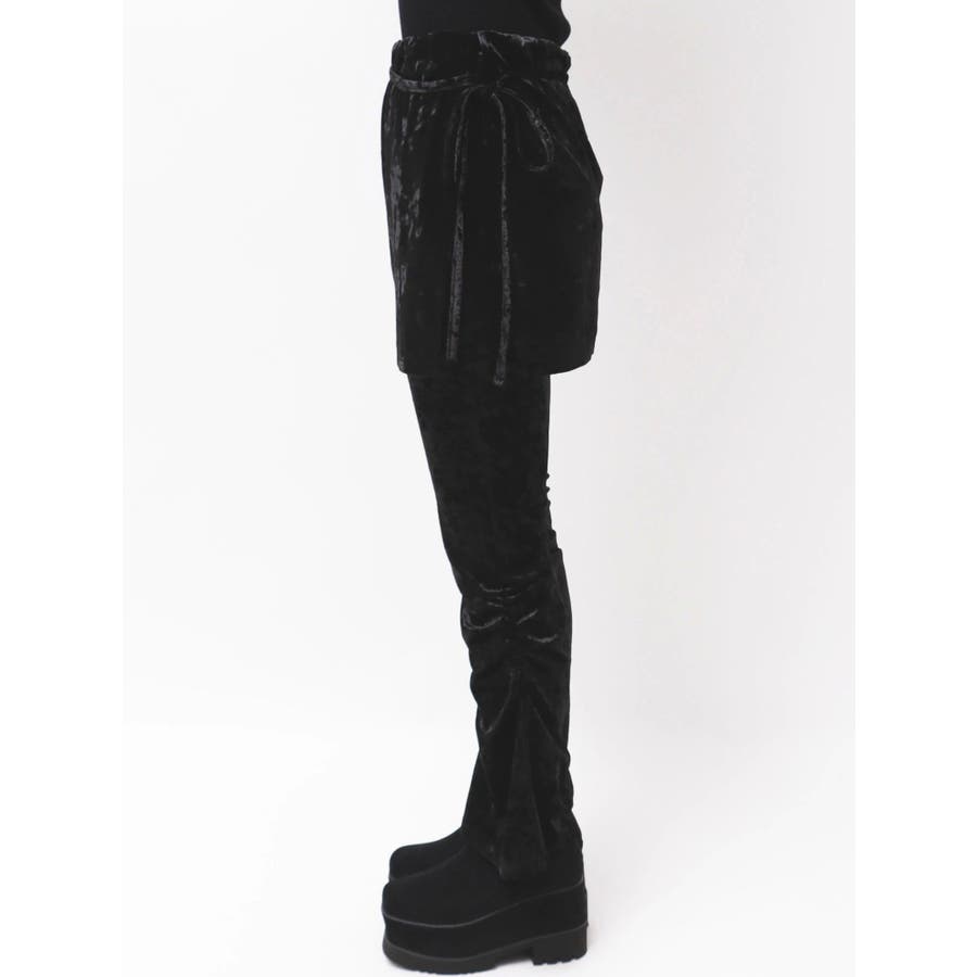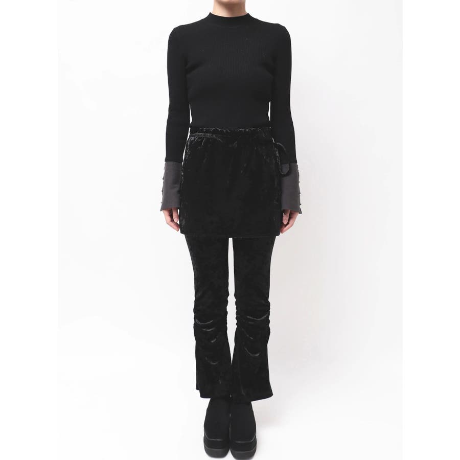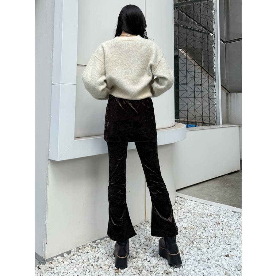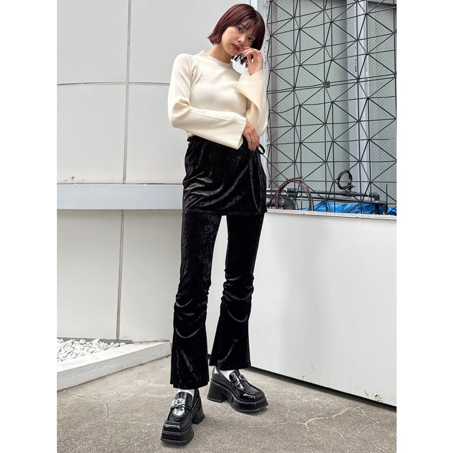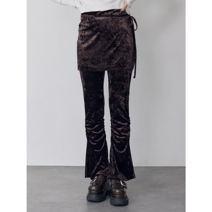 スカートレイヤードシャーリングベロアパンツ
