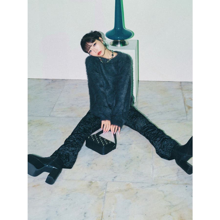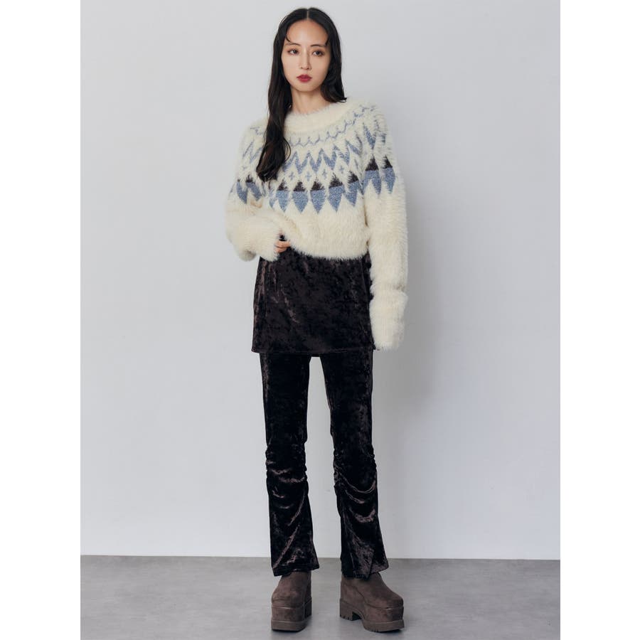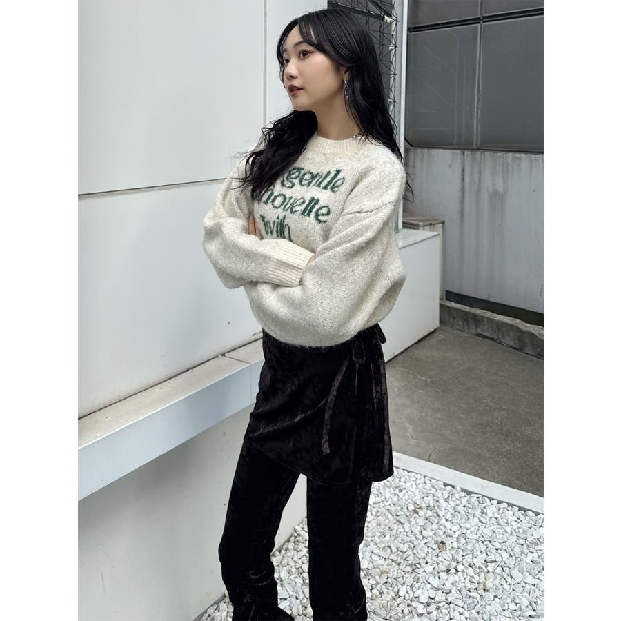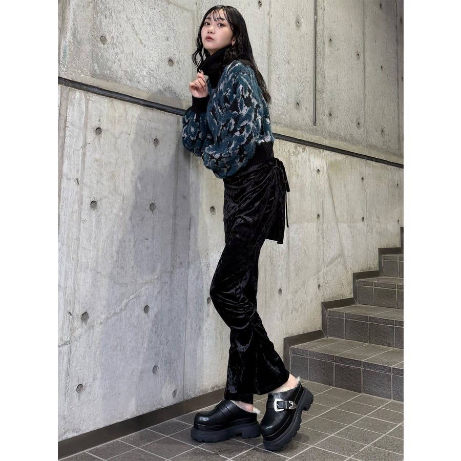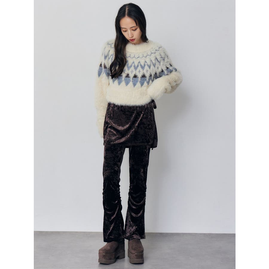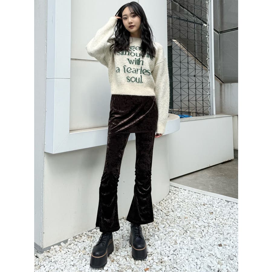 スカートレイヤードシャーリングベロアパンツ