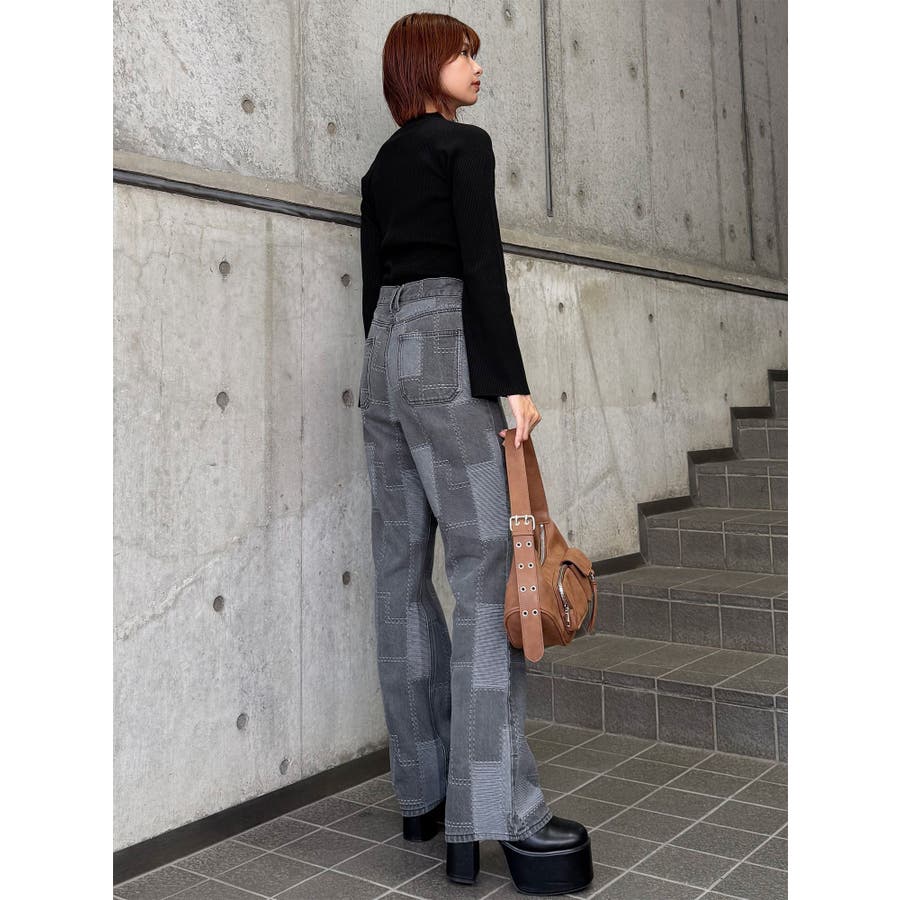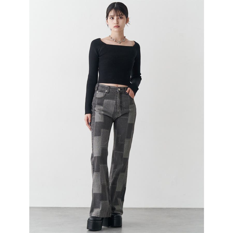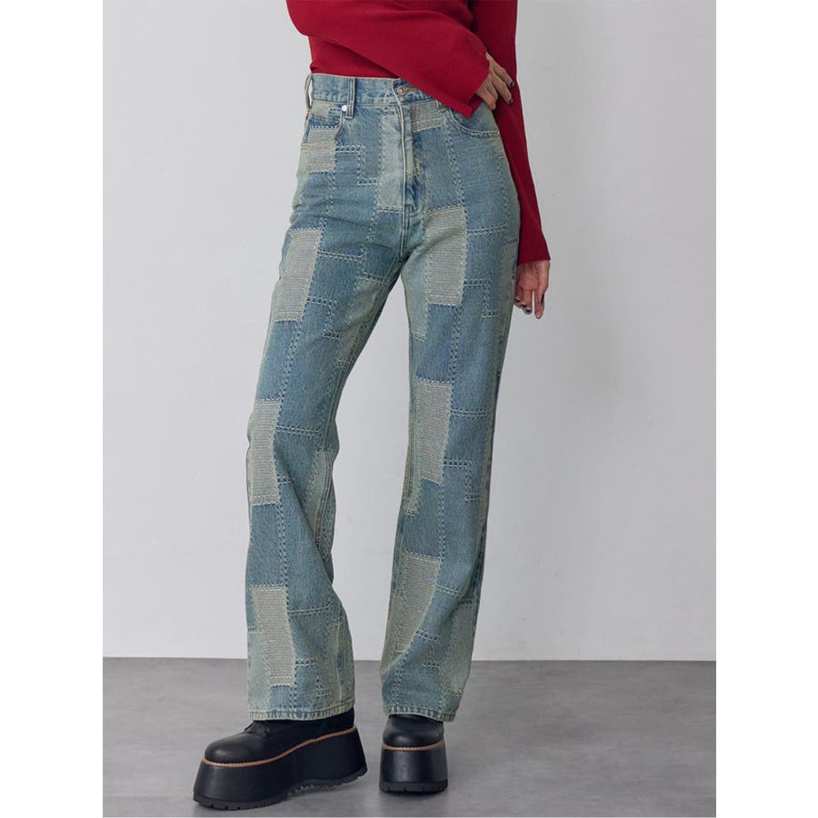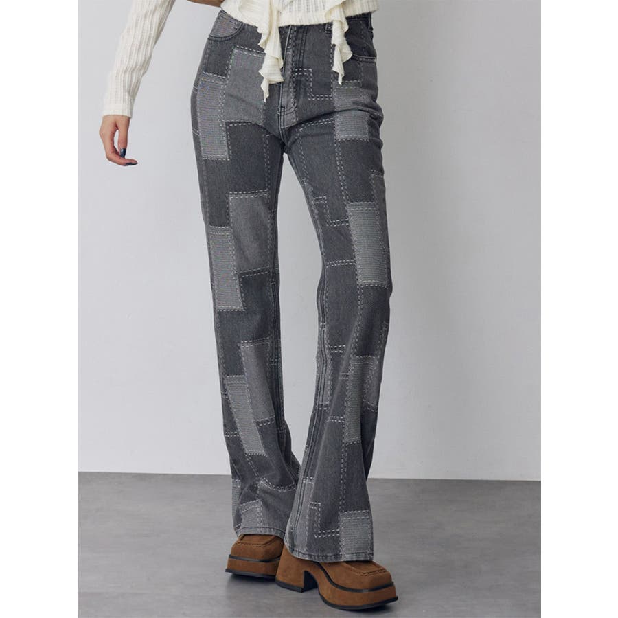 パッチワークフレアデニム