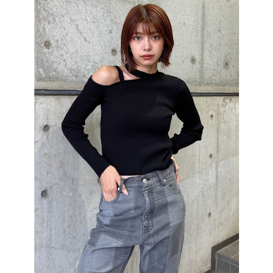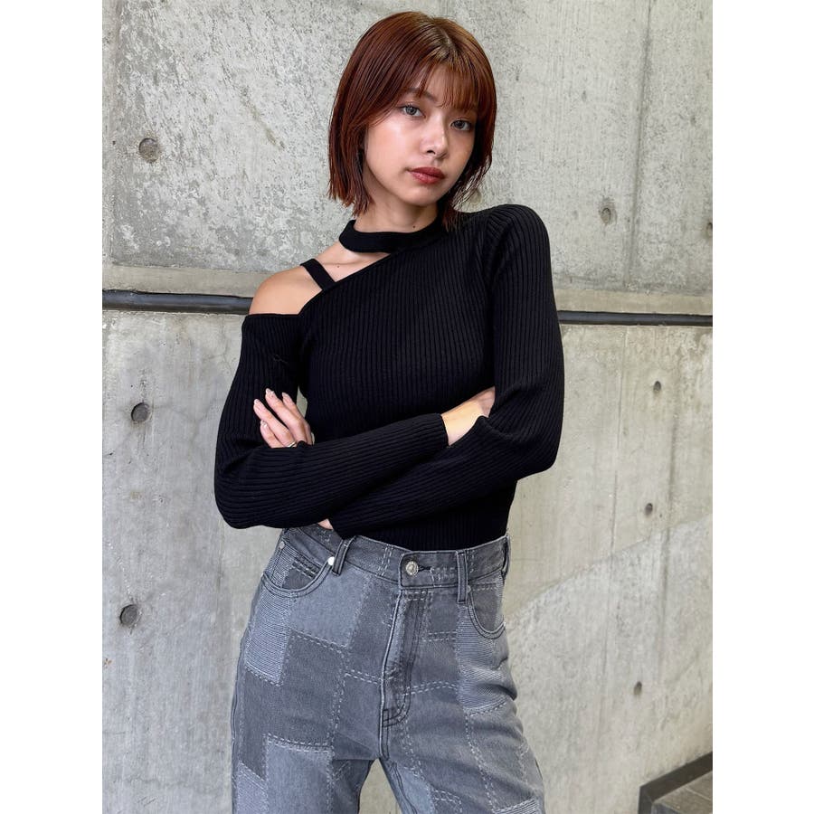 ワンショルテープリブニット