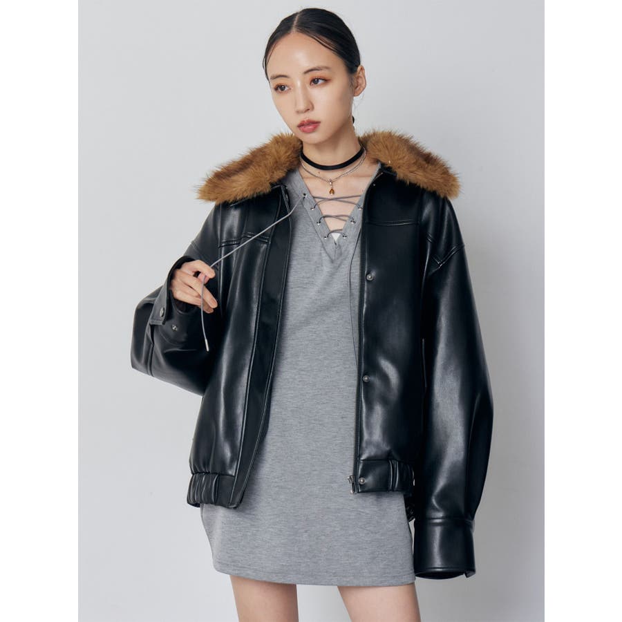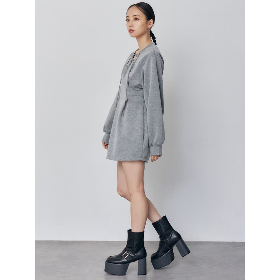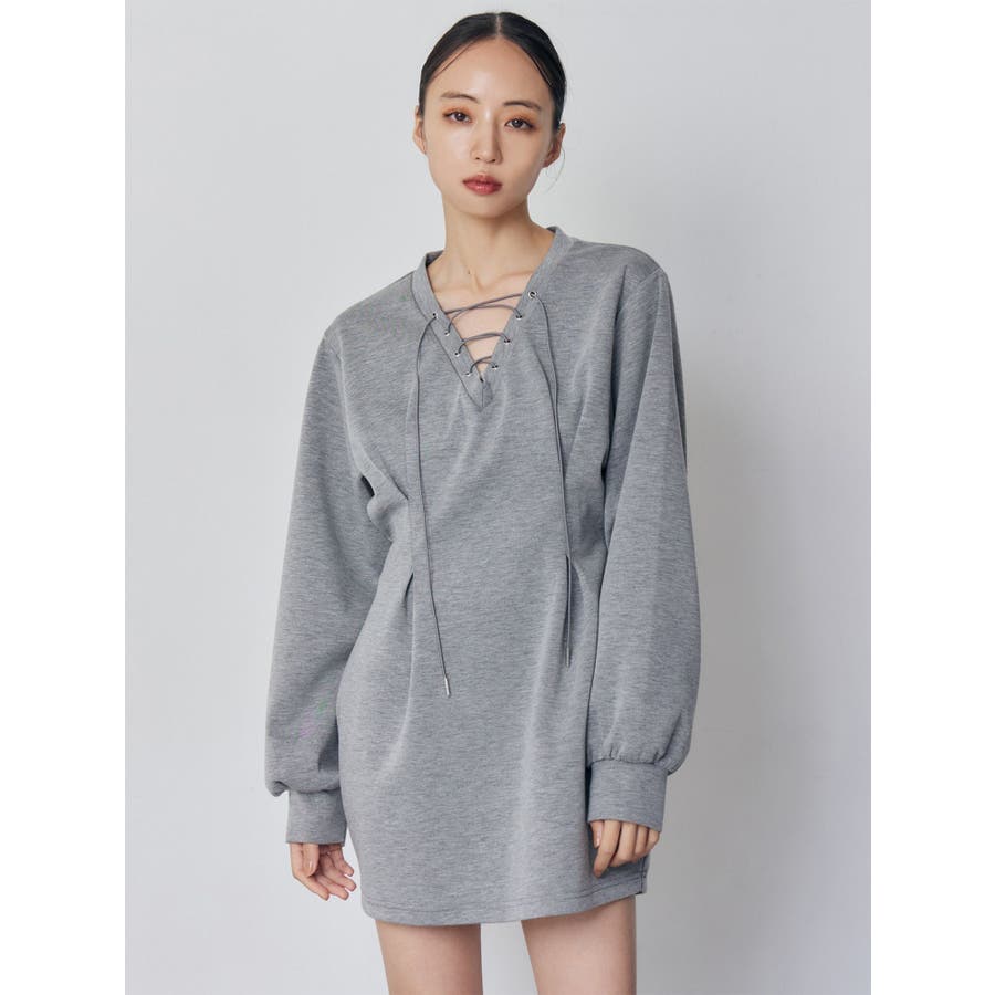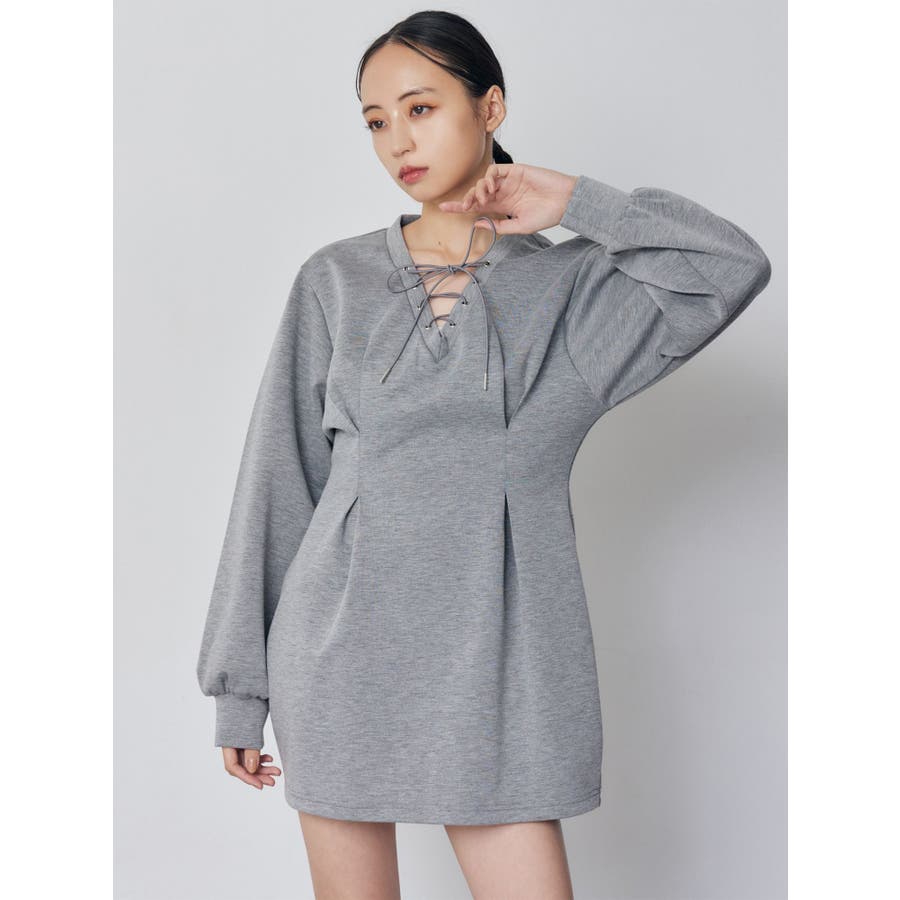 デザインレースアップミニワンピース
