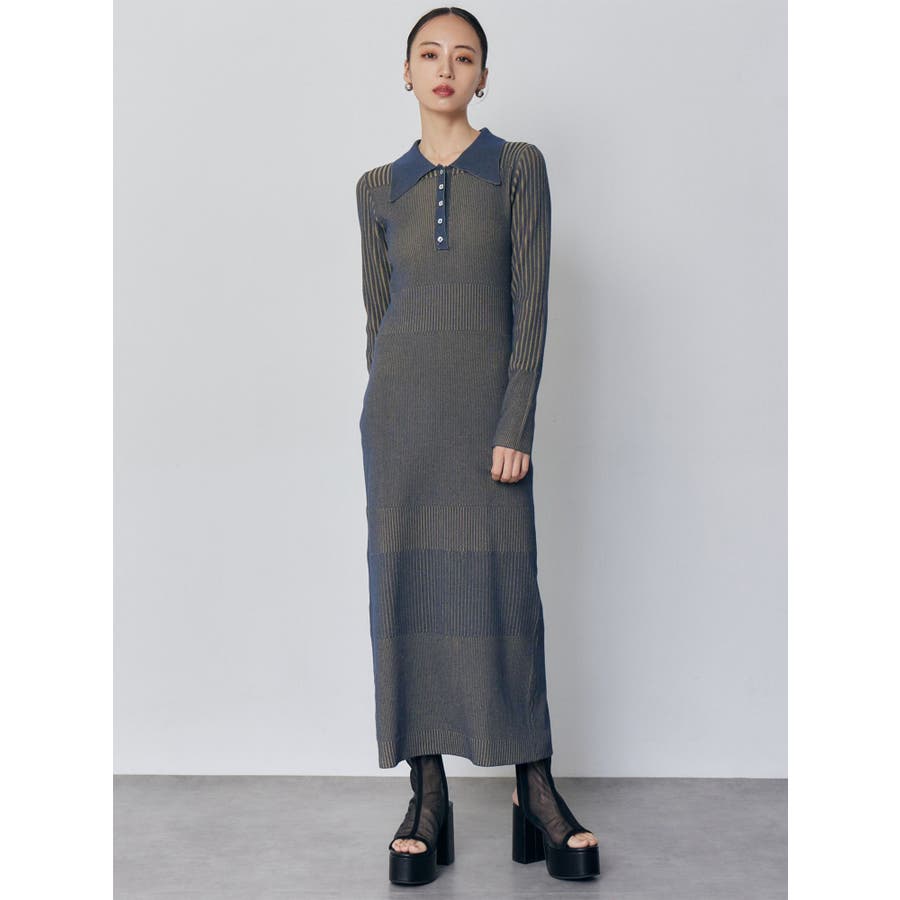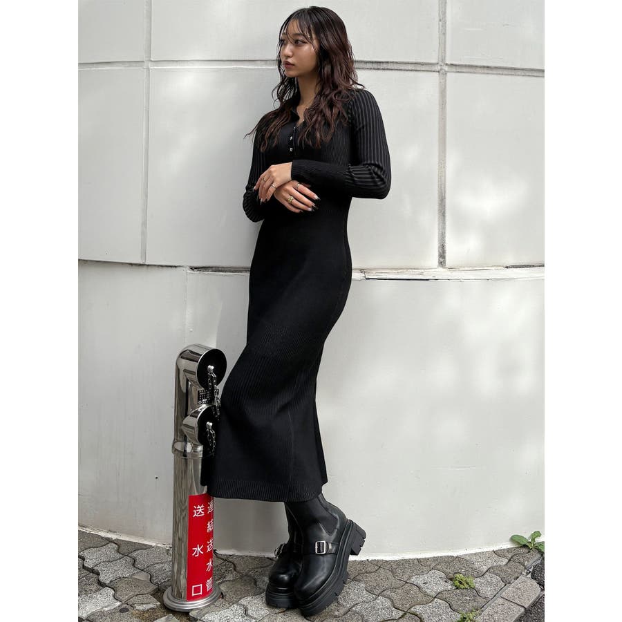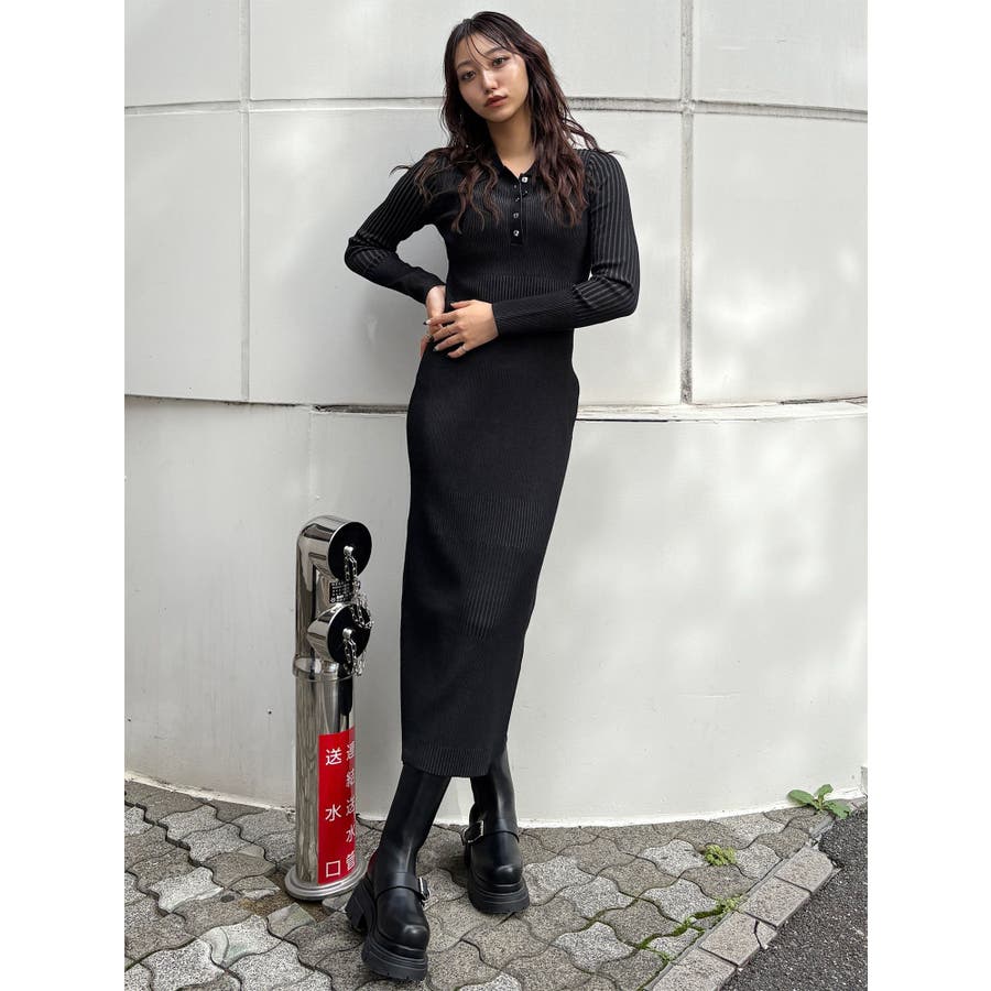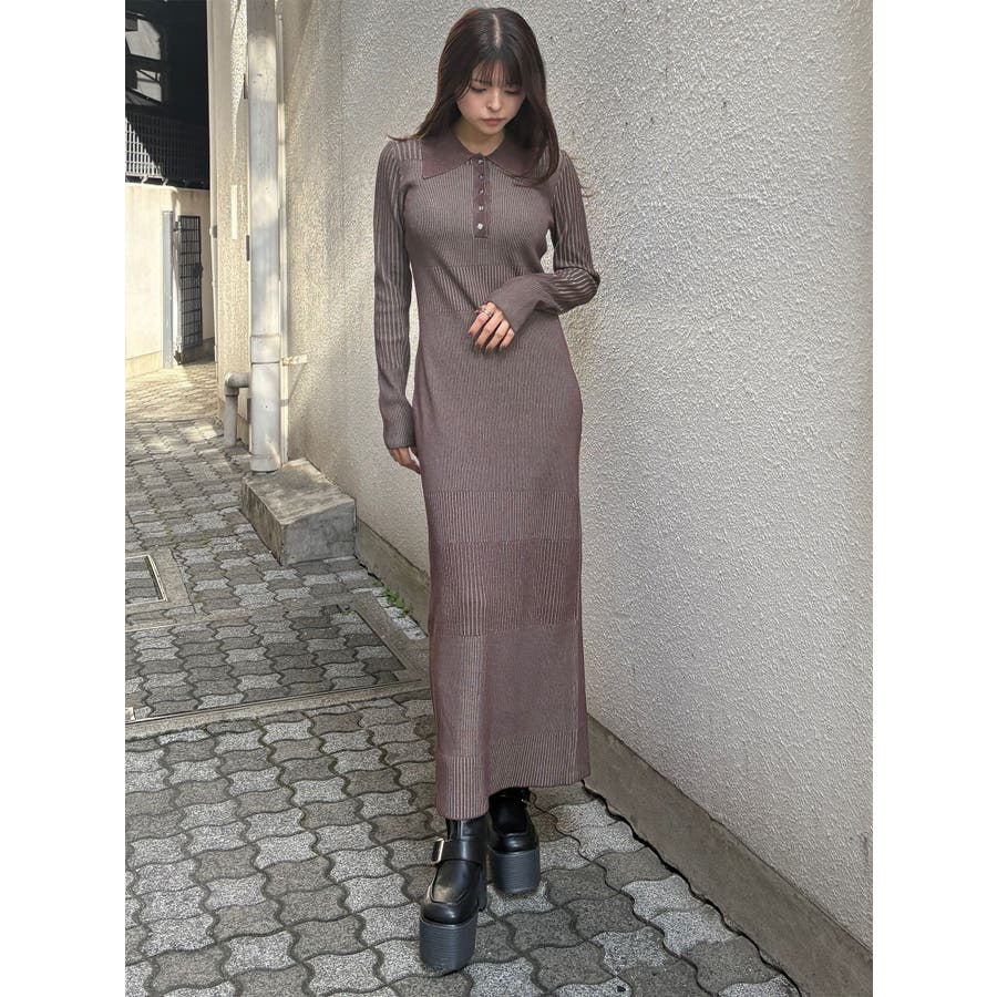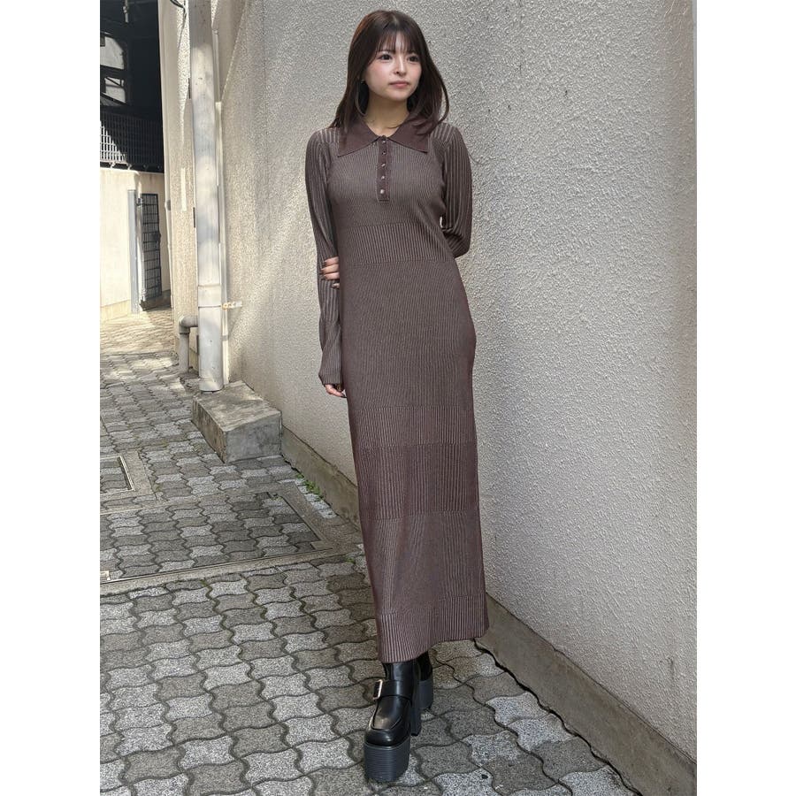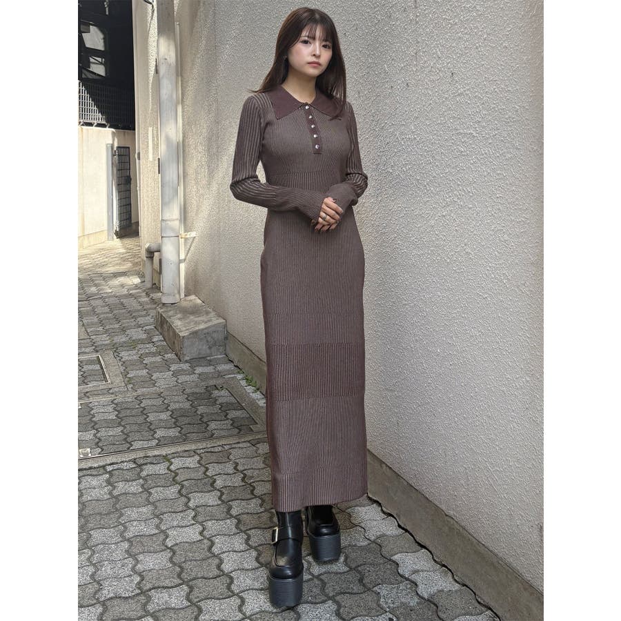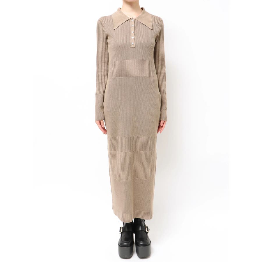 リブニットロングワンピース
