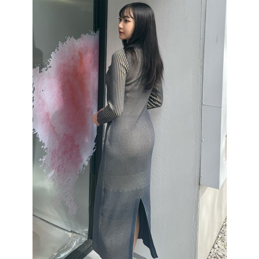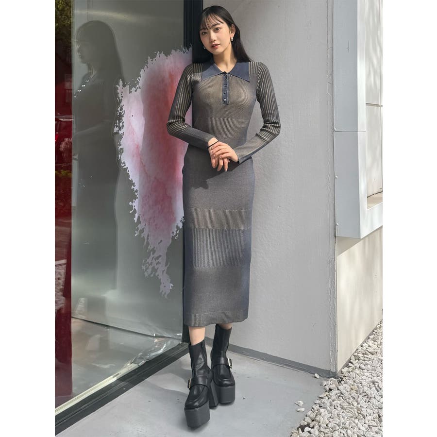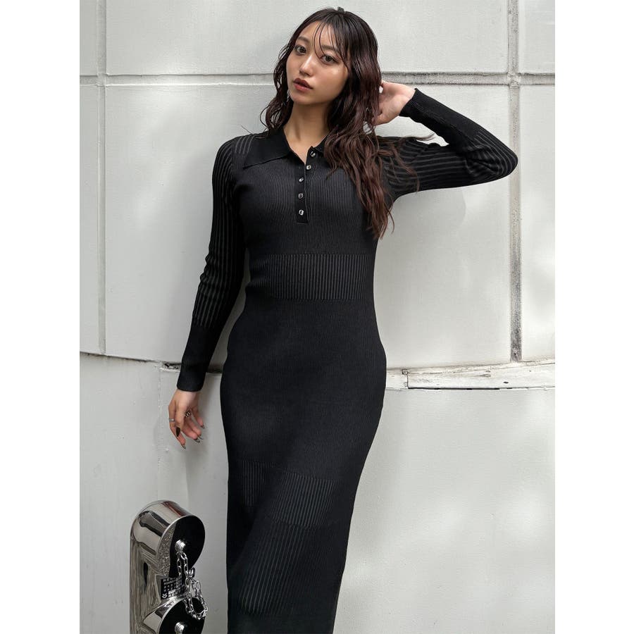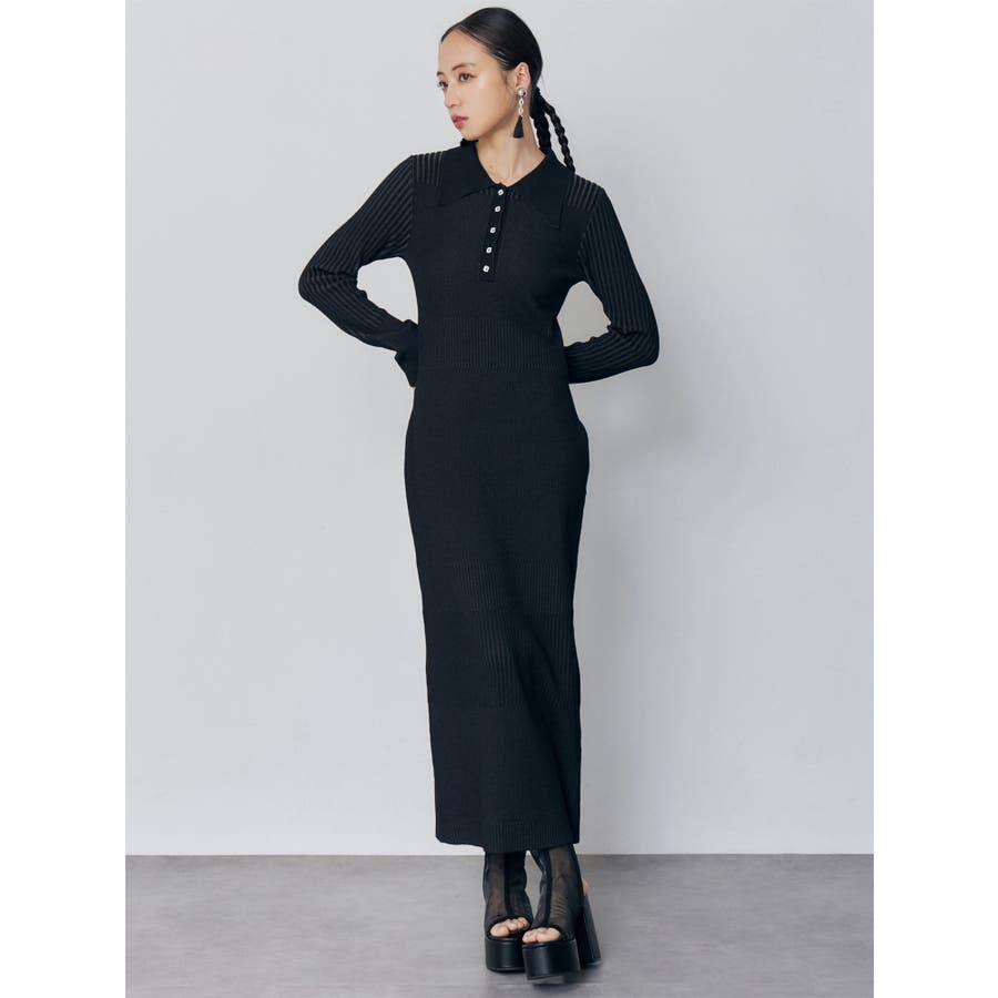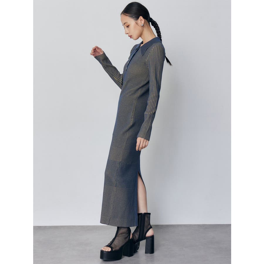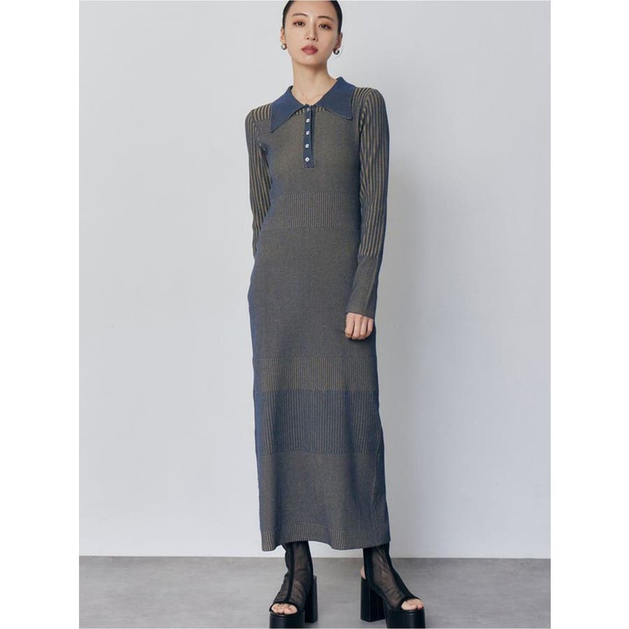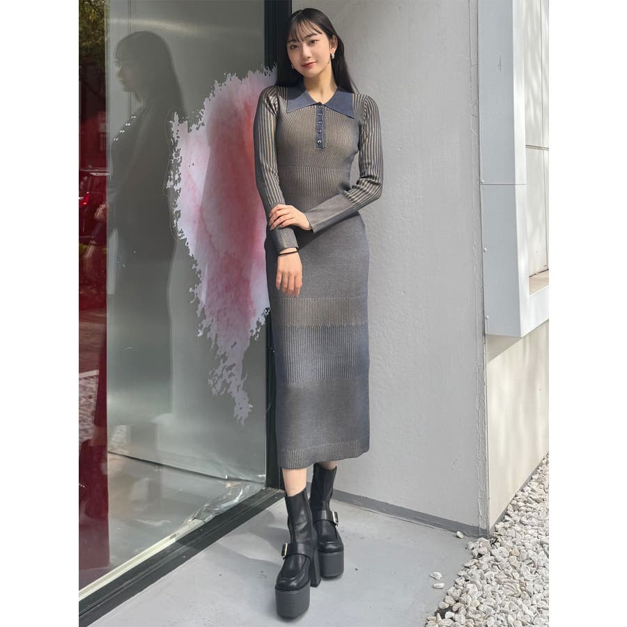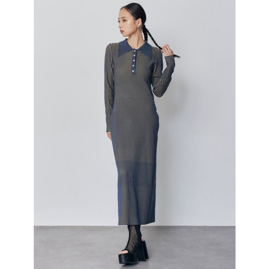 リブニットロングワンピース