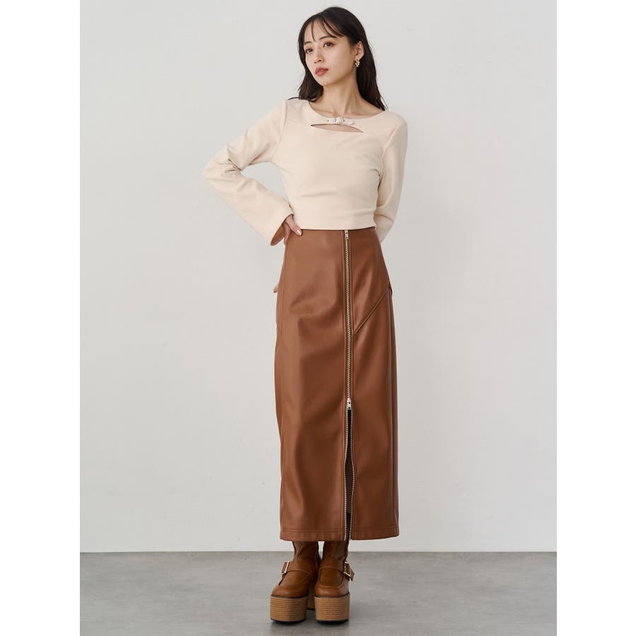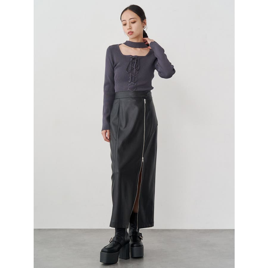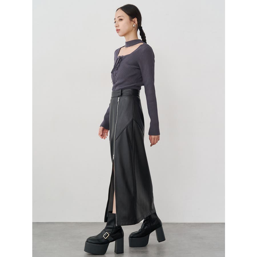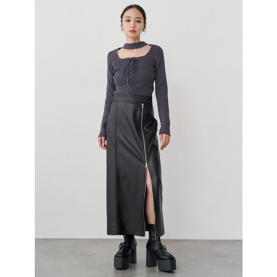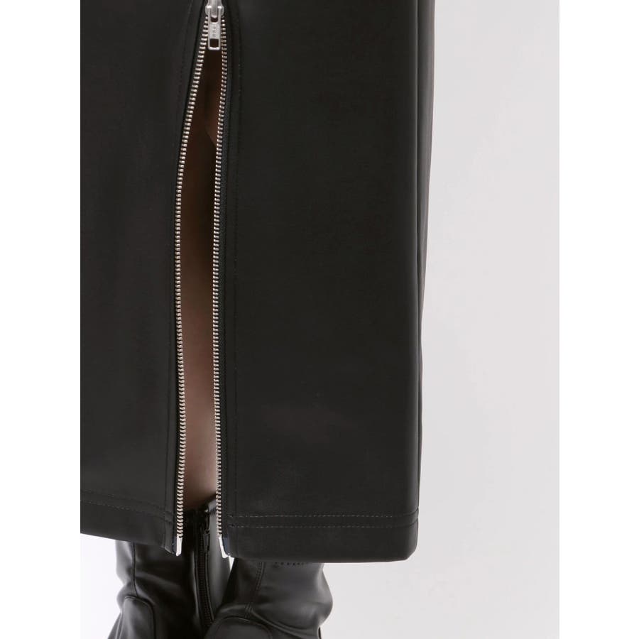 ZIPスリットフェイクレザーナロースカート