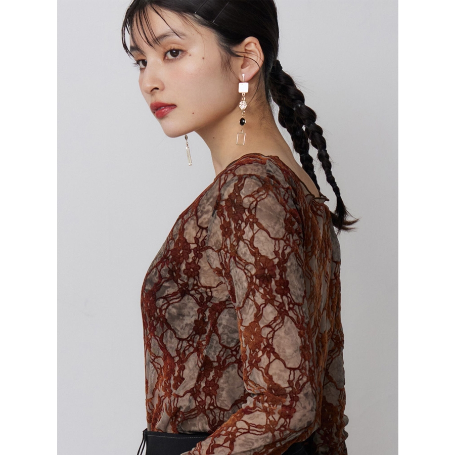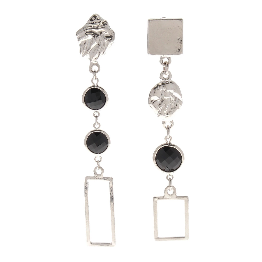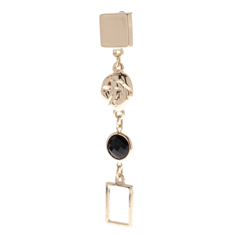 存在感のあるデザインピアス揺れ感も女性らしく◎■アイテムシーズンコンセプトを体現したオリエンタルな印象のピアス。メタリックな四角いパーツと歪なモチーフ、ブラックストーンが絶妙なバランスで唯一無二の存在感抜群のピアスです。左右アシンメトリーなデザインも個性的。動くたびに揺れる輝きが華やかさをプラスし、コーデのアクセントにぴったりなアイテムです。全長約8cmで顔まわりをすっきり見せるロングシルエット。程よいボリュームながらも軽量で、長時間着用しても負担になりにくい仕様です。メタルパーツとストーンパーツの異素材MIXです。金属の上品な輝きとブラックのコントラストが特徴です。モードなスタイルの仕上げにおすすめ。シンプルなトップスやオールブラックコーデに合わせると、よりピアスのデザインが際立ちます。チャイナニットなどと合わせて思い切りオリエンタルなムードを楽しむのもおすすめです。【知って得する便利機能◎ 】 ■商品のお気に入り登録再入荷時、ラスト1点の時にお知らせします。■ブランドのお気に入り登録新商品やお得な情報など、いち早くお得な情報をゲット!ぜひご活用ください。※着用画像はフラッシュの加減で実際の製品と色味等が異なる場合がございますので、生地のズームアップ画像をご確認ください。※ご利用の端末画面の設定により実際の商品と色味が異なる場合がございます。
