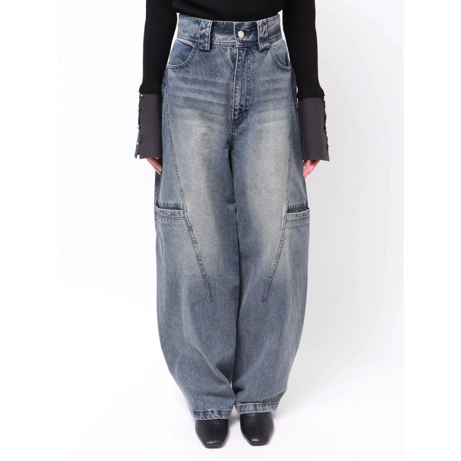 パッチポケットバレルレッグデニム