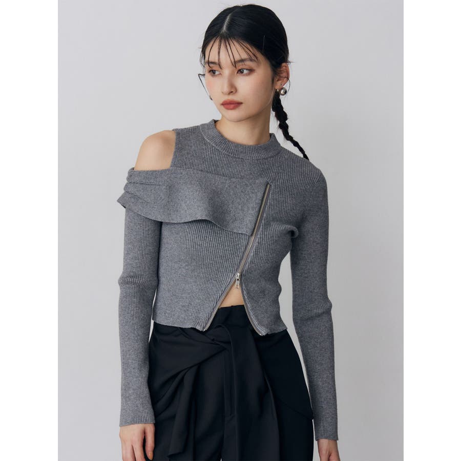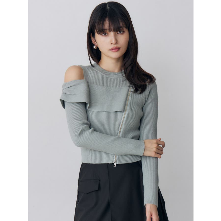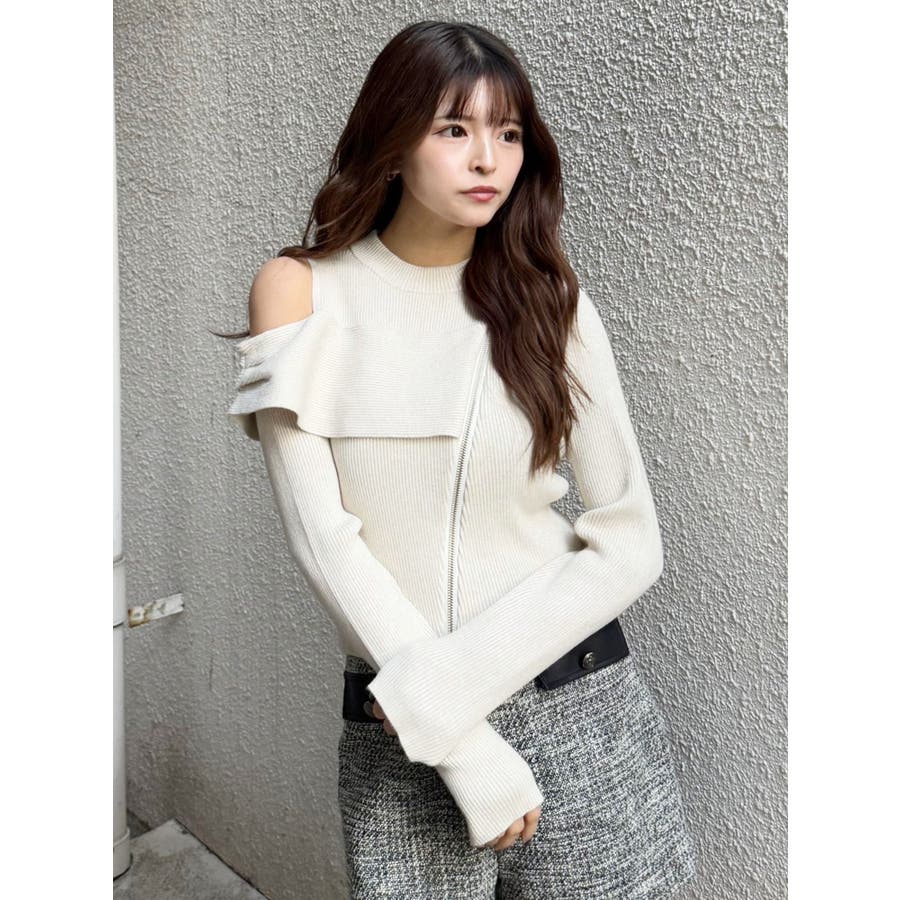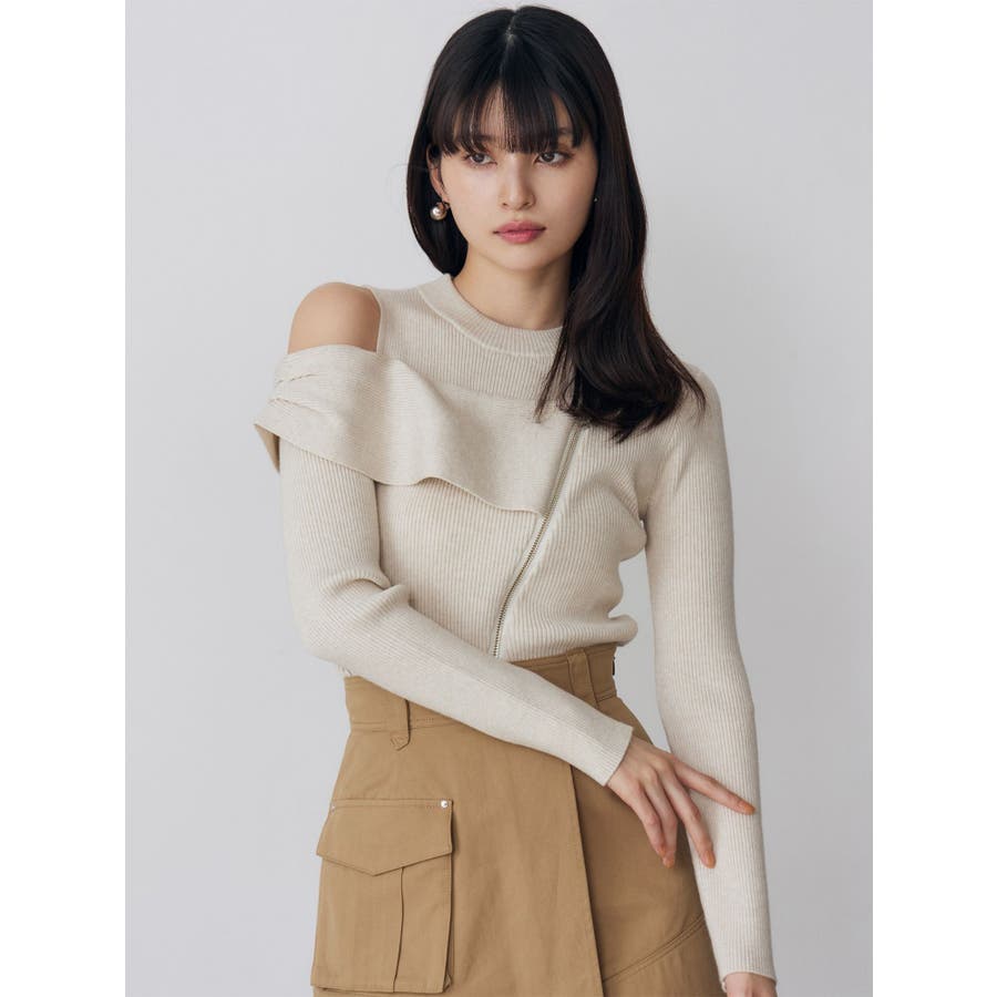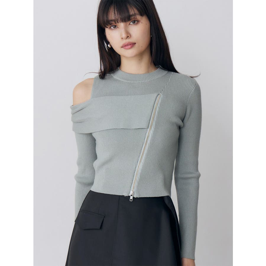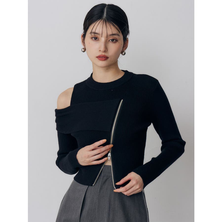 ワンショルダーZIPニット