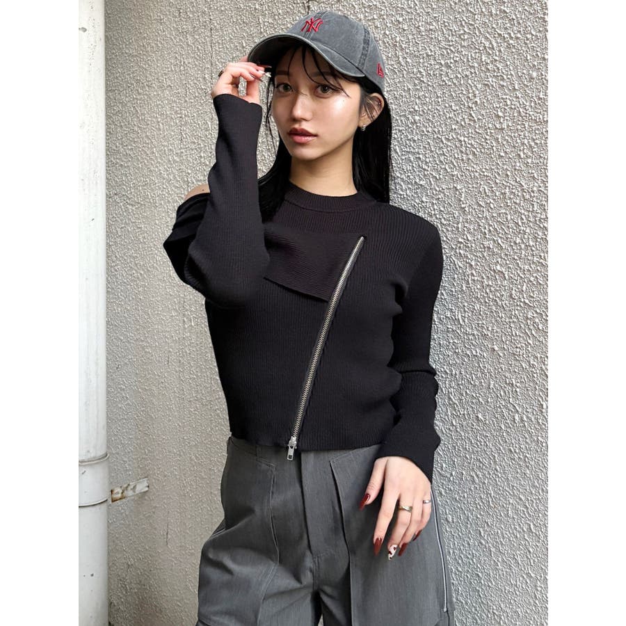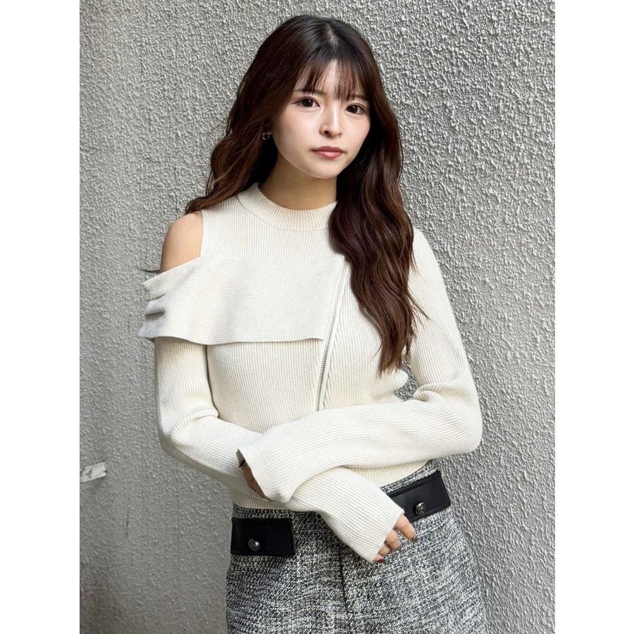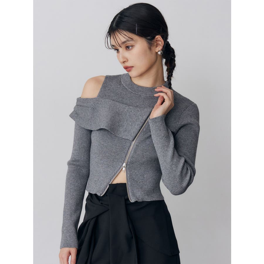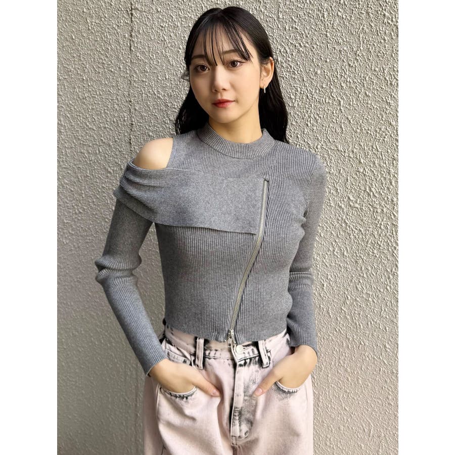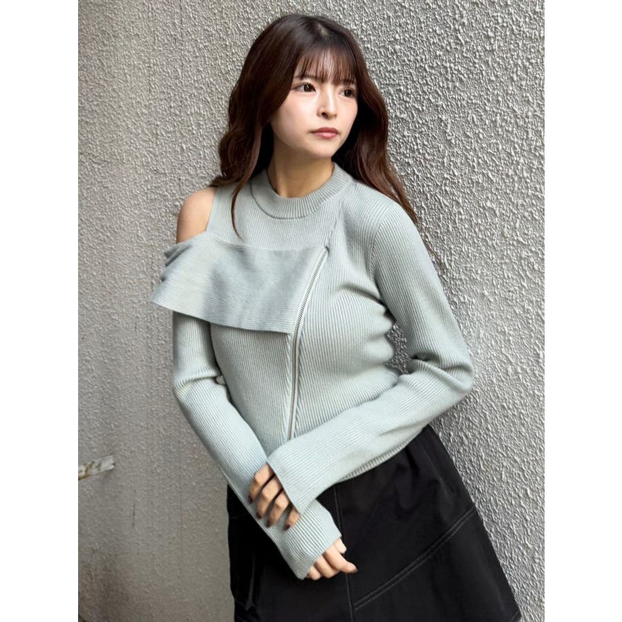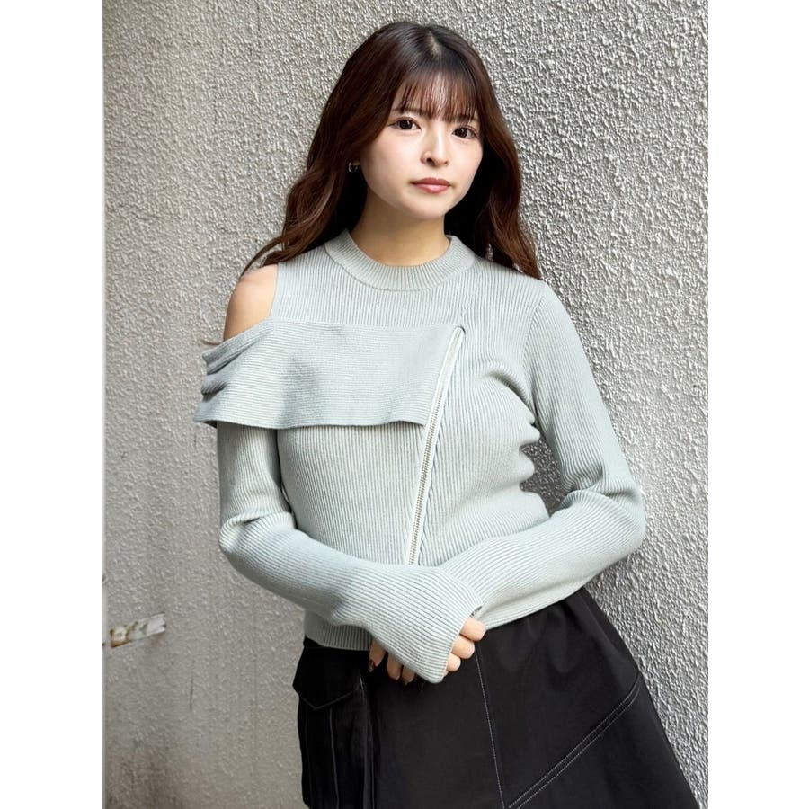 ワンショルダーZIPニット