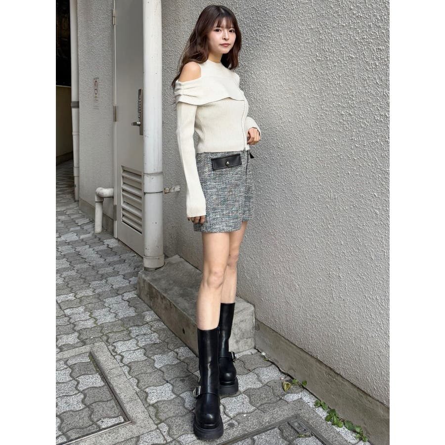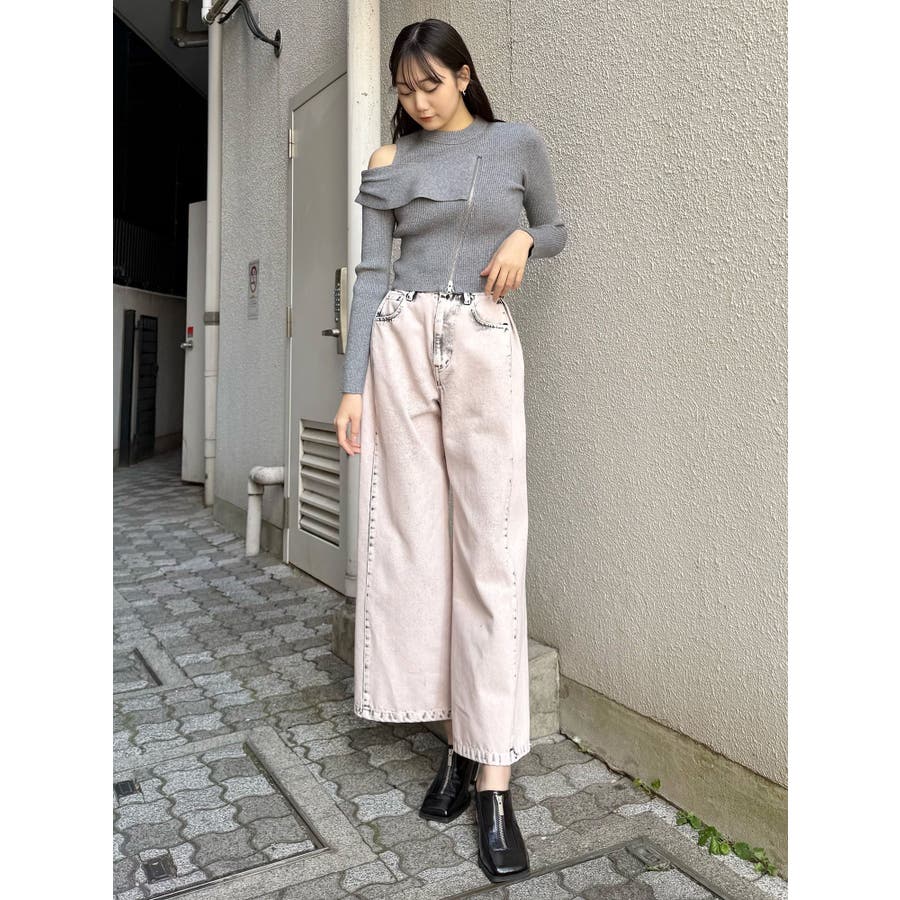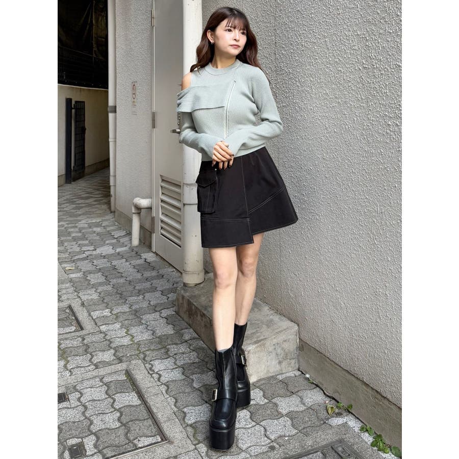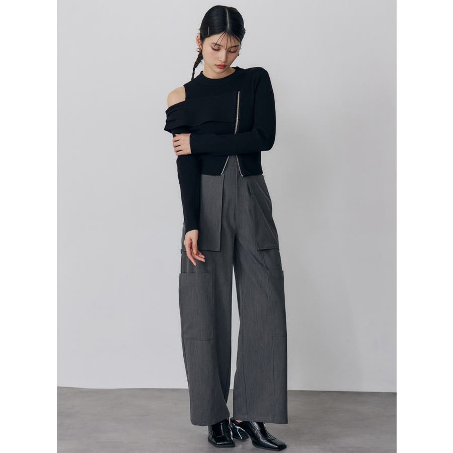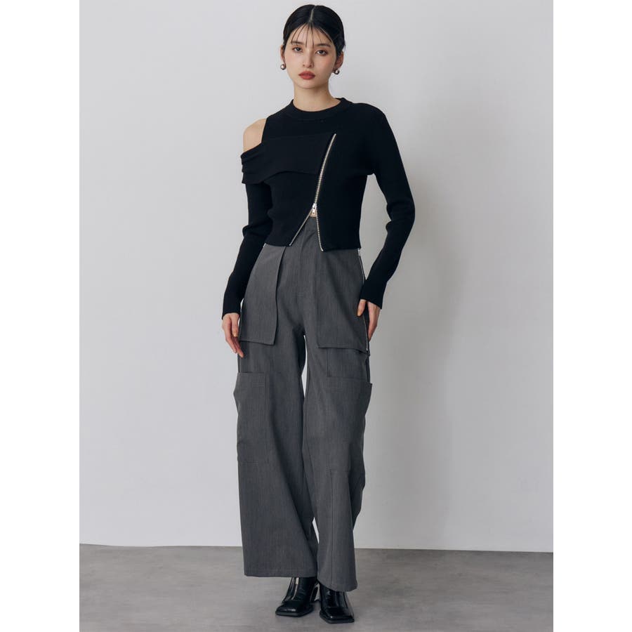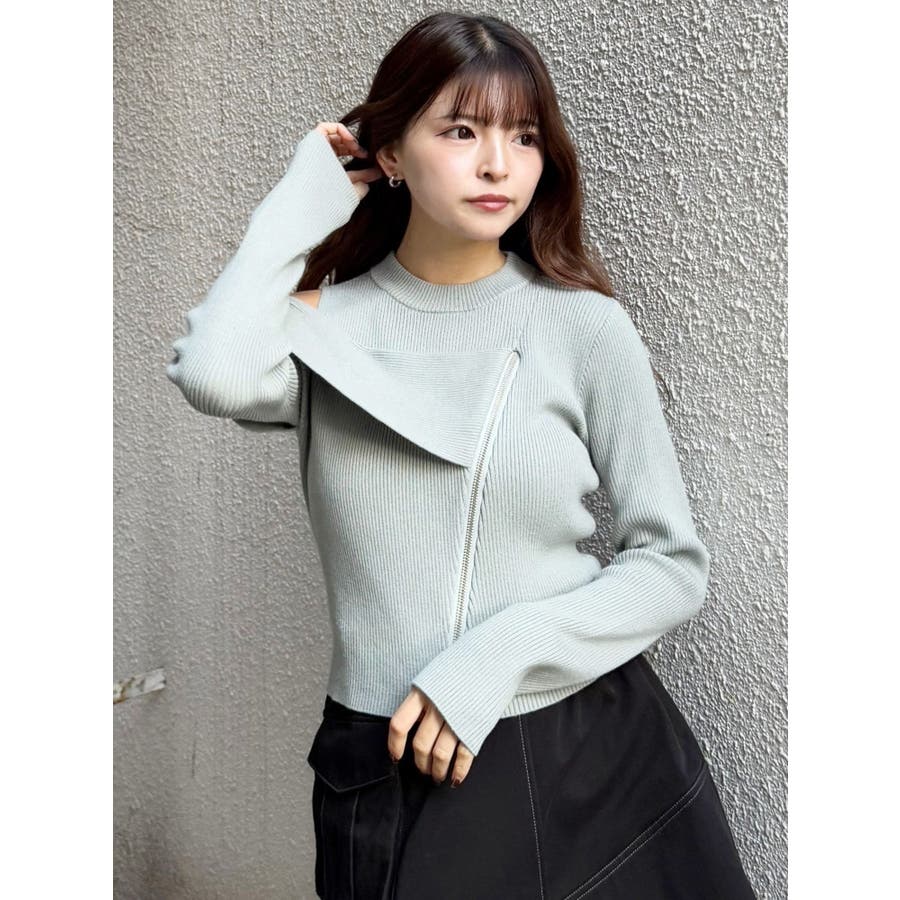 ワンショルダーZIPニット
