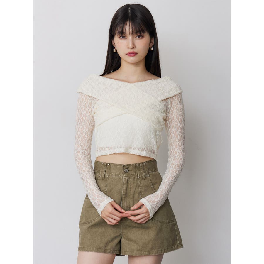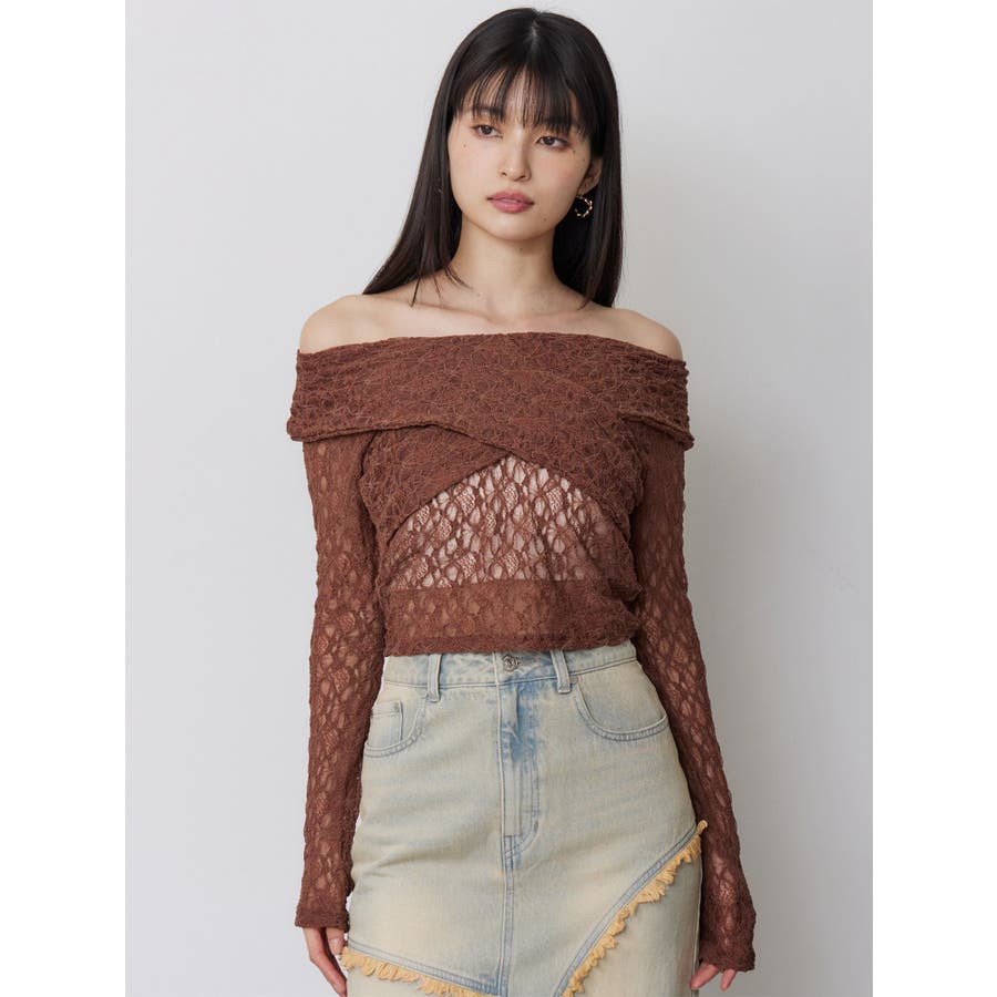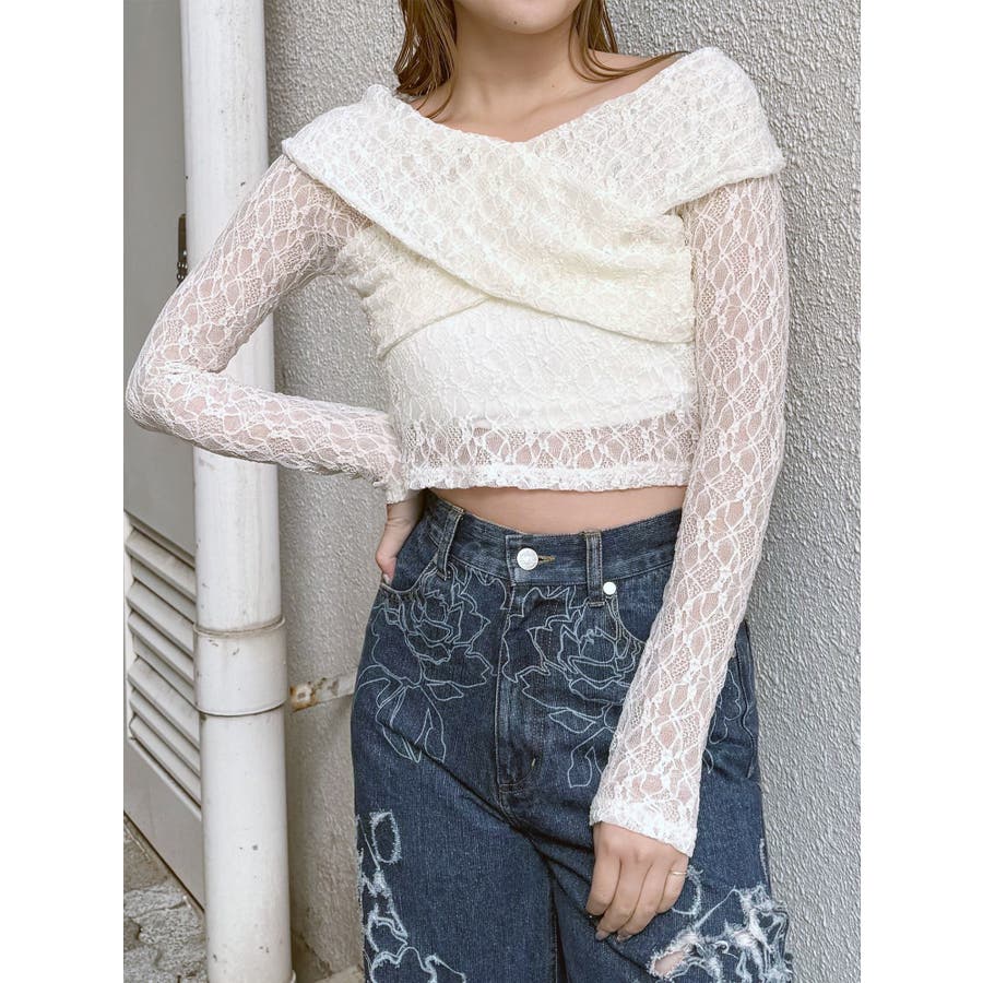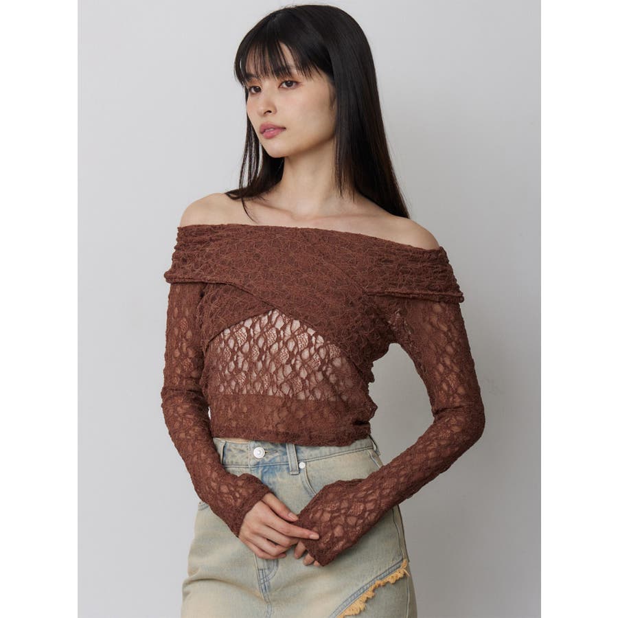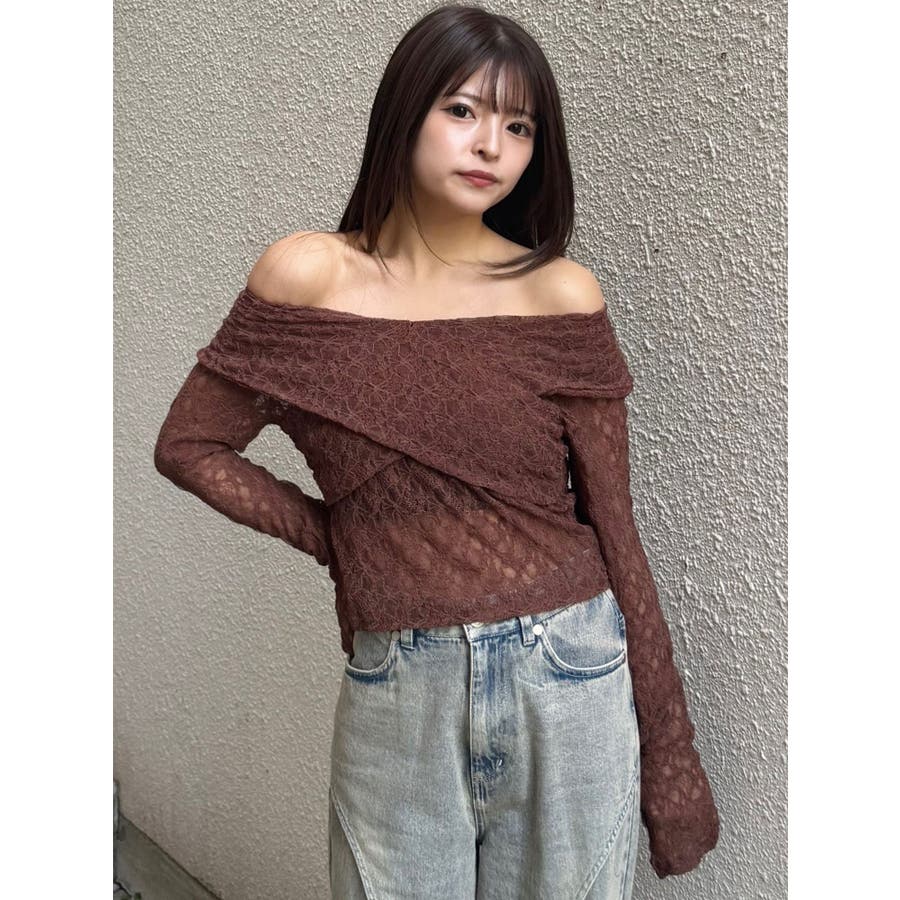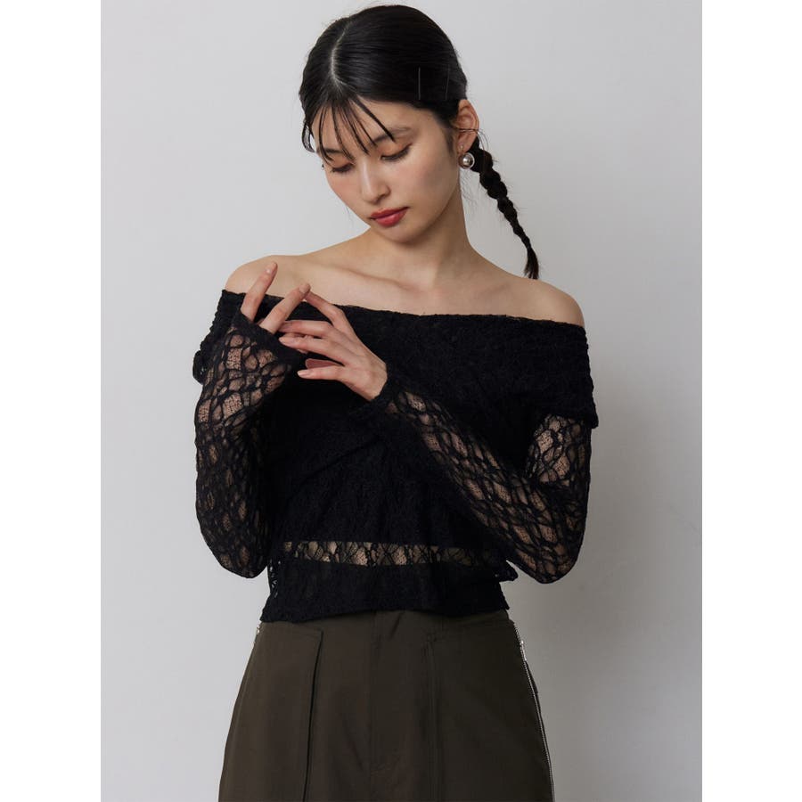 レースカシュクールオフショルトップス