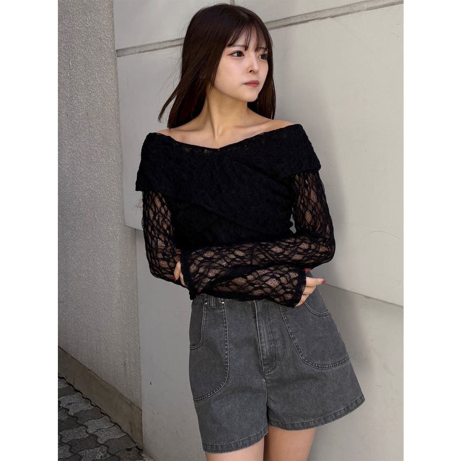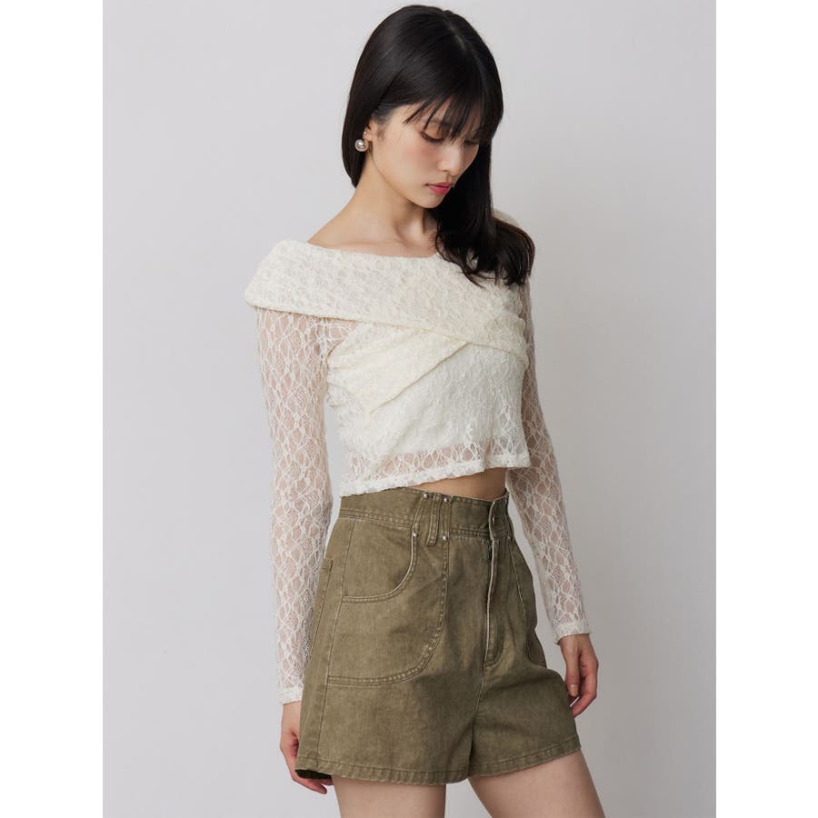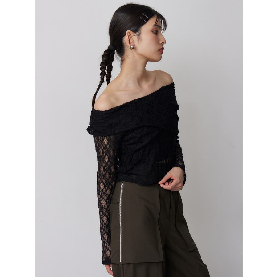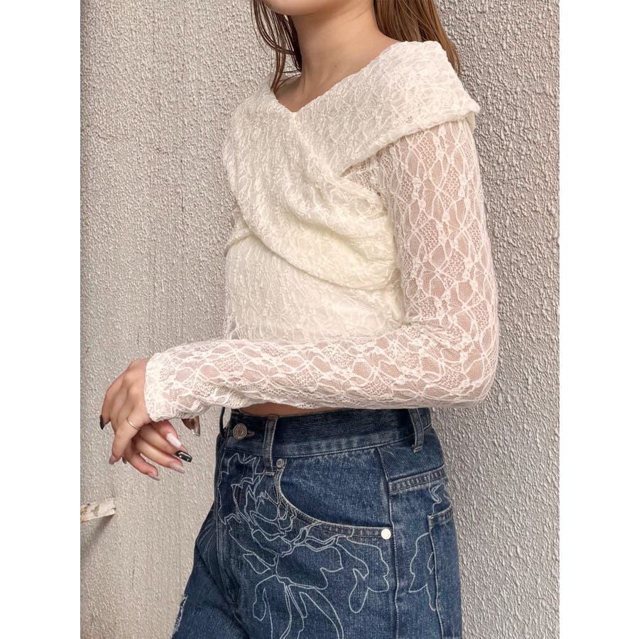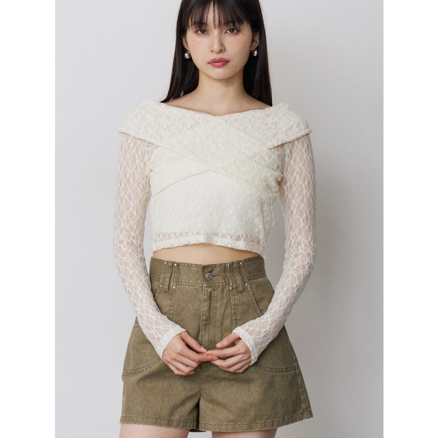 レースカシュクールオフショルトップス