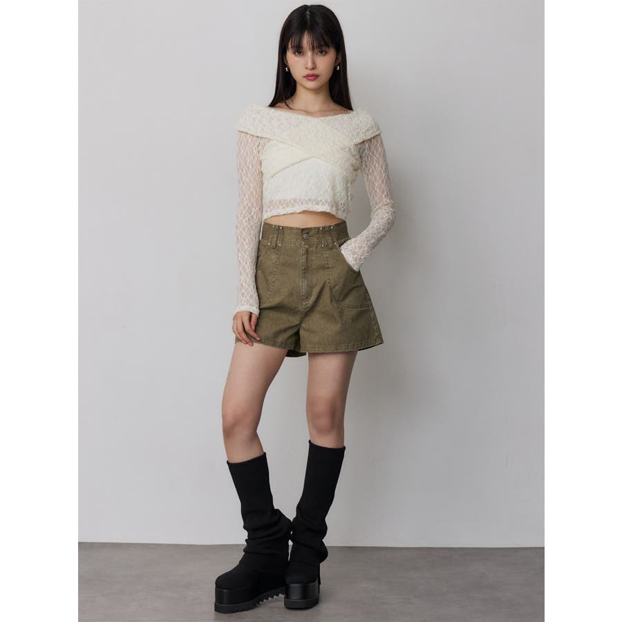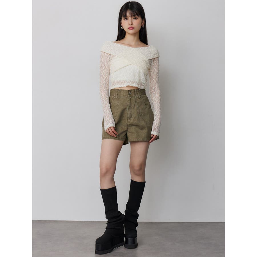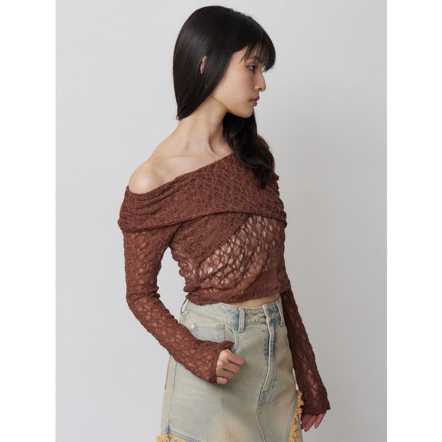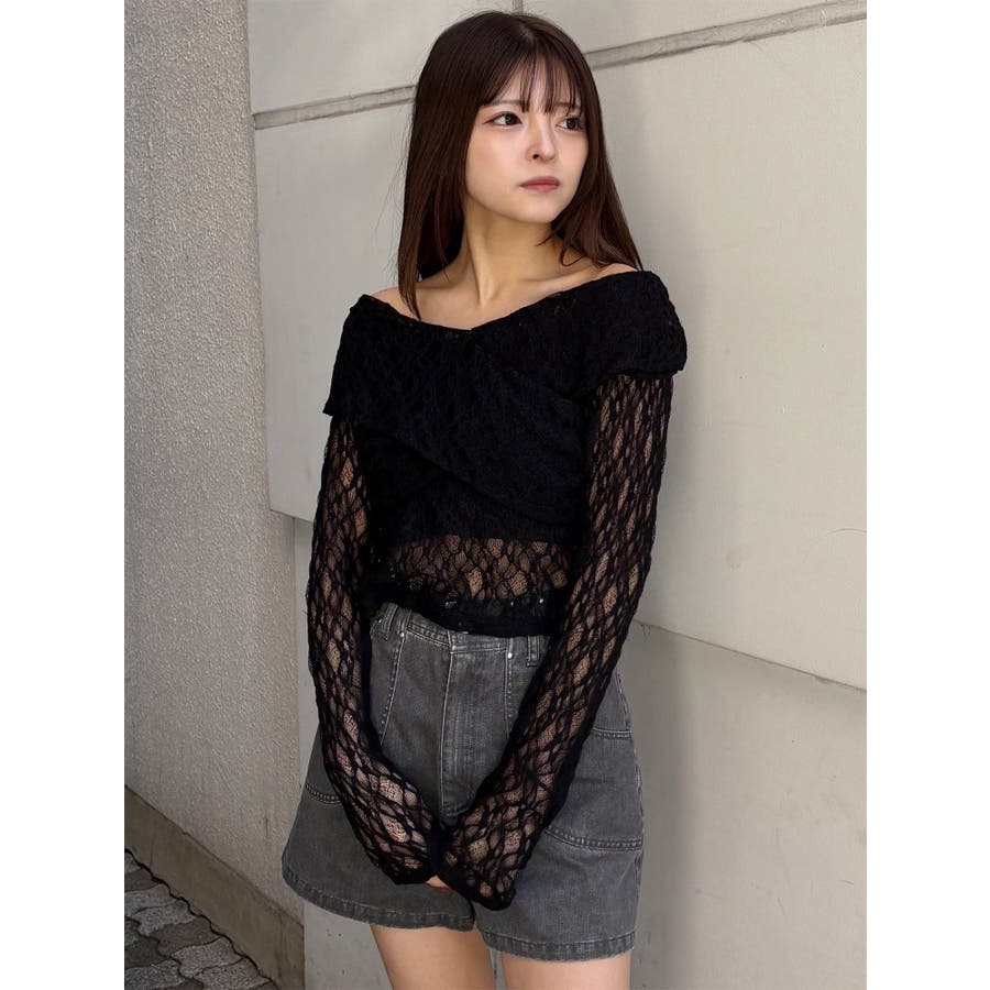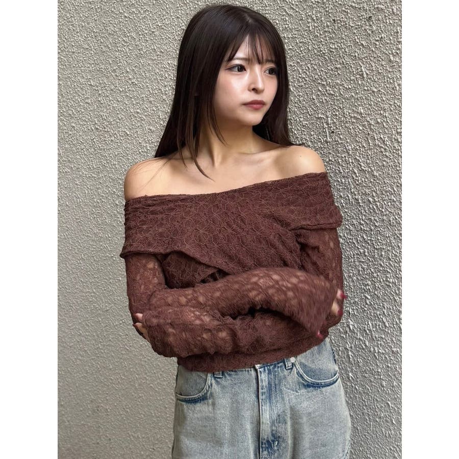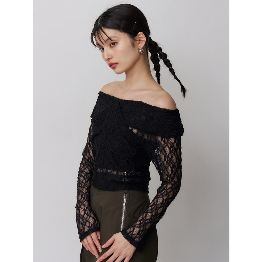 レースカシュクールオフショルトップス