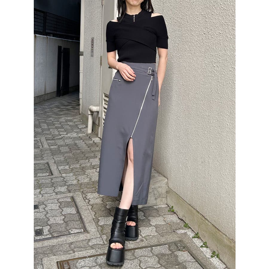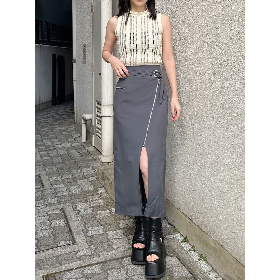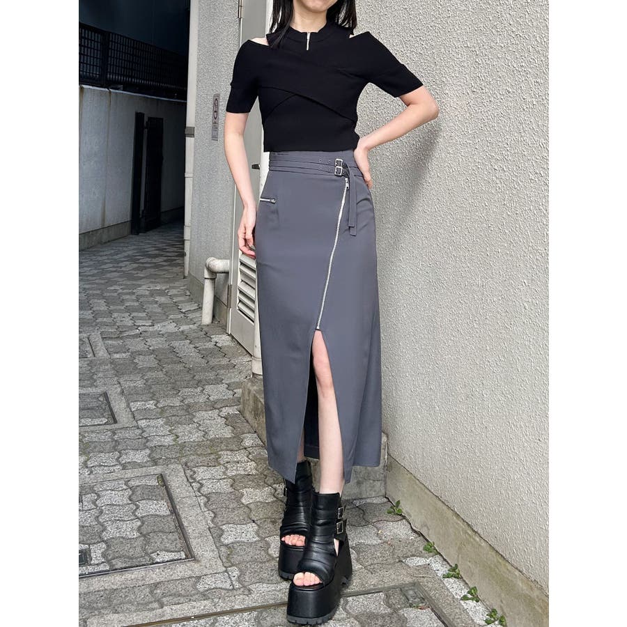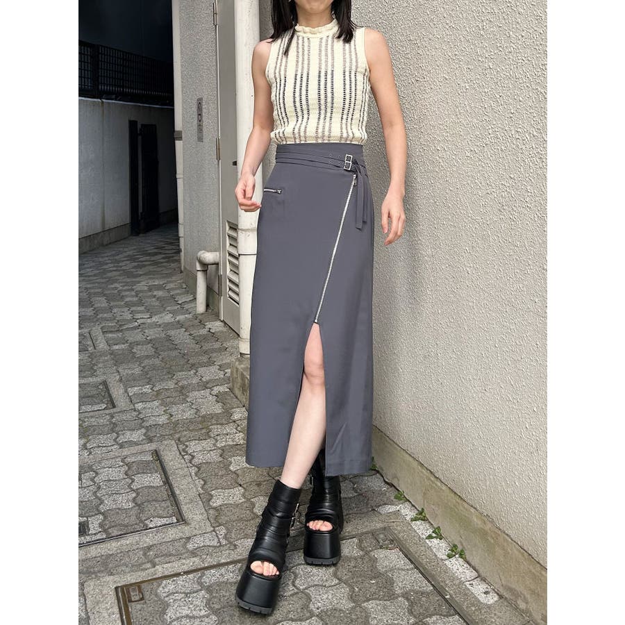 ダブルベルトアシメZIPスカート