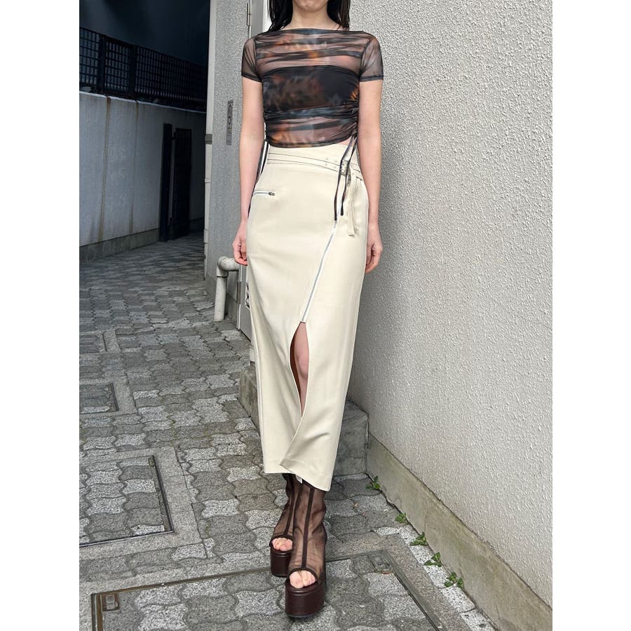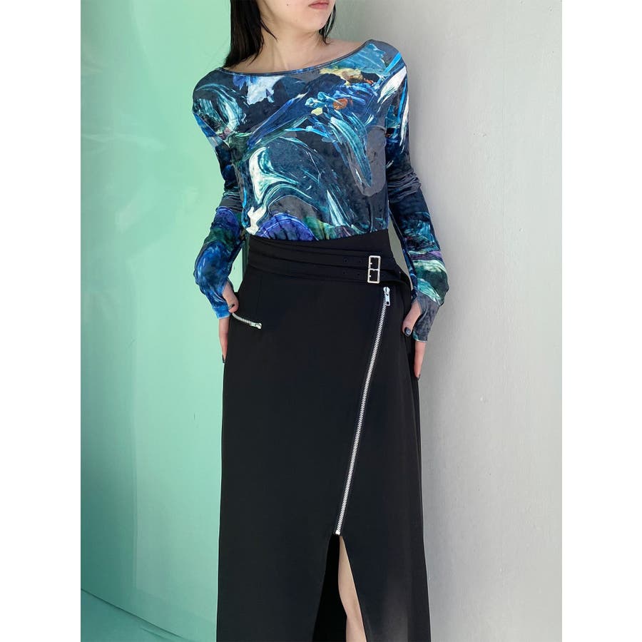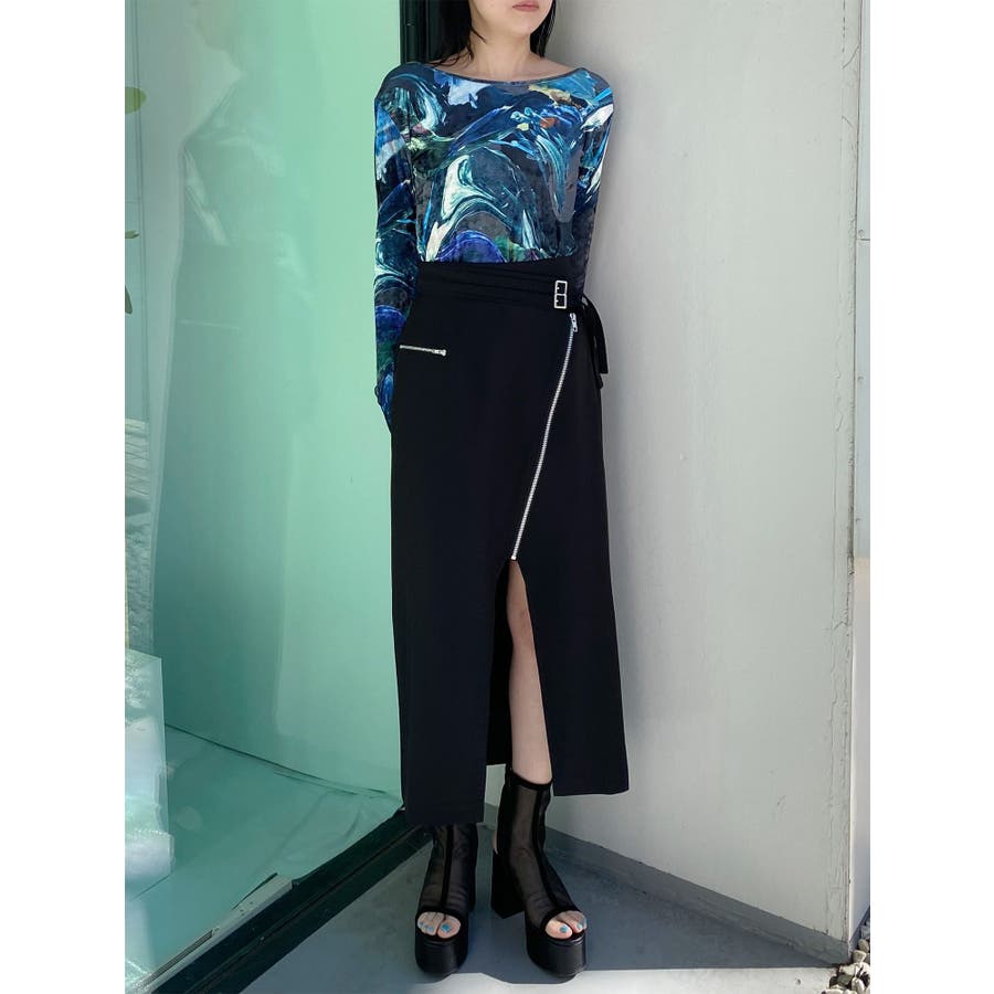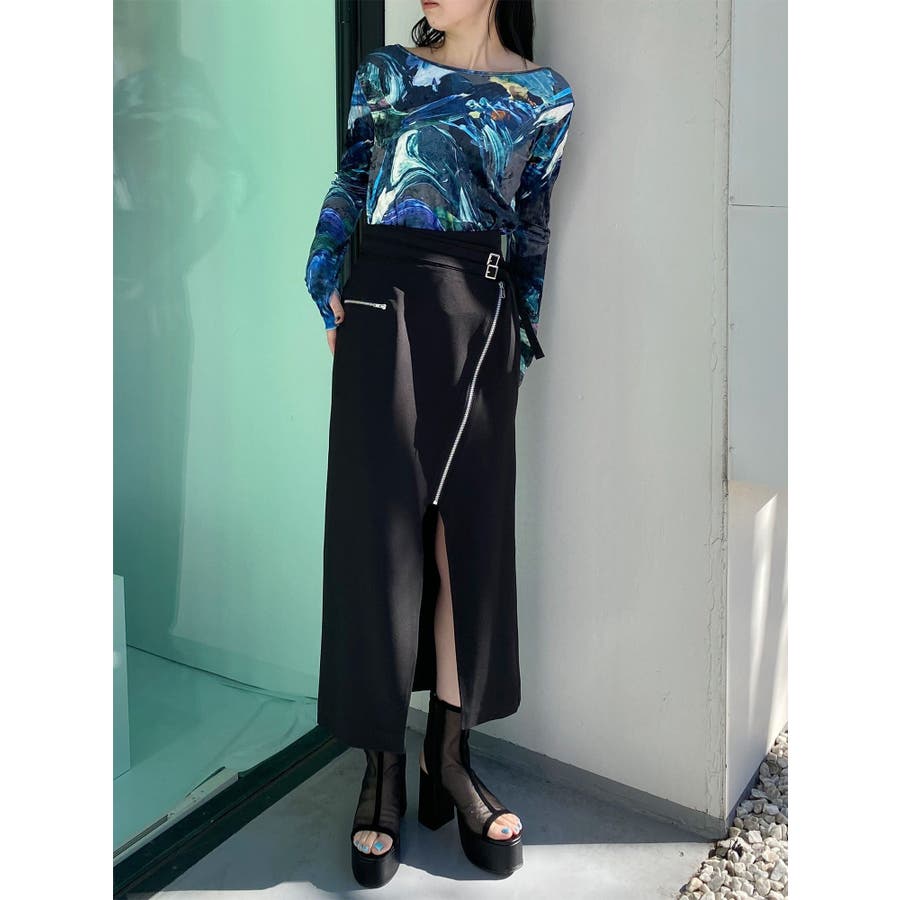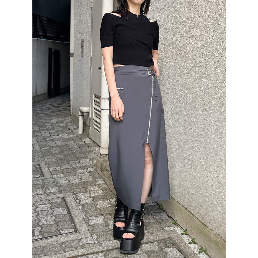 ダブルベルトアシメZIPスカート