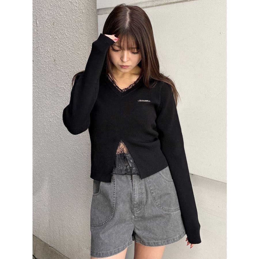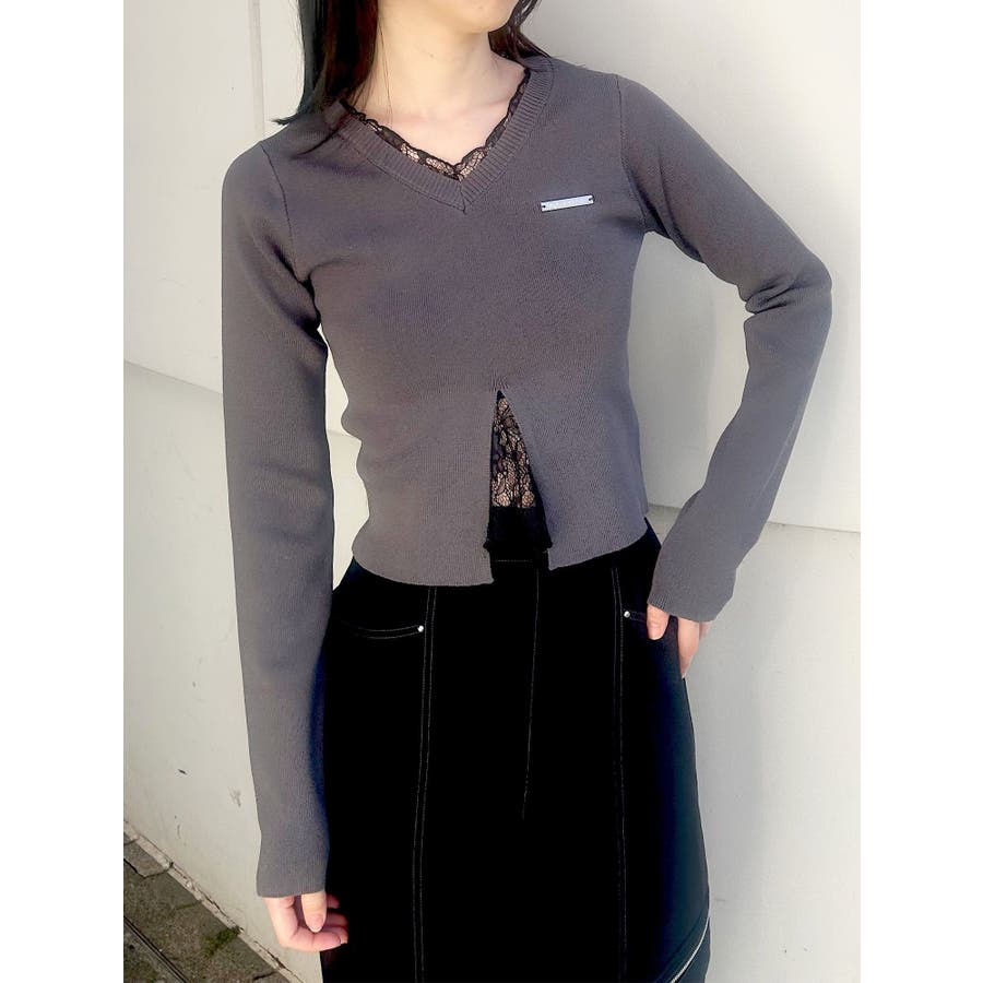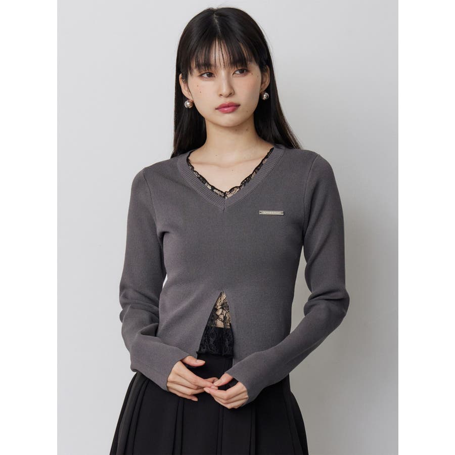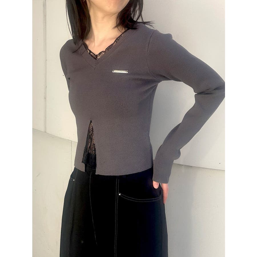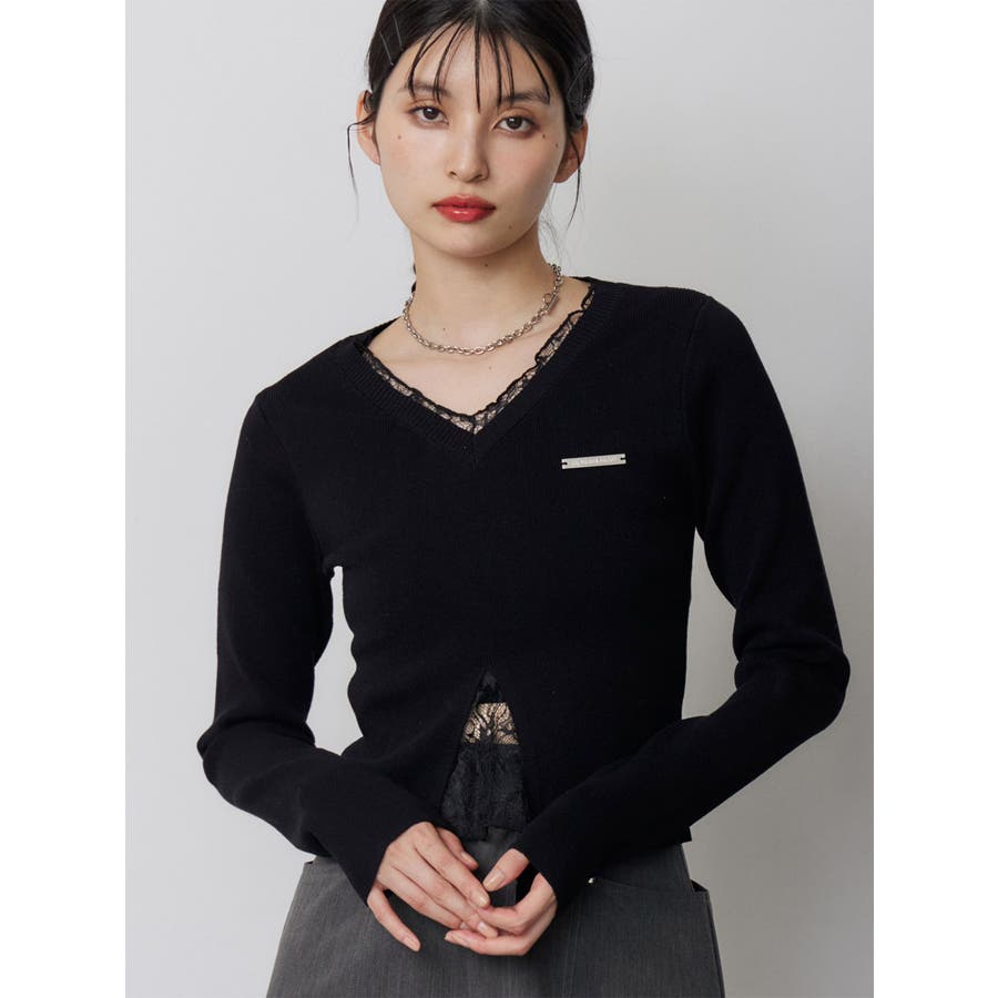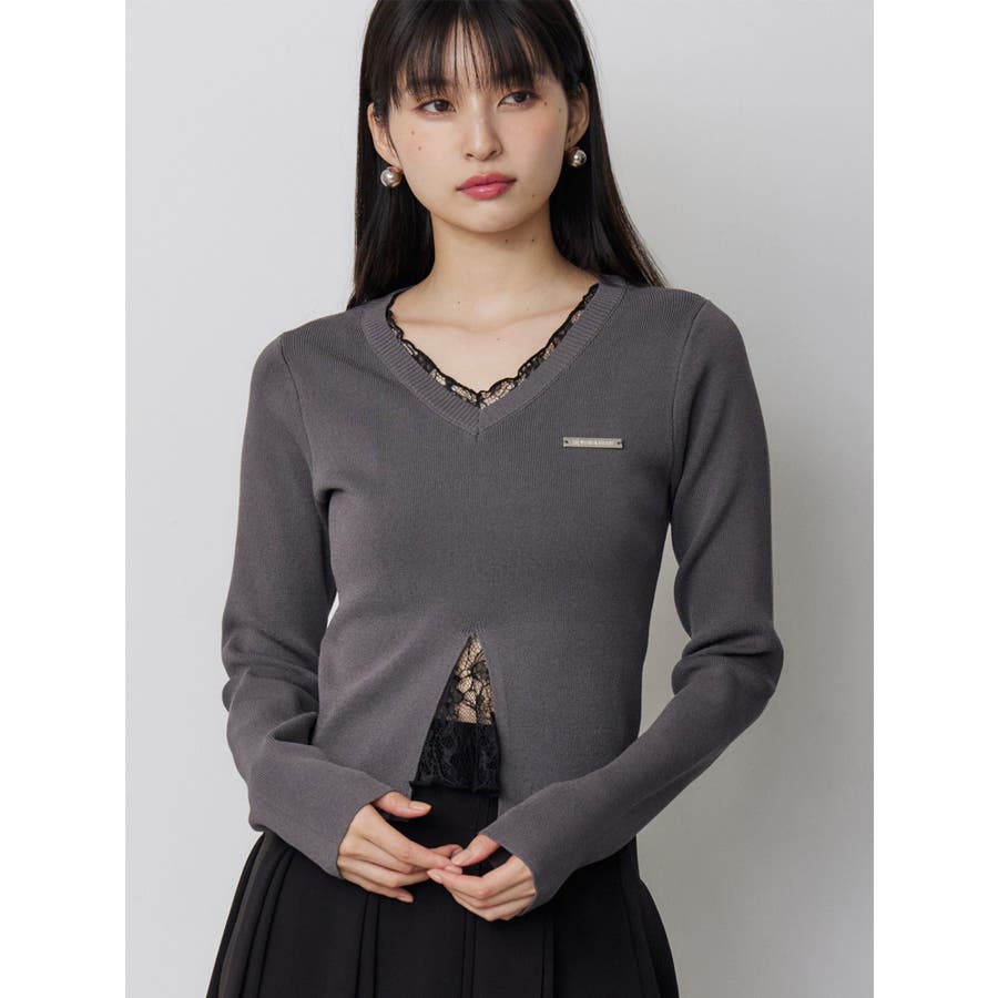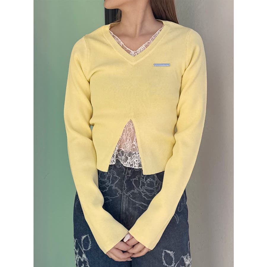 レースレイヤードVネックニット